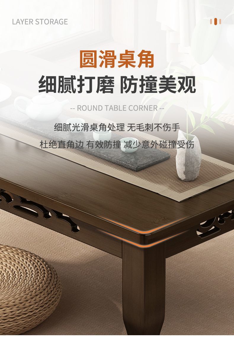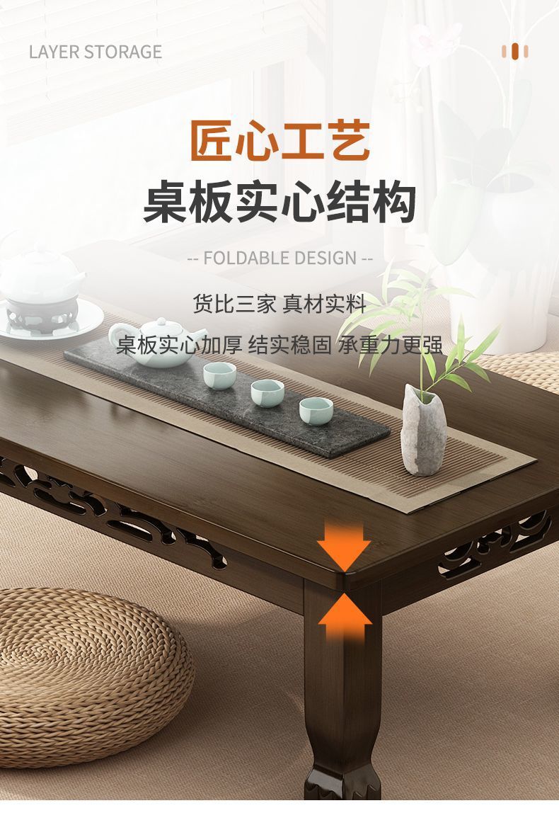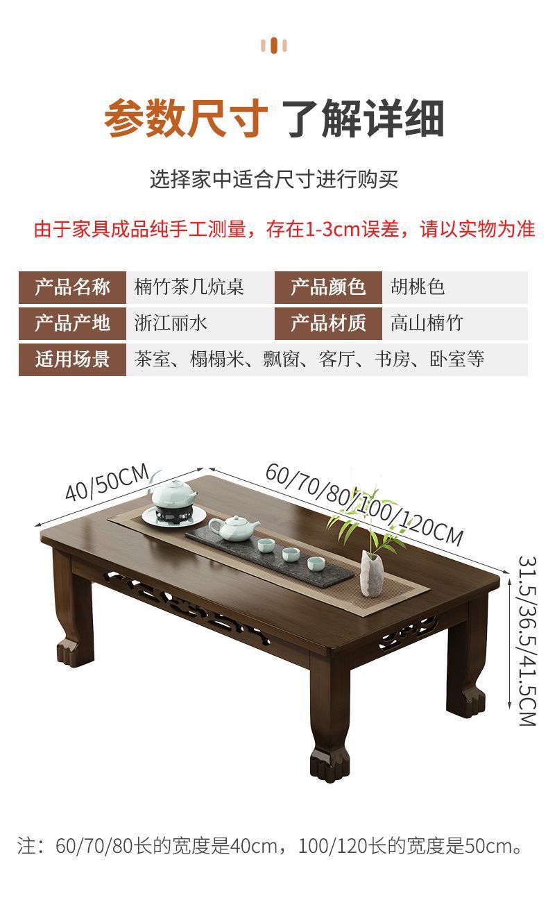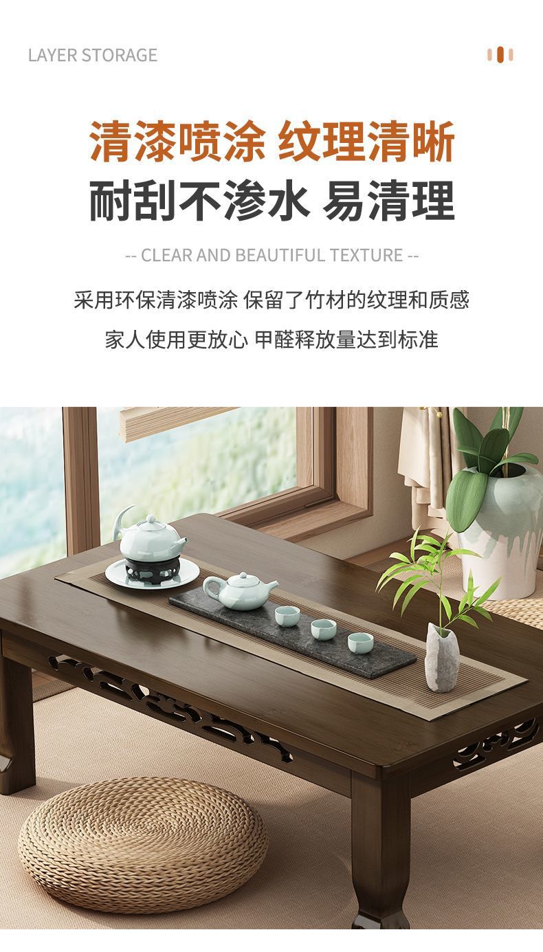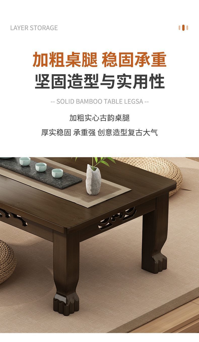 Mesa de té de tatami ventana flotante mesa de té de madera no sólida mesa de té para el hogar mesa baja para aprender a comer en la cama
