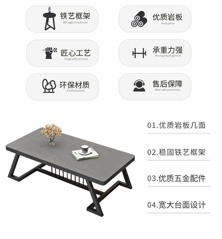 Nuevo tipo de mesa de té de tabla de roca pequeña casa de alquiler de sala de estar familiar simple moderna red balcón combinación de mesa de té lujosa ligera