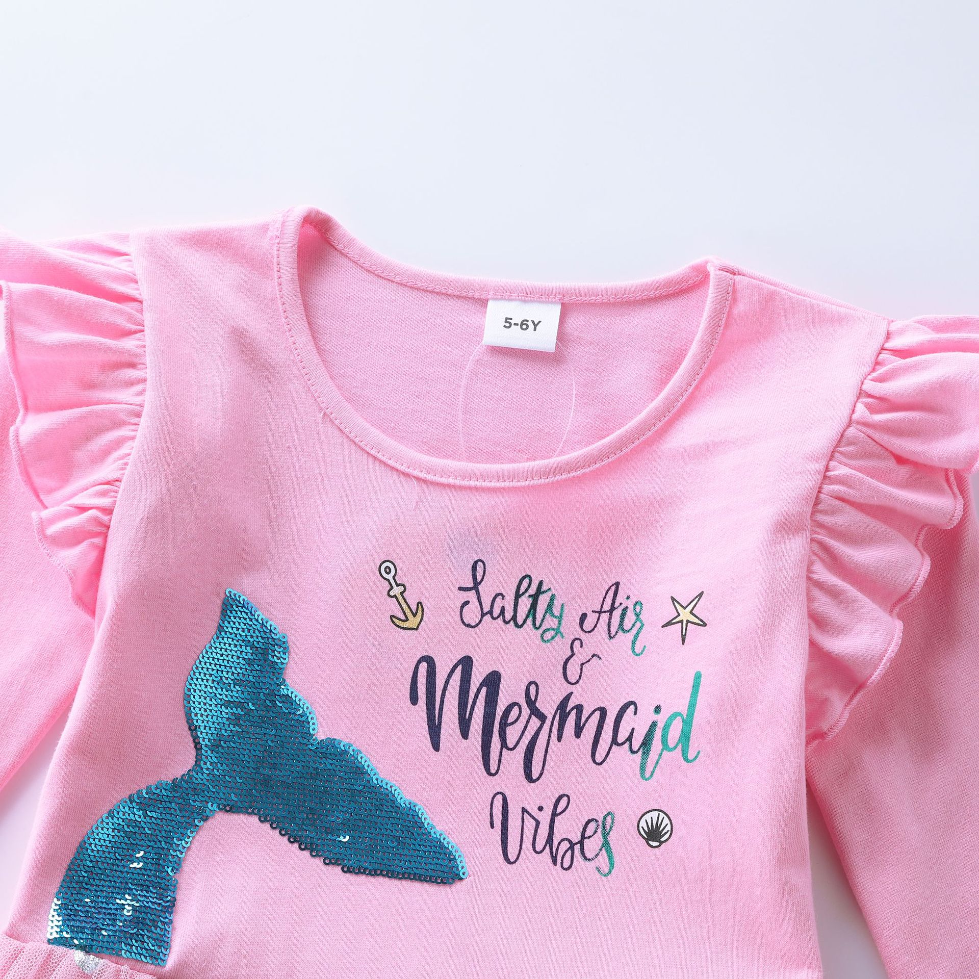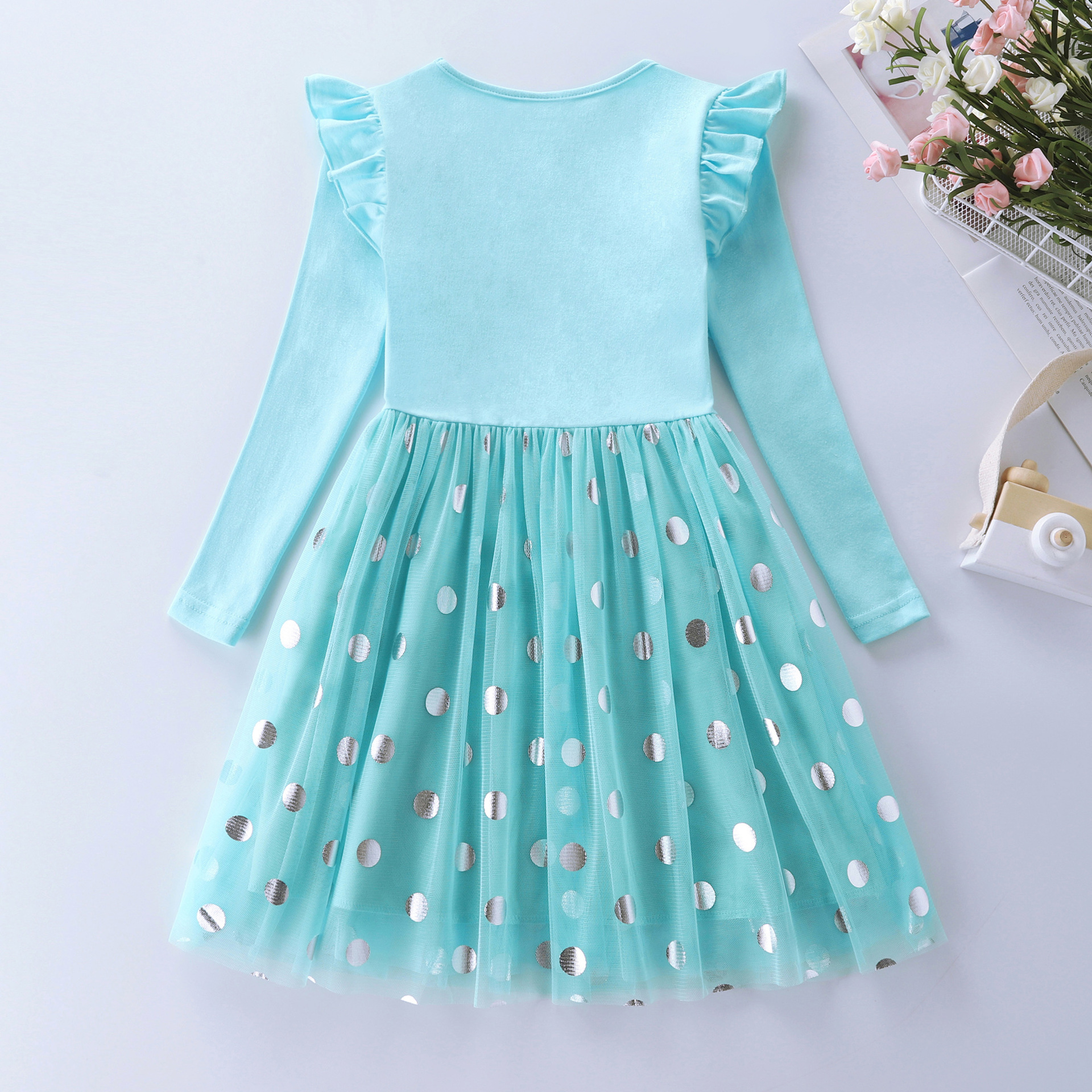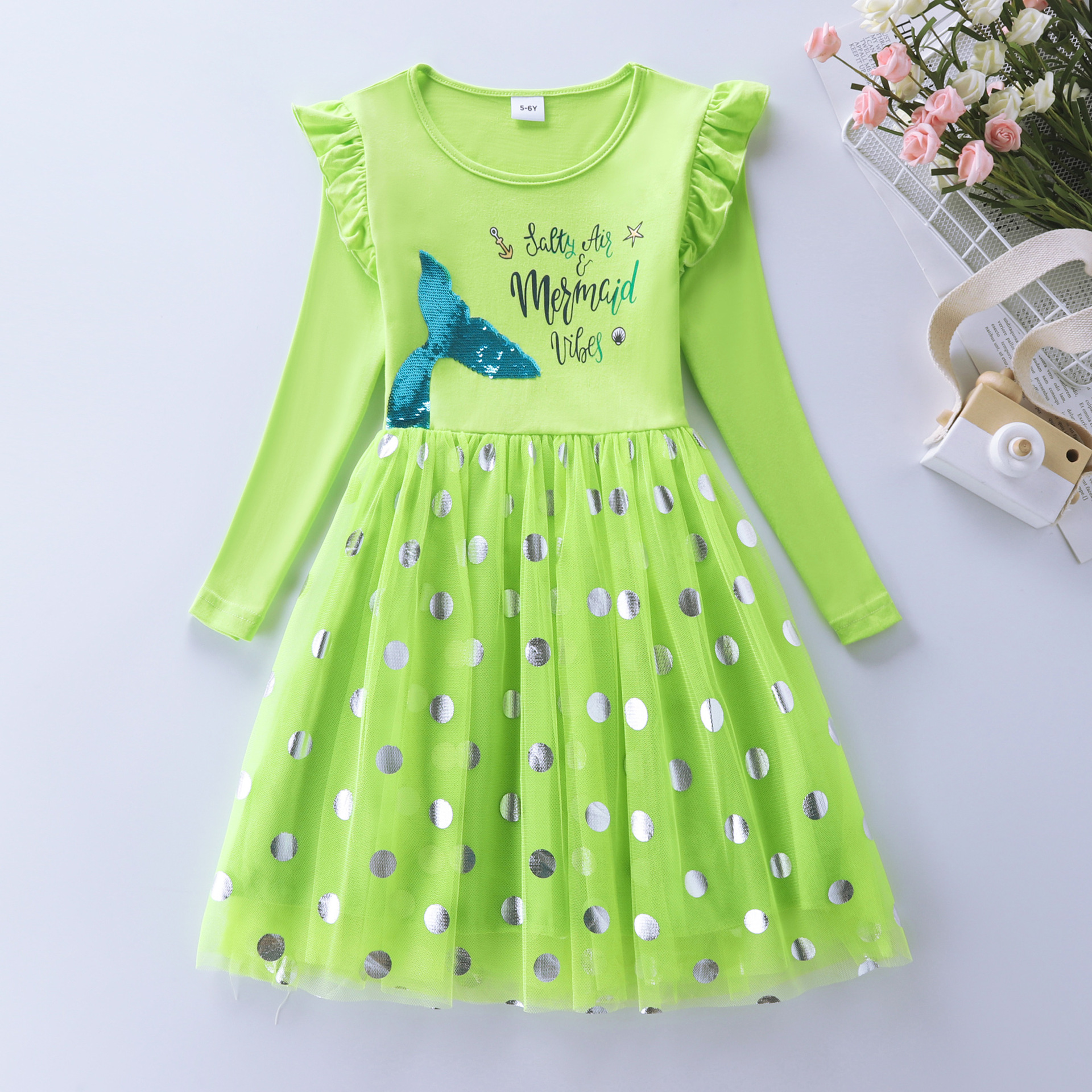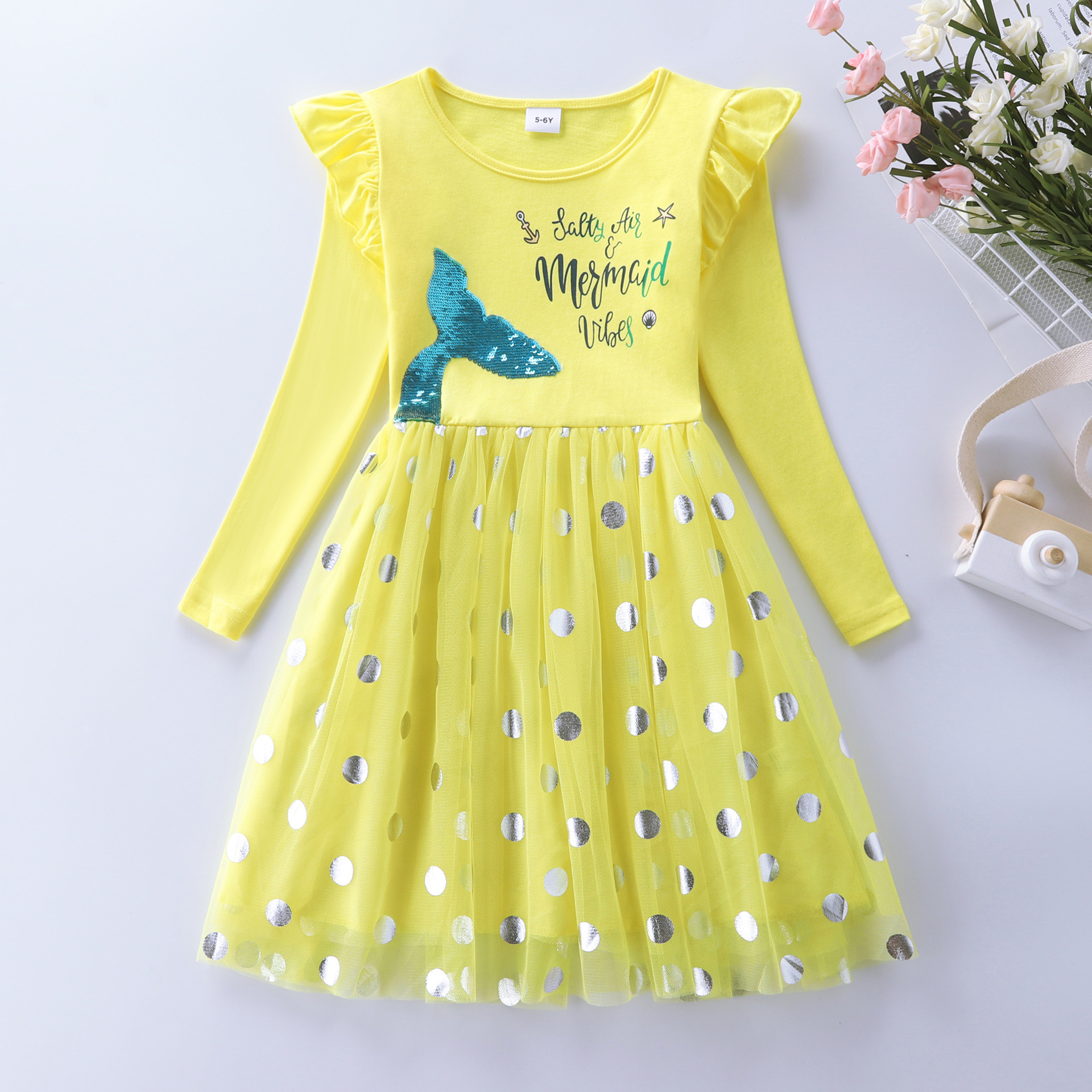Los niños y las niñas de manga larga sirena bordado malla princesa otoño volver a la escuela temporada vestido LH1803