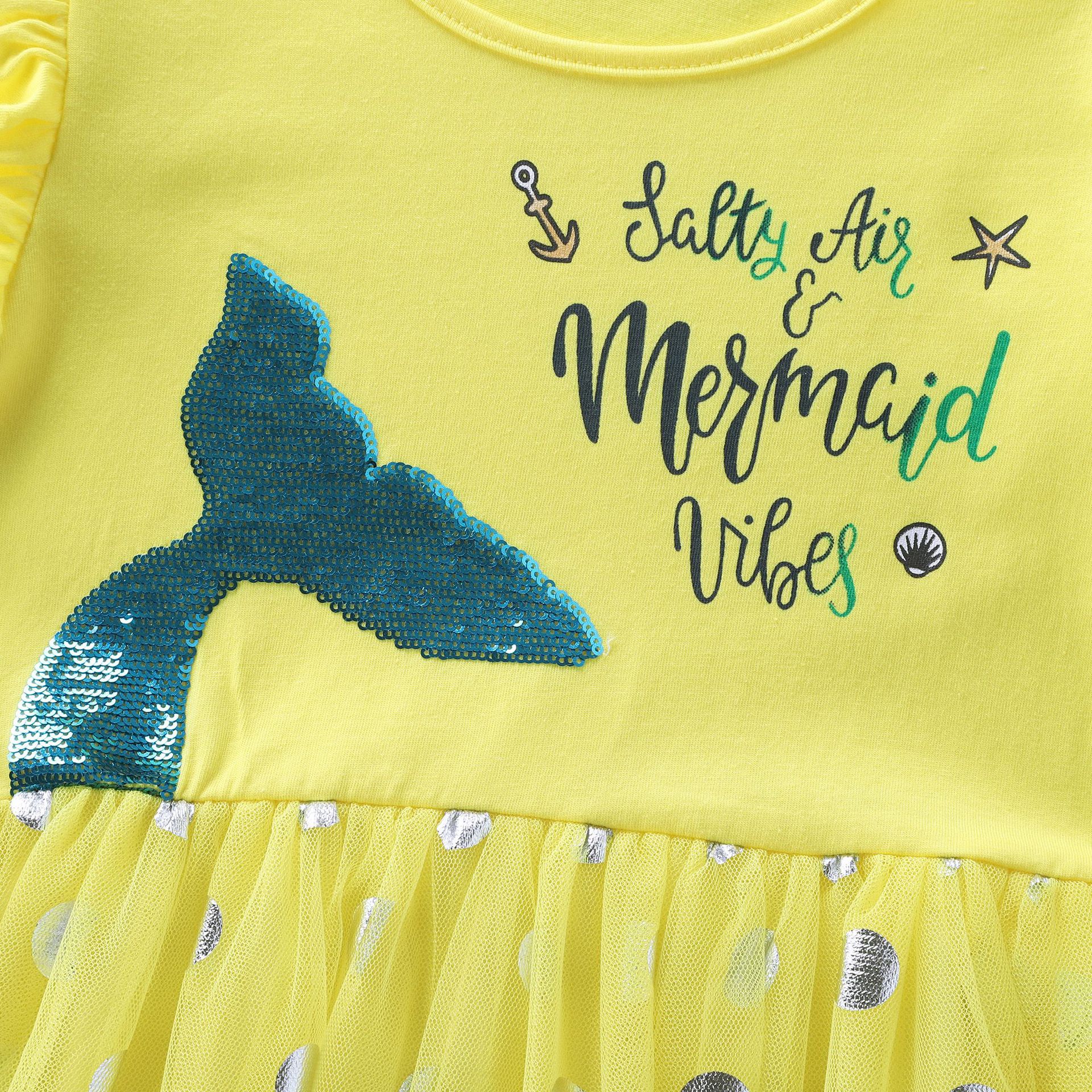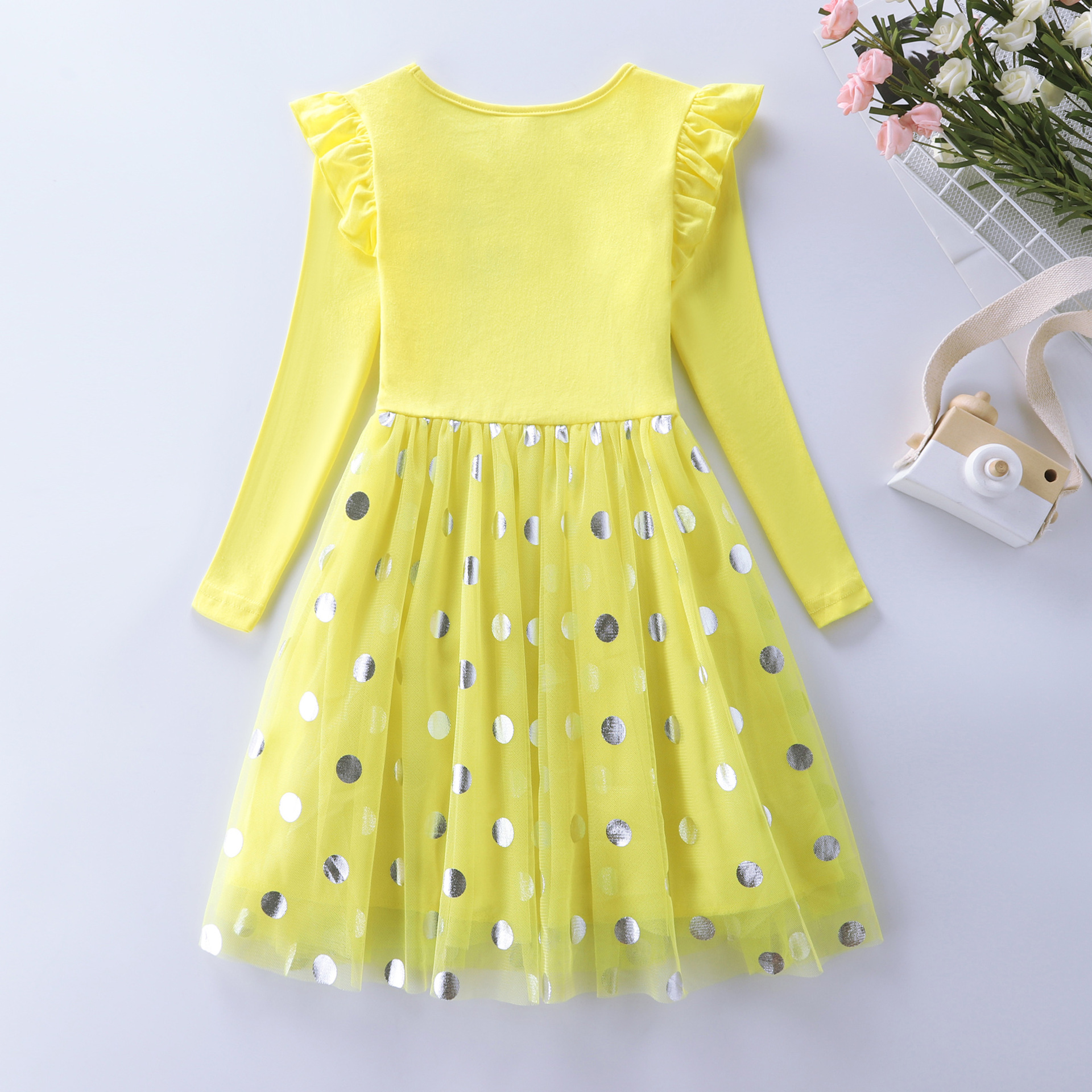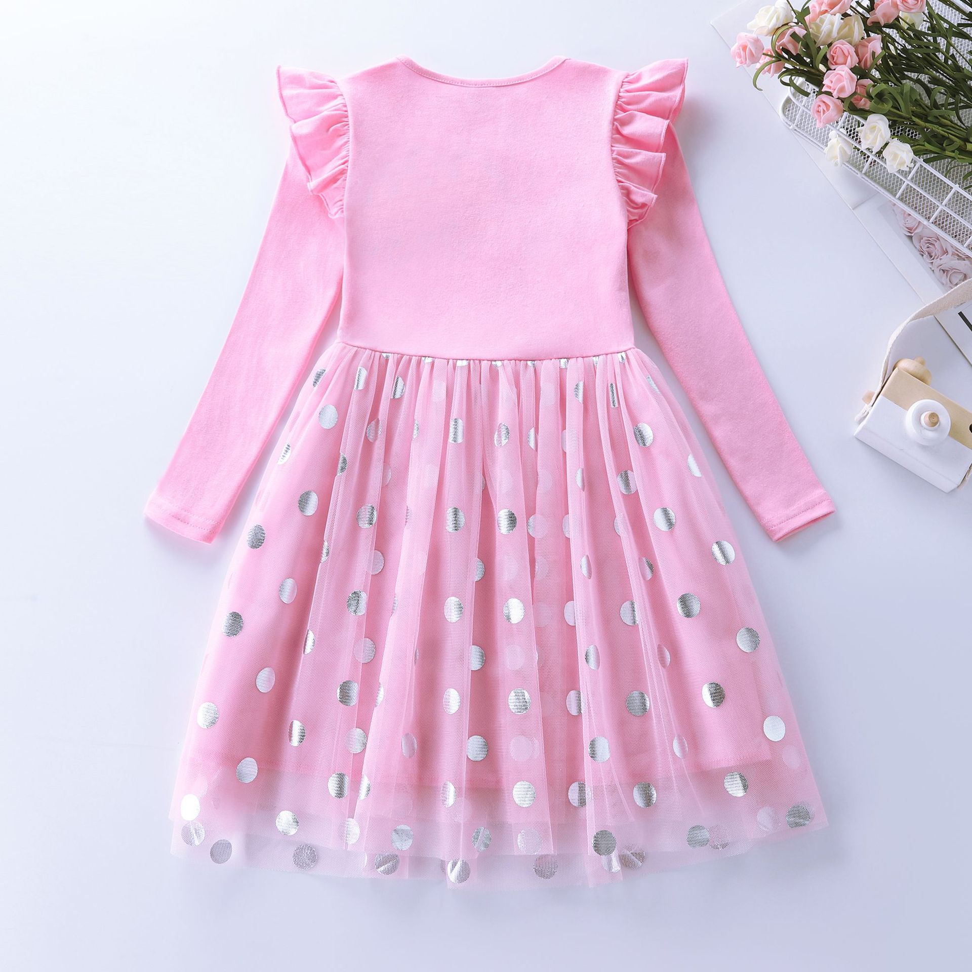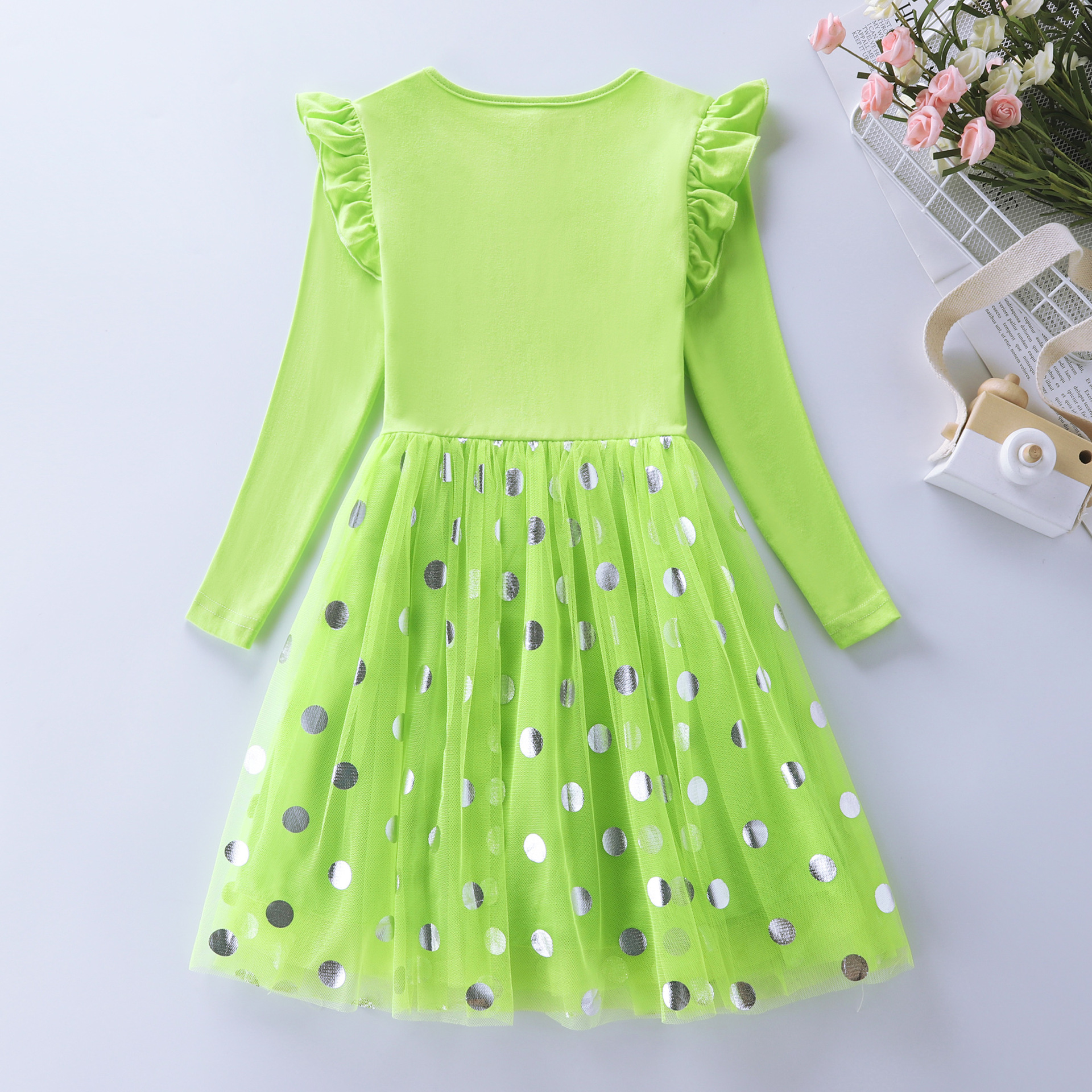 Los niños y las niñas de manga larga sirena bordado malla princesa otoño volver a la escuela temporada vestido LH1803