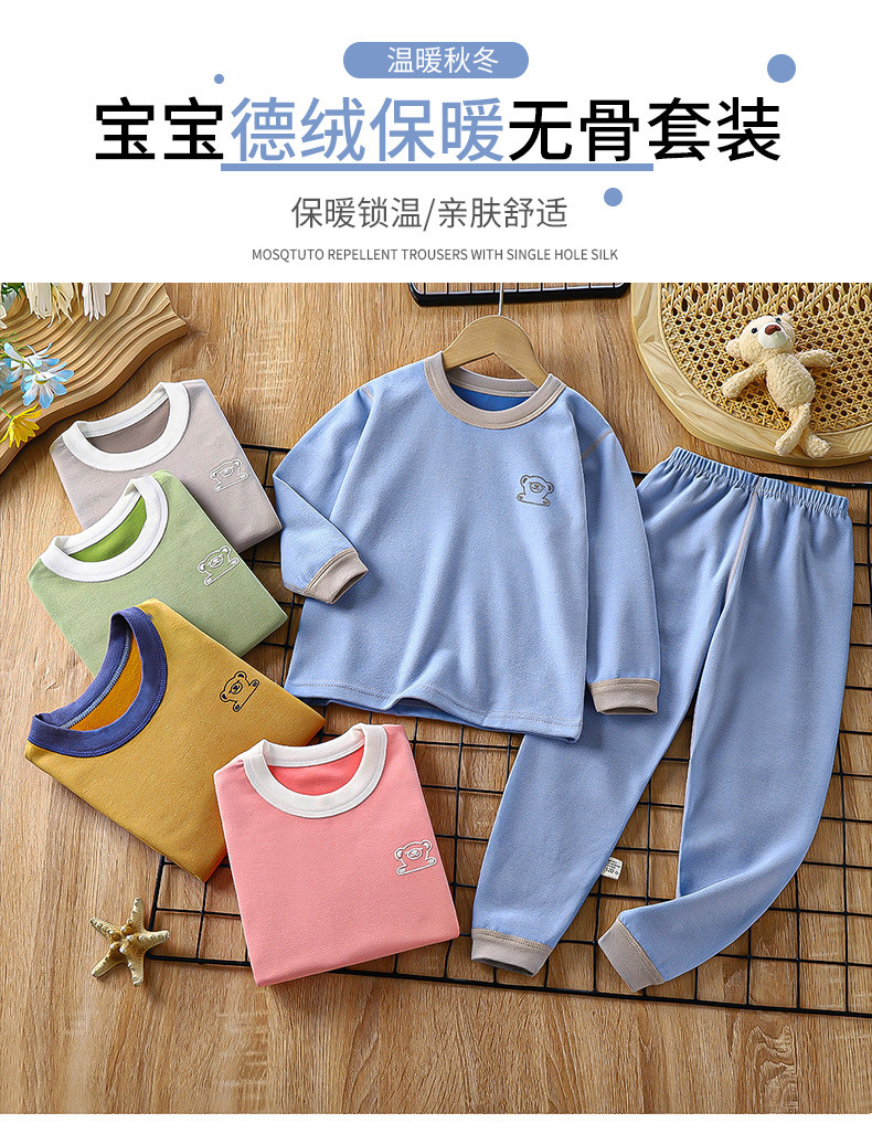 Traje de pantalones largos de otoño nuevo estilo de cuello alto y medio deshuesado para niños, conjunto de ropa interior térmica gruesa a rayas del tesoro para hombres y mujeres