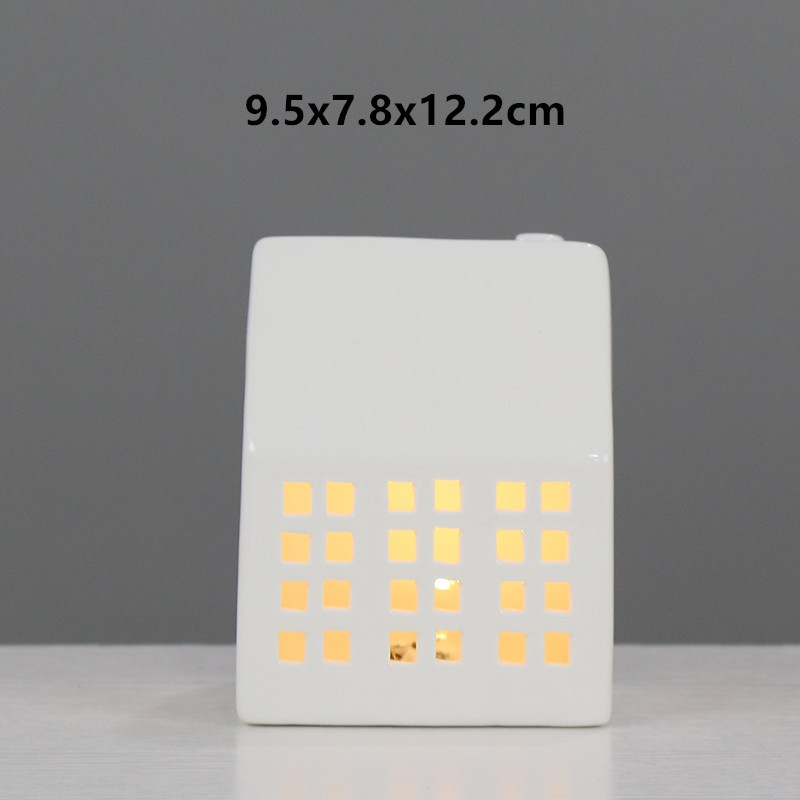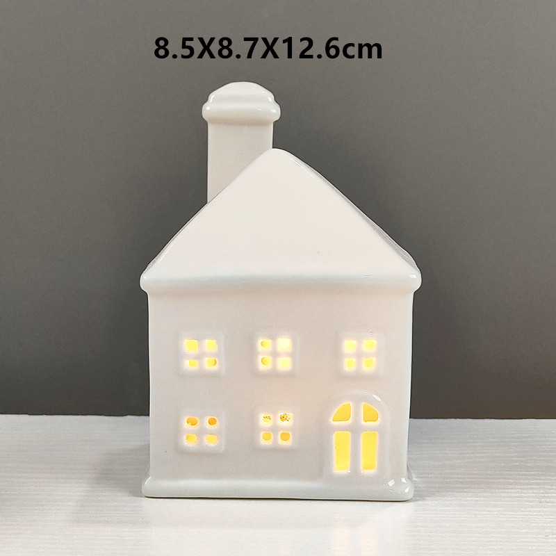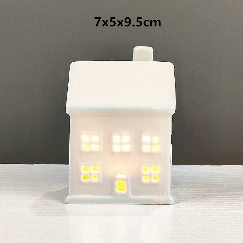 Cerámica nórdica pequeña casa artesanía creativa LED candelabro ins europeo y americano Holiday Home Night Light decoración adornos