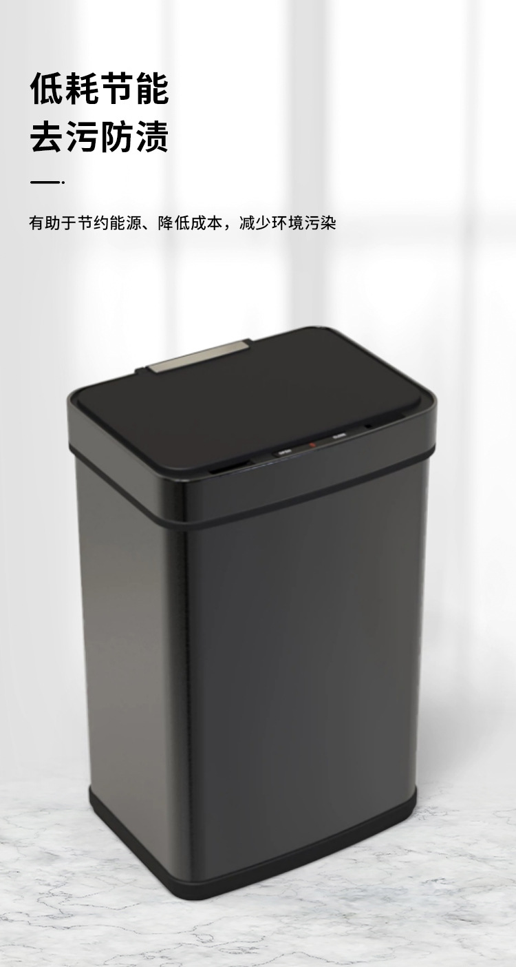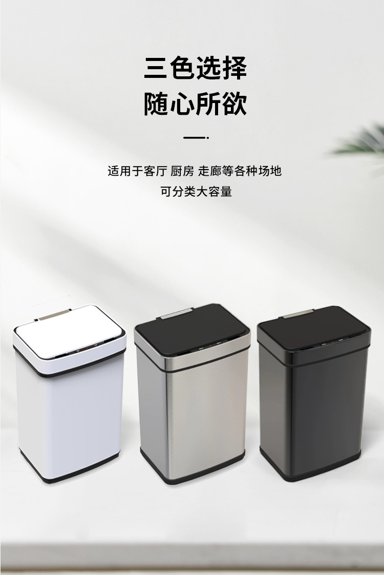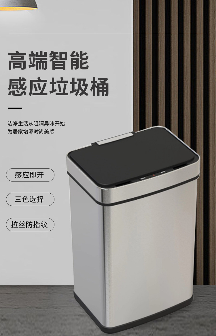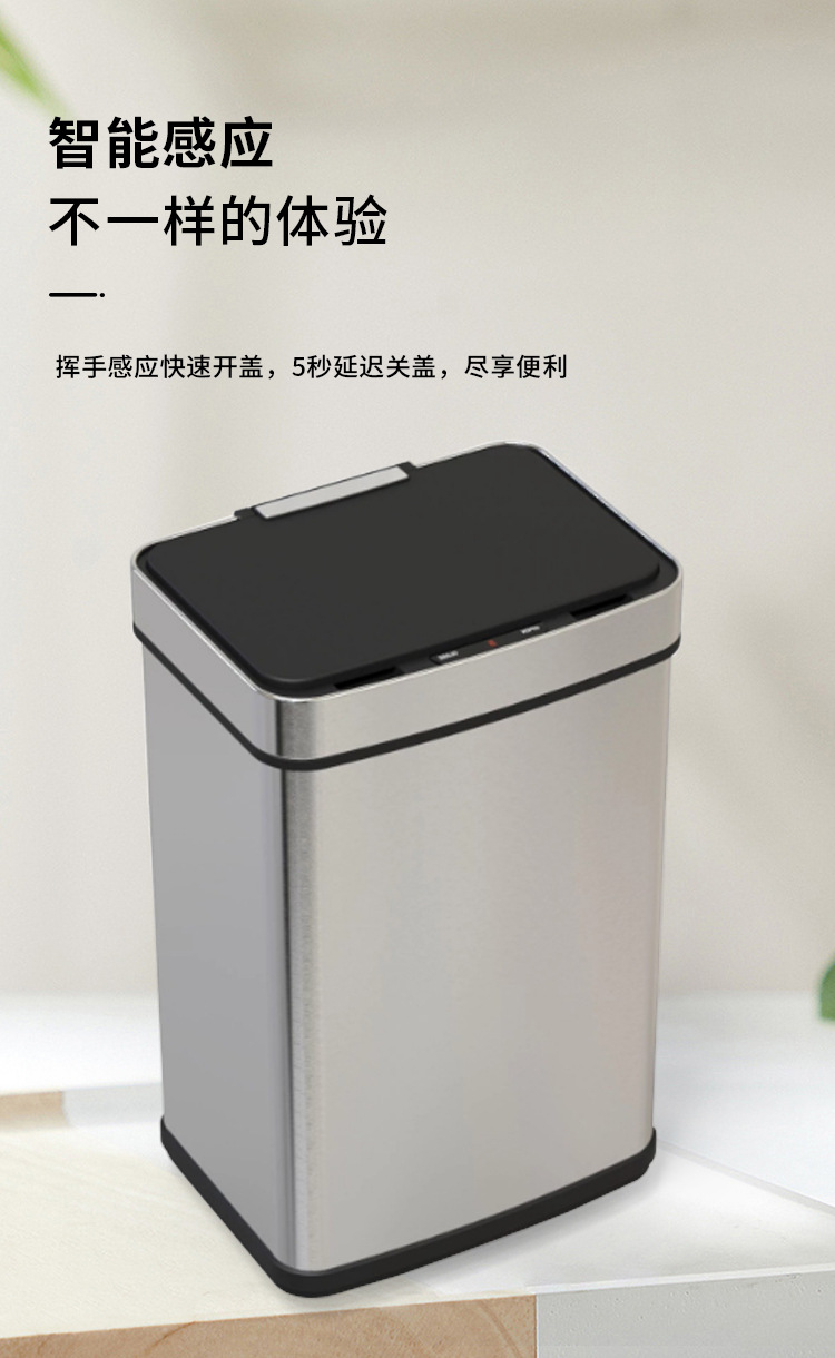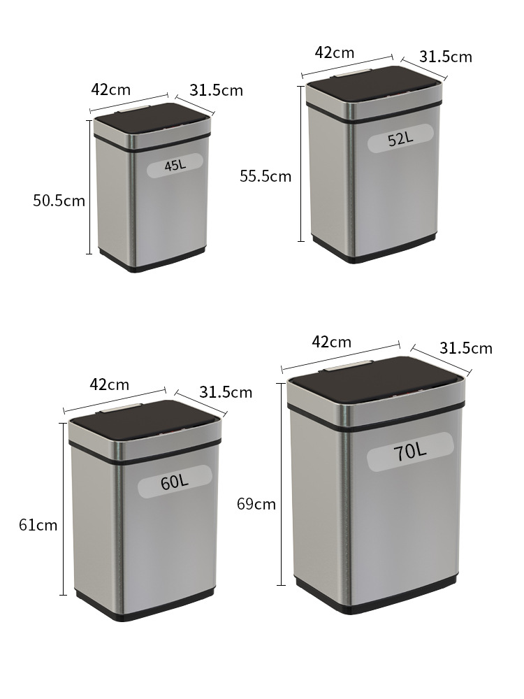 Papelera inteligente de acero inoxidable 45L/52L/60L/70L de gran capacidad de metal cuadrado eléctrico sensor de basura