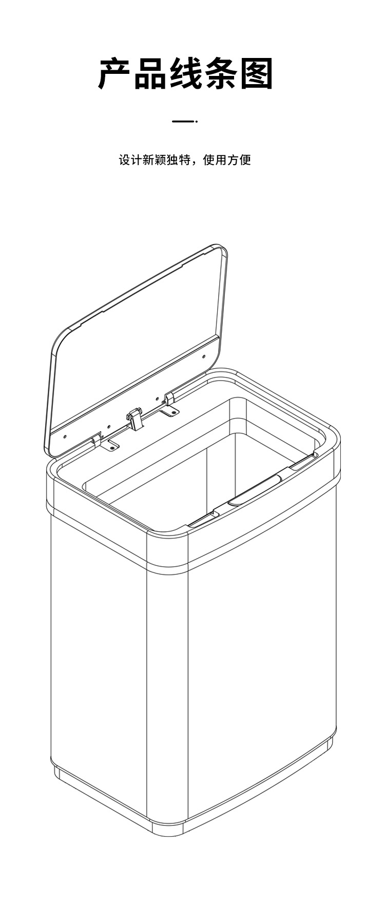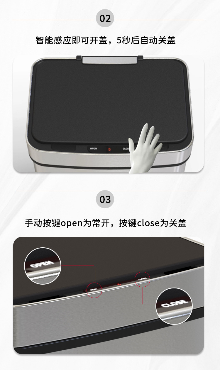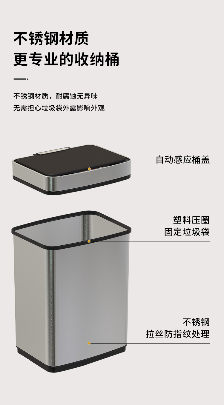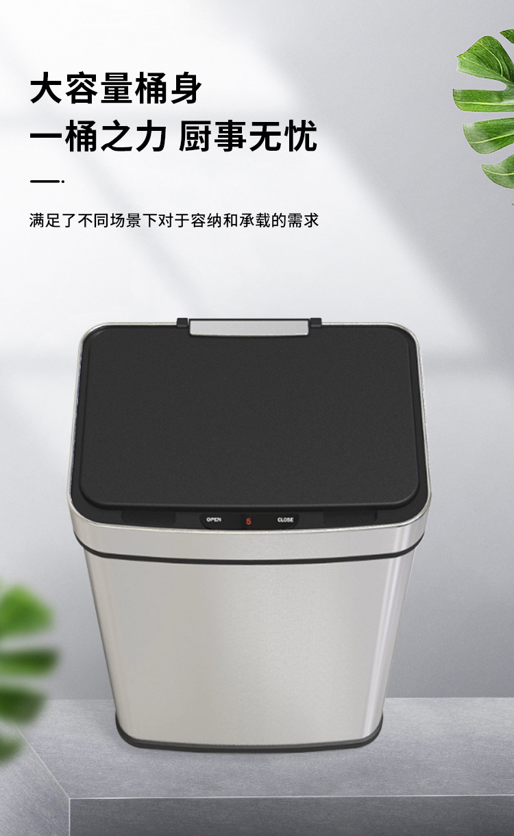 Papelera inteligente de acero inoxidable 45L/52L/60L/70L de gran capacidad de metal cuadrado eléctrico sensor de basura