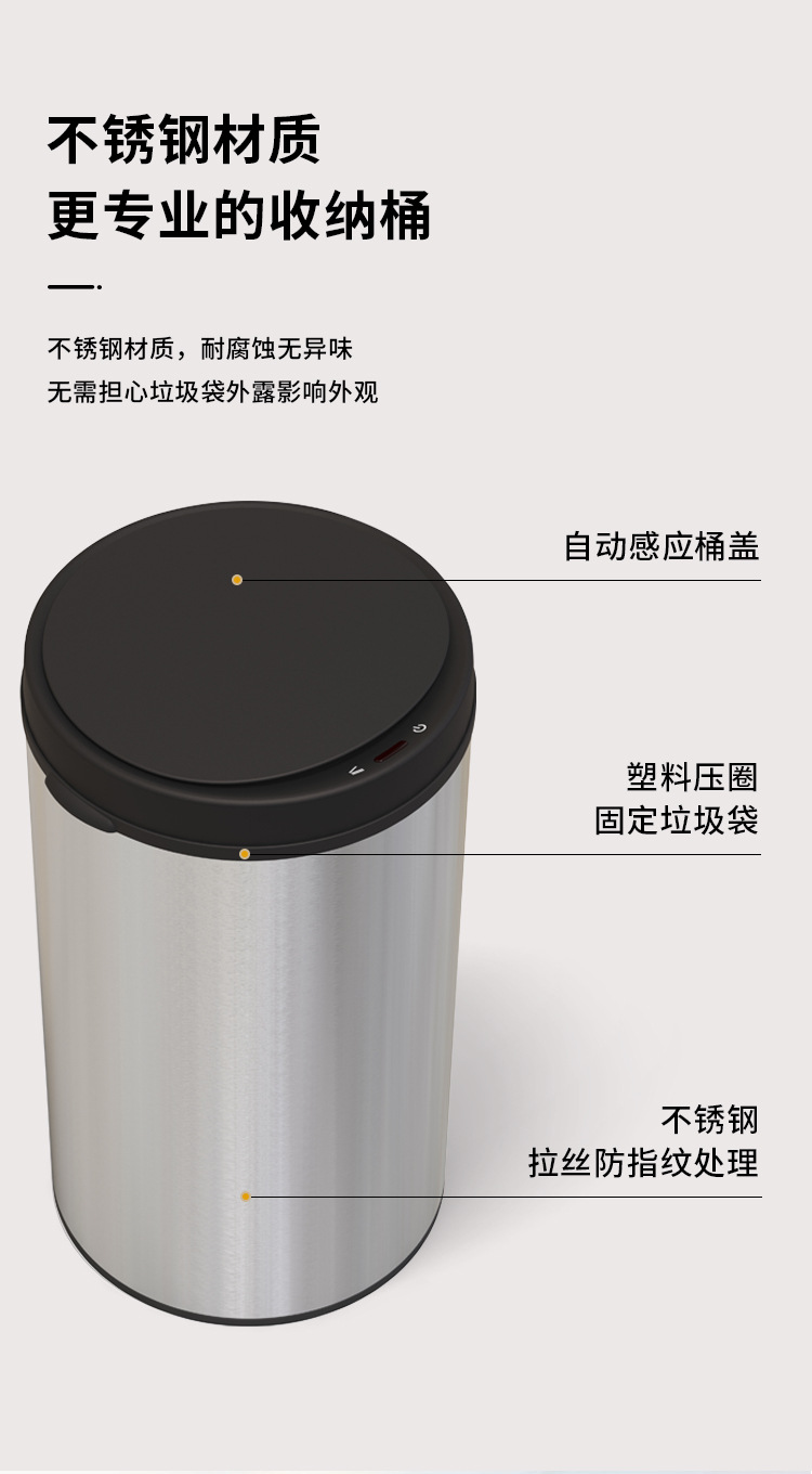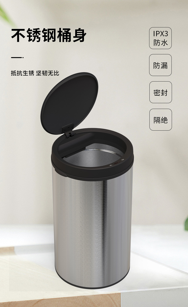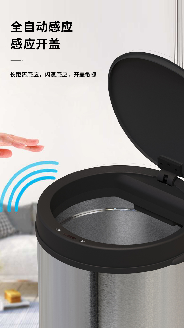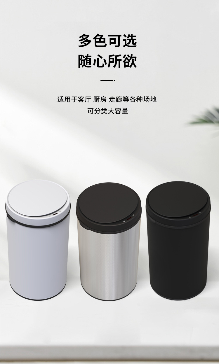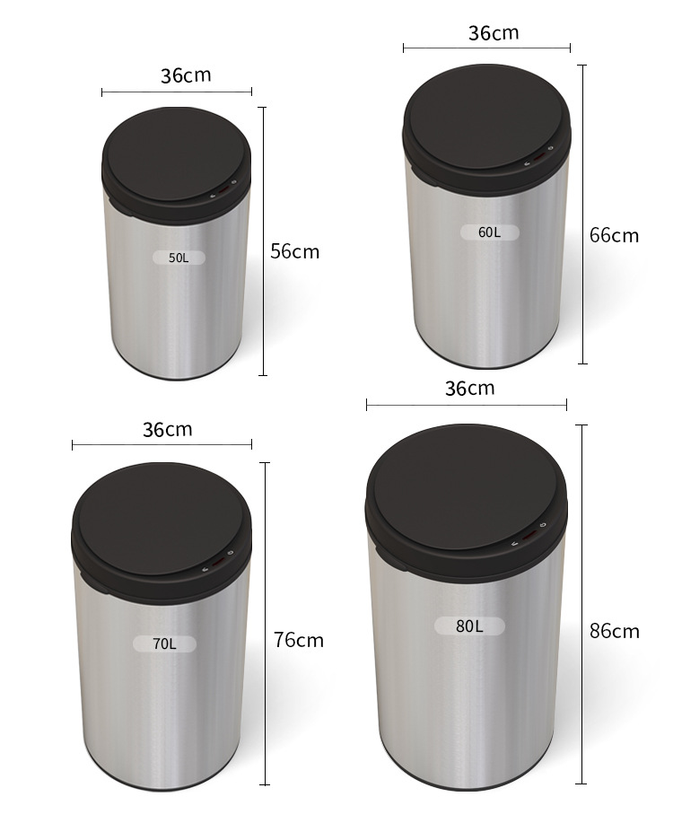 Basurero redondo inteligente de acero inoxidable 50L / 60L / 70L / 80L de gran capacidad de cocina de detección automática