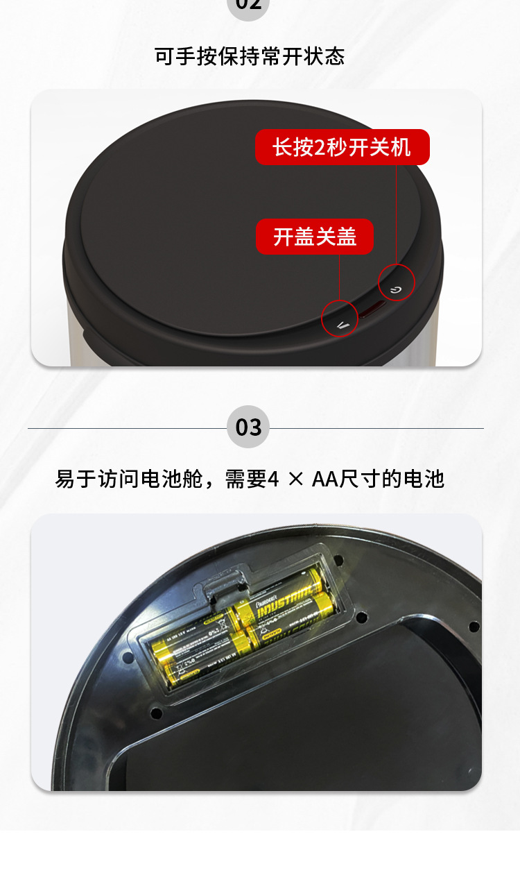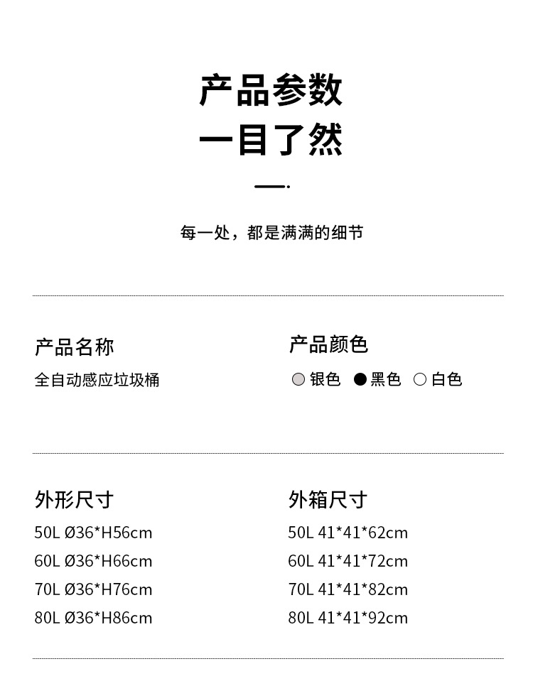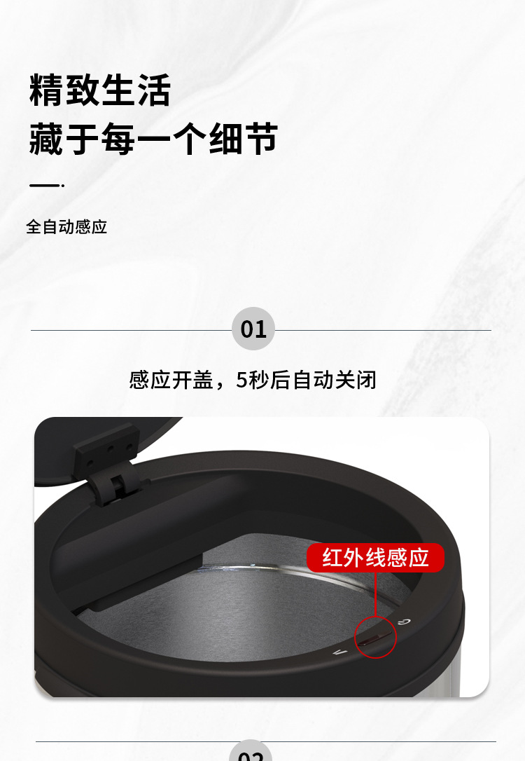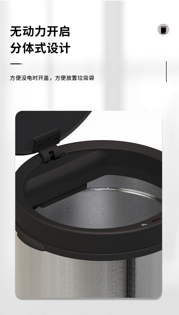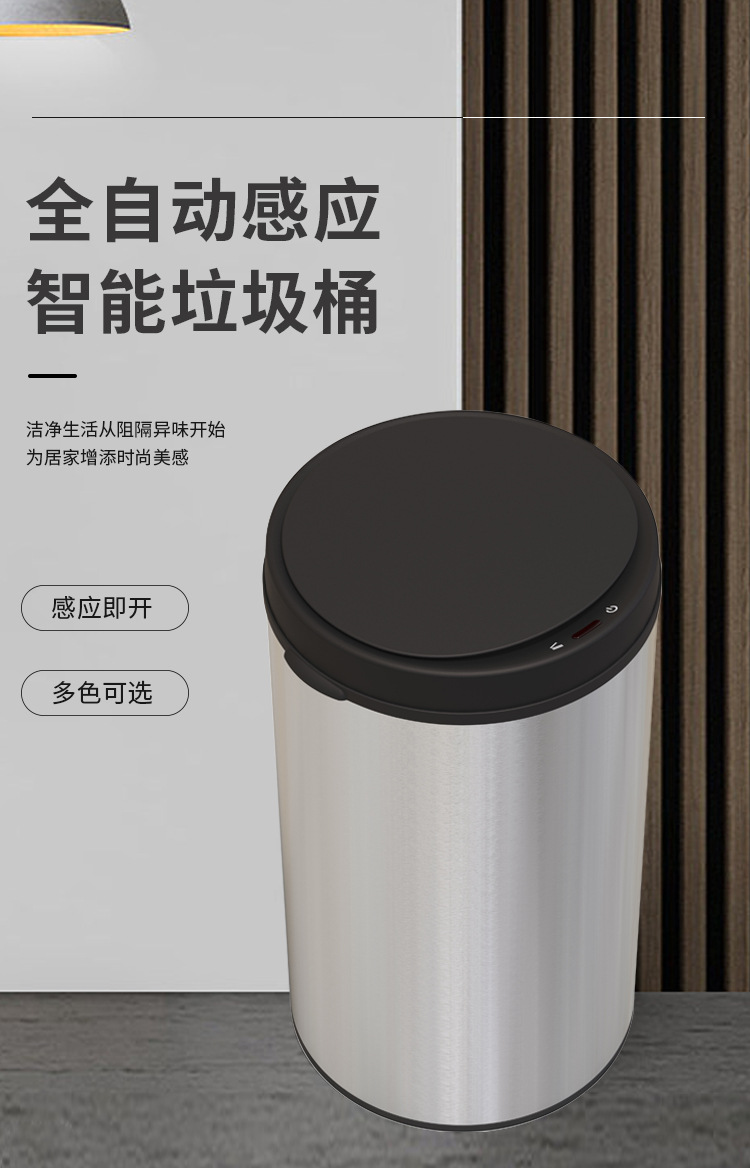 Basurero redondo inteligente de acero inoxidable 50L / 60L / 70L / 80L de gran capacidad de cocina de detección automática