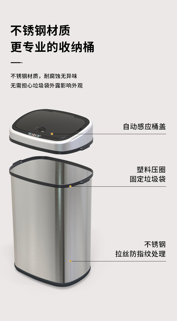 Basura de inducción de acero inoxidable inteligente 50L / 58L / 68L cocina automática de gran capacidad doméstica con cubierta para oficina