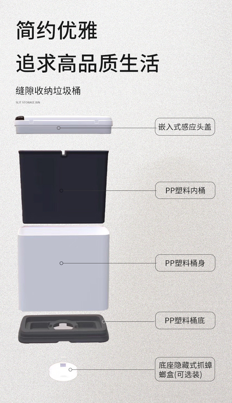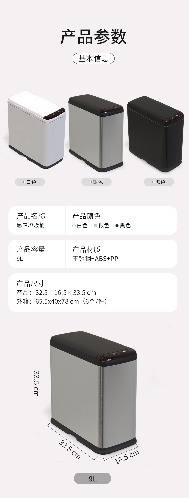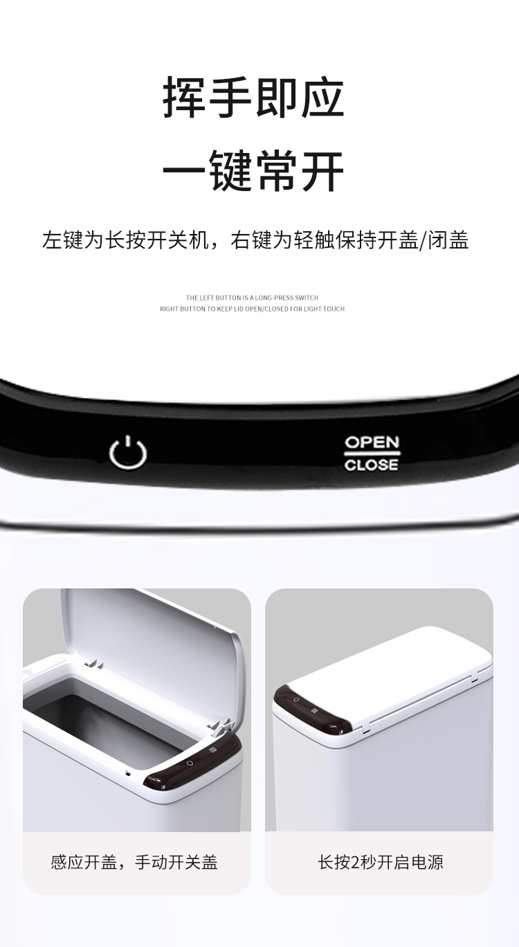 Basura de plástico de inducción inteligente 9L contenedor de acero inoxidable de pequeña capacidad automática basura de inducción infrarroja