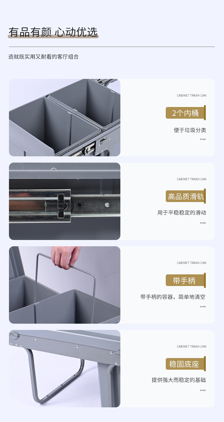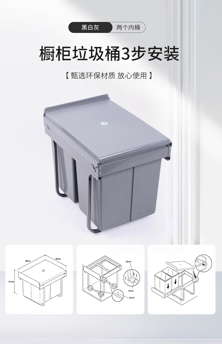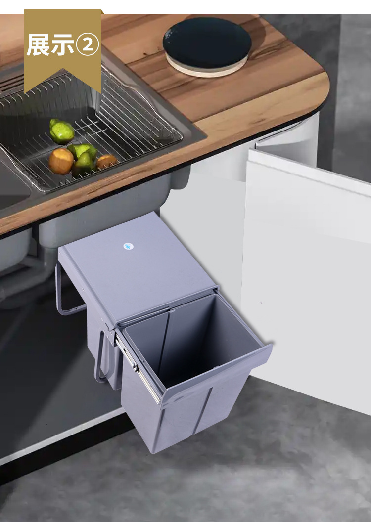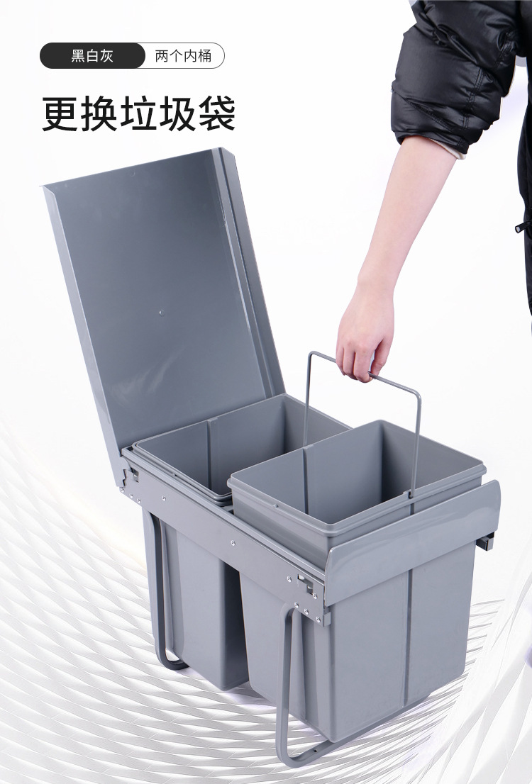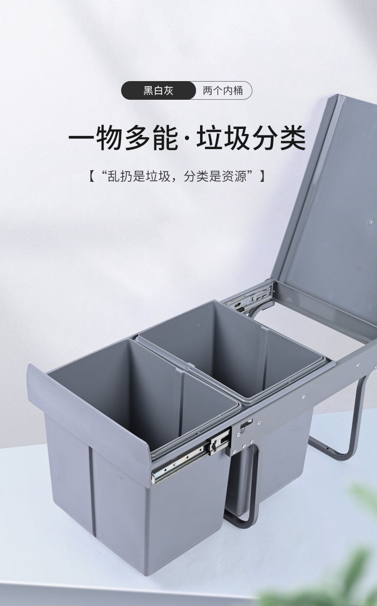 Almacenamiento invisible 400 gabinetes de gabinetes de hierro estante de extracción de clasificación 2 × 15L integrado de plástico doble cubo de basura