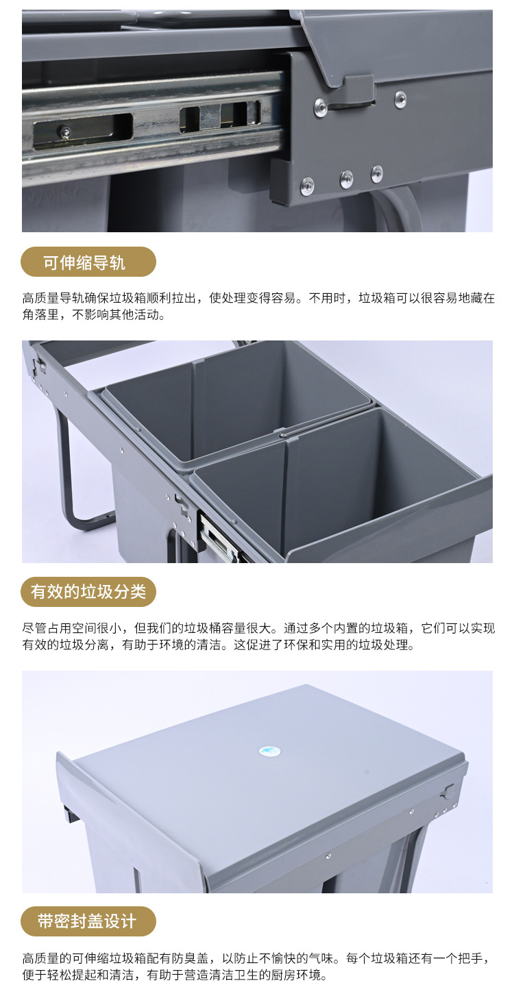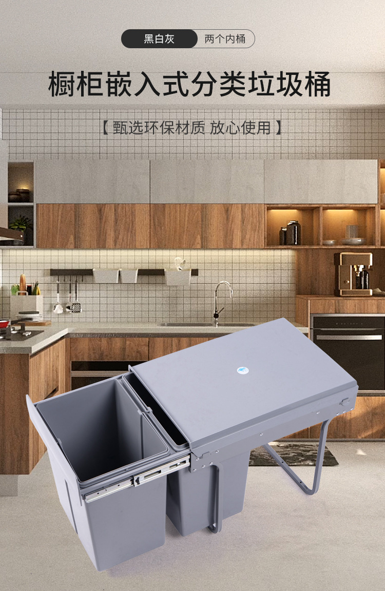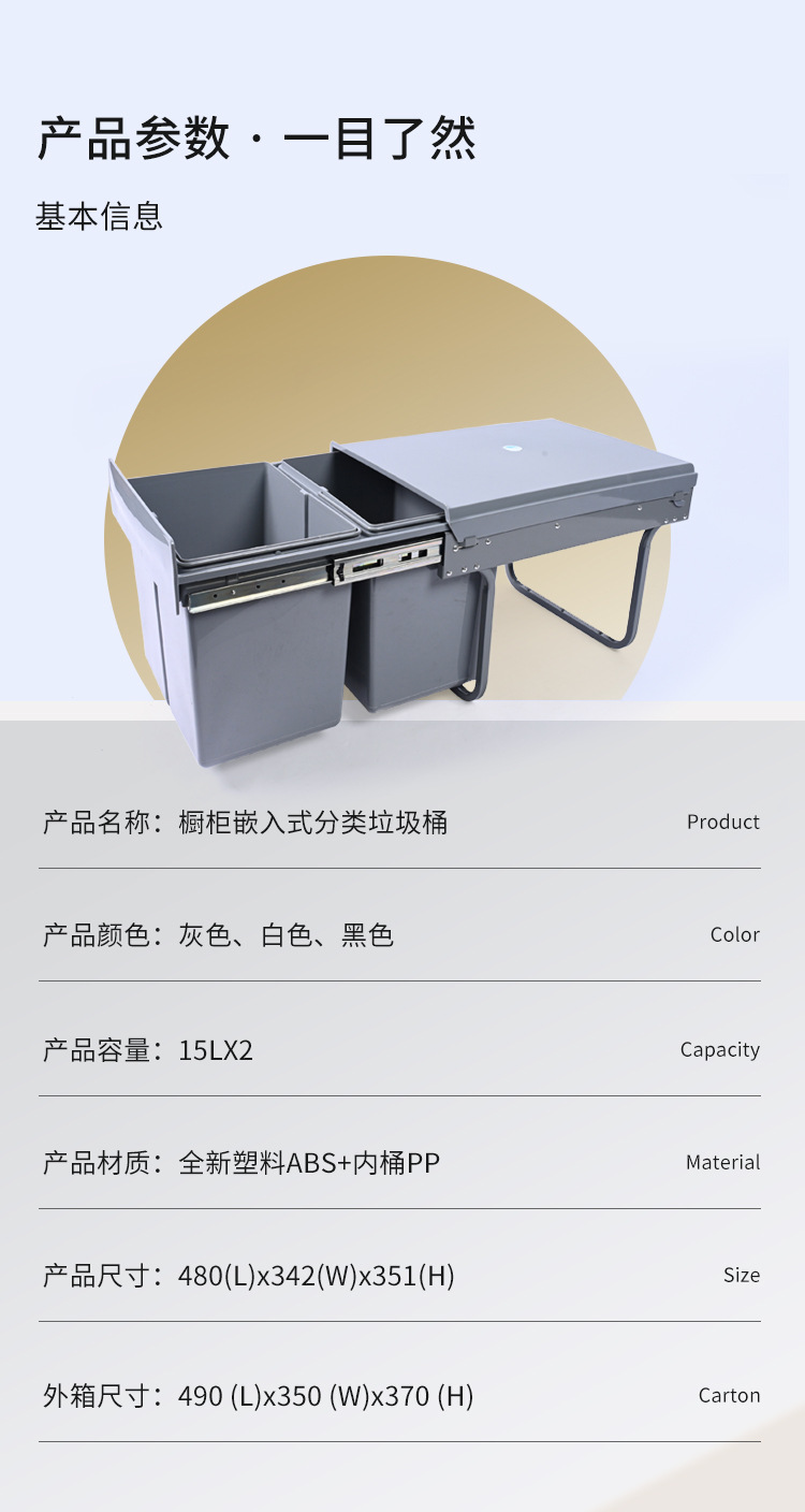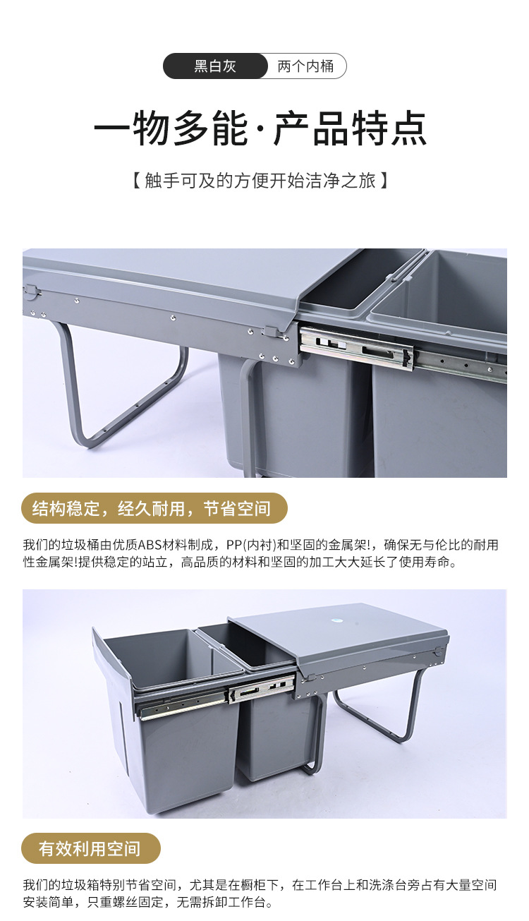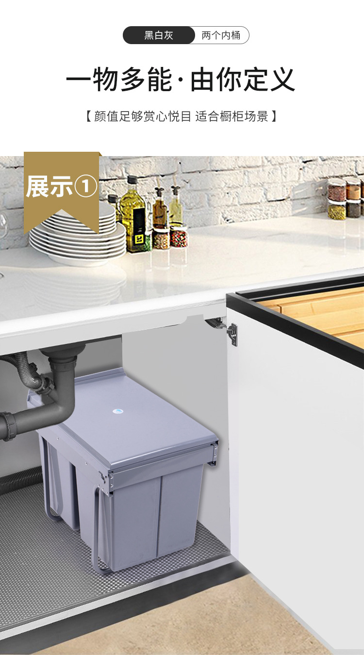 Almacenamiento invisible 400 gabinetes de gabinetes de hierro estante de extracción de clasificación 2 × 15L integrado de plástico doble cubo de basura