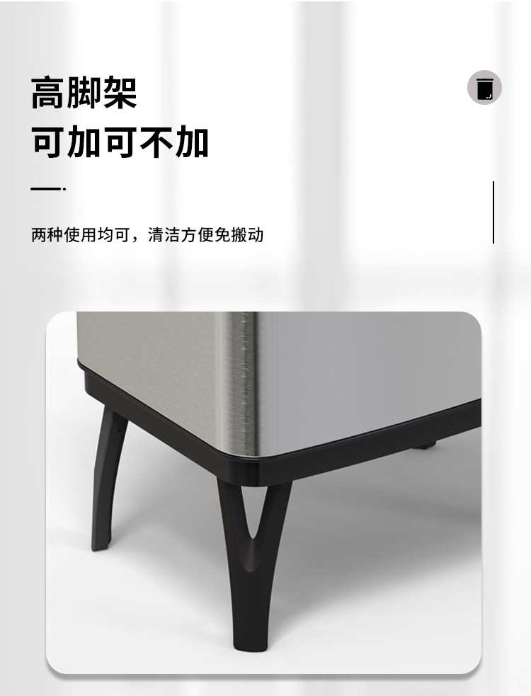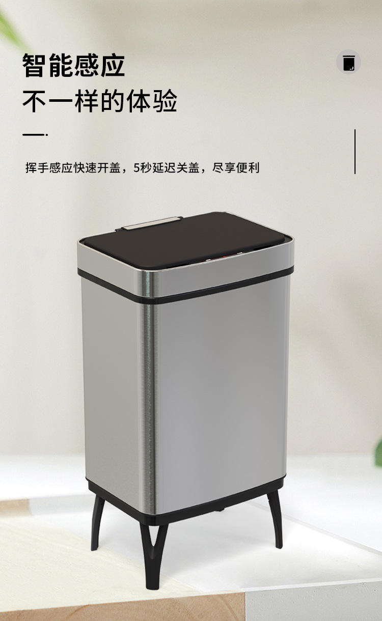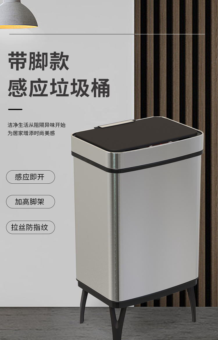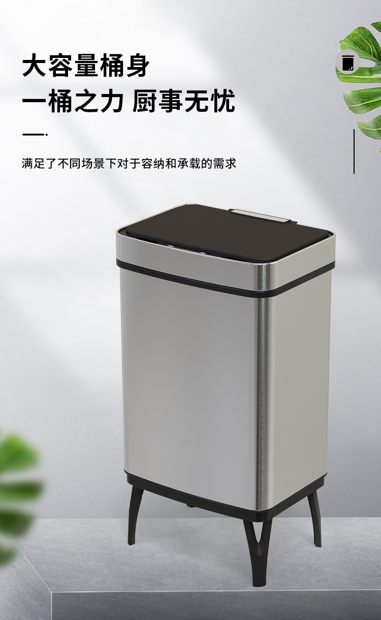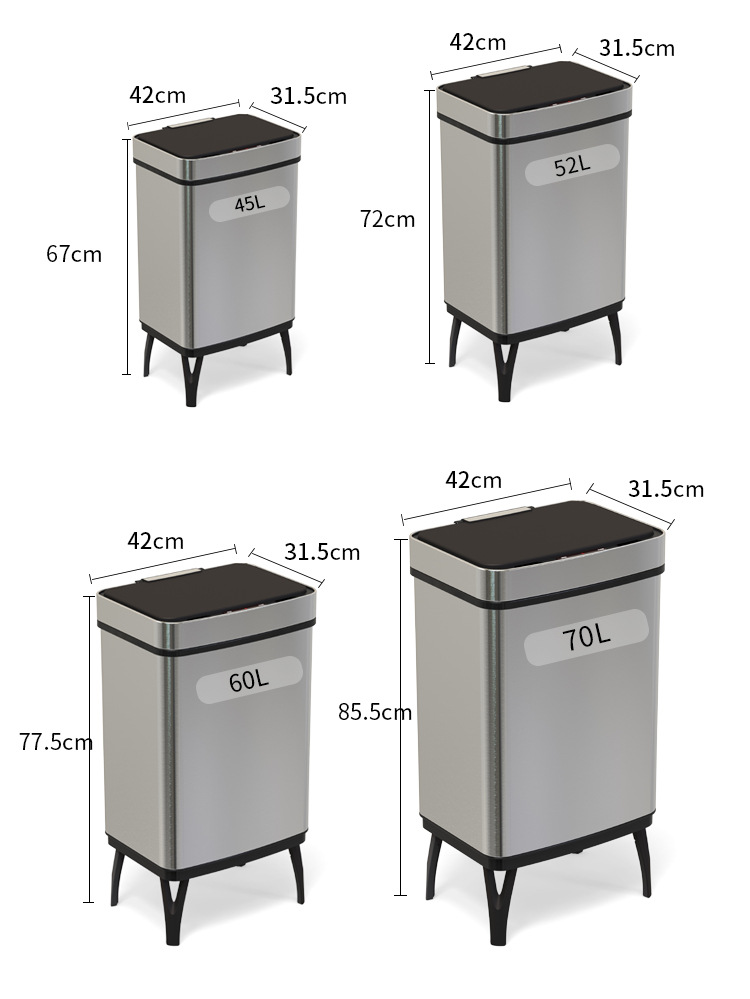 Basura de acero inoxidable inteligente 45L / 52L / 60L / 70L inducción doméstica de gran capacidad con pie alto automático