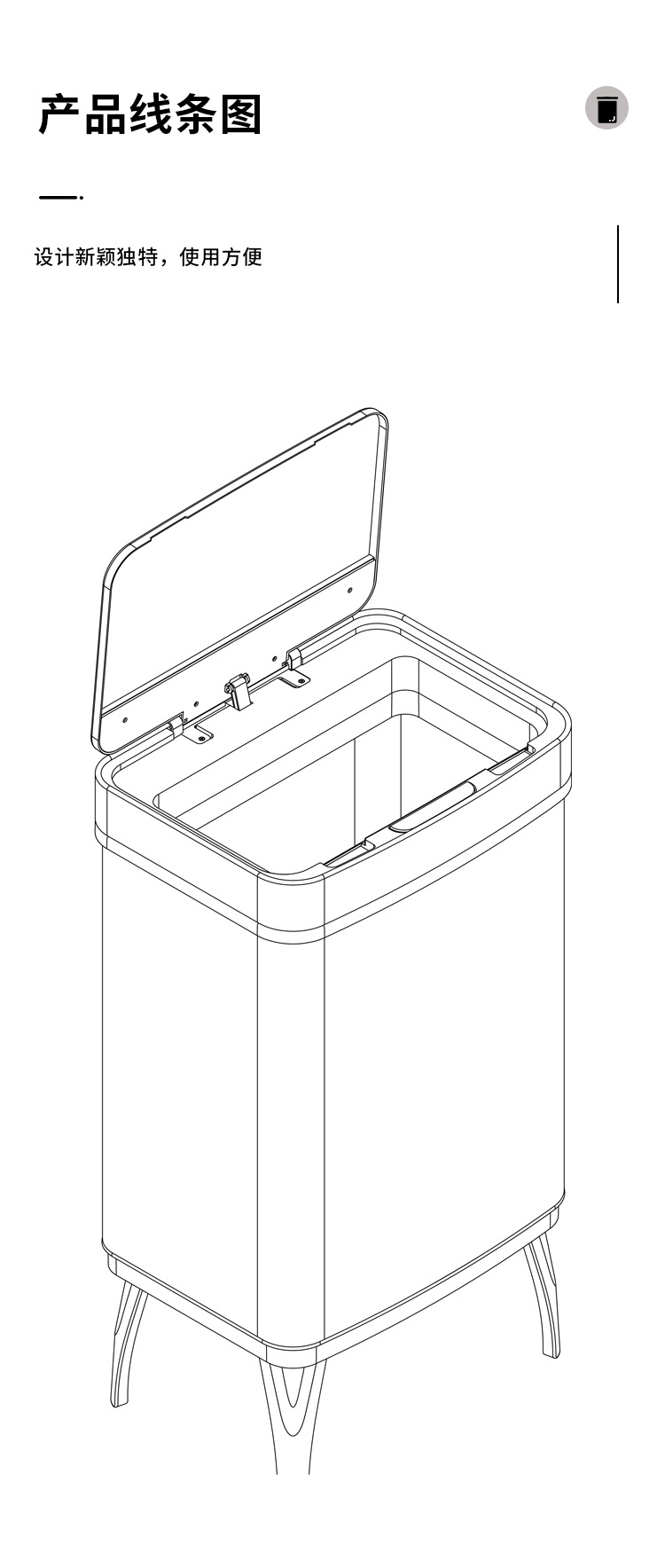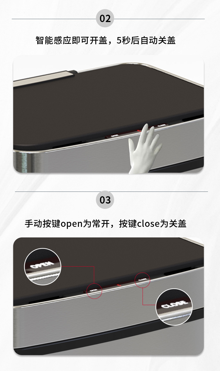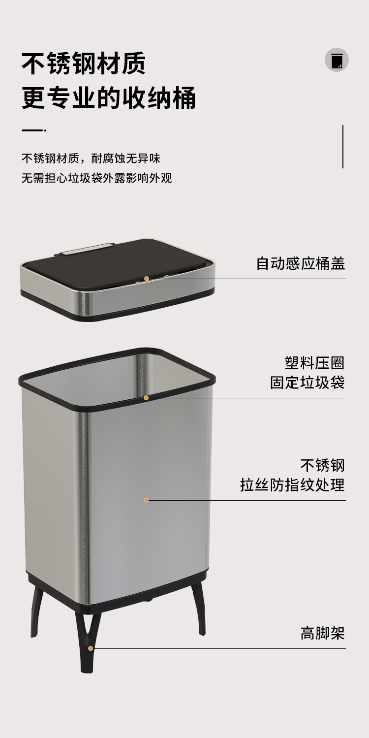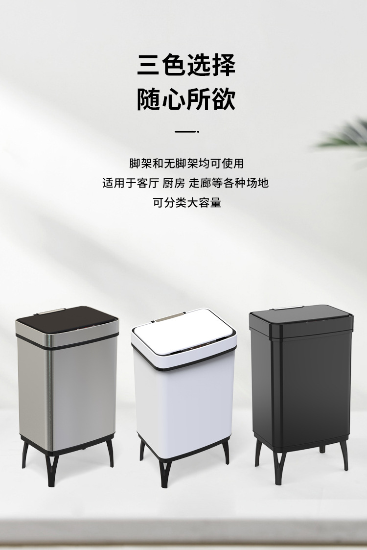 Basura de acero inoxidable inteligente 45L / 52L / 60L / 70L inducción doméstica de gran capacidad con pie alto automático