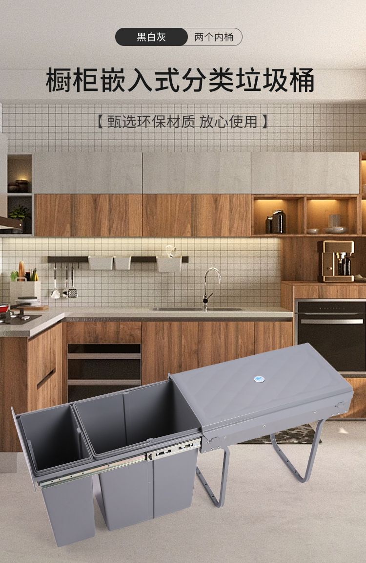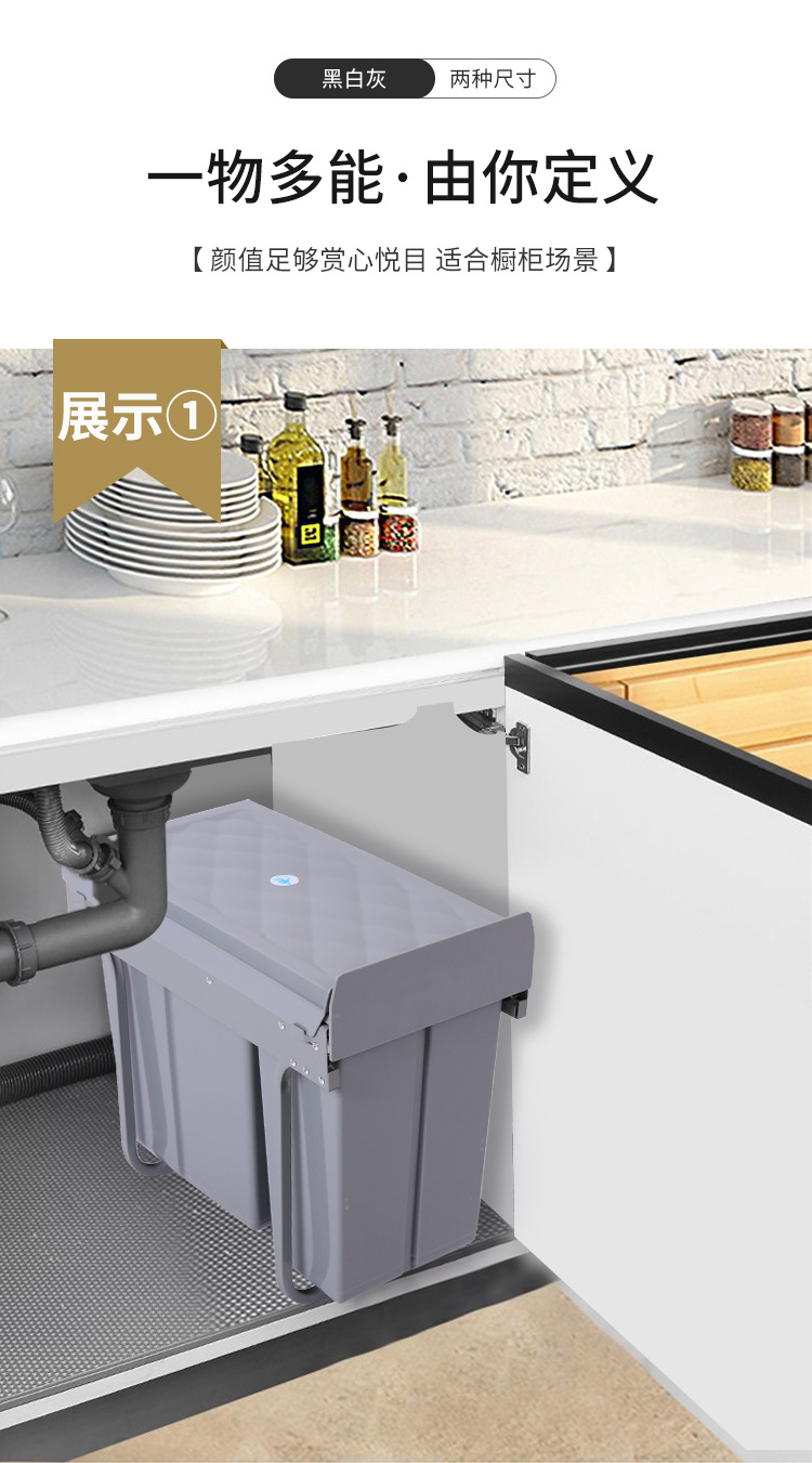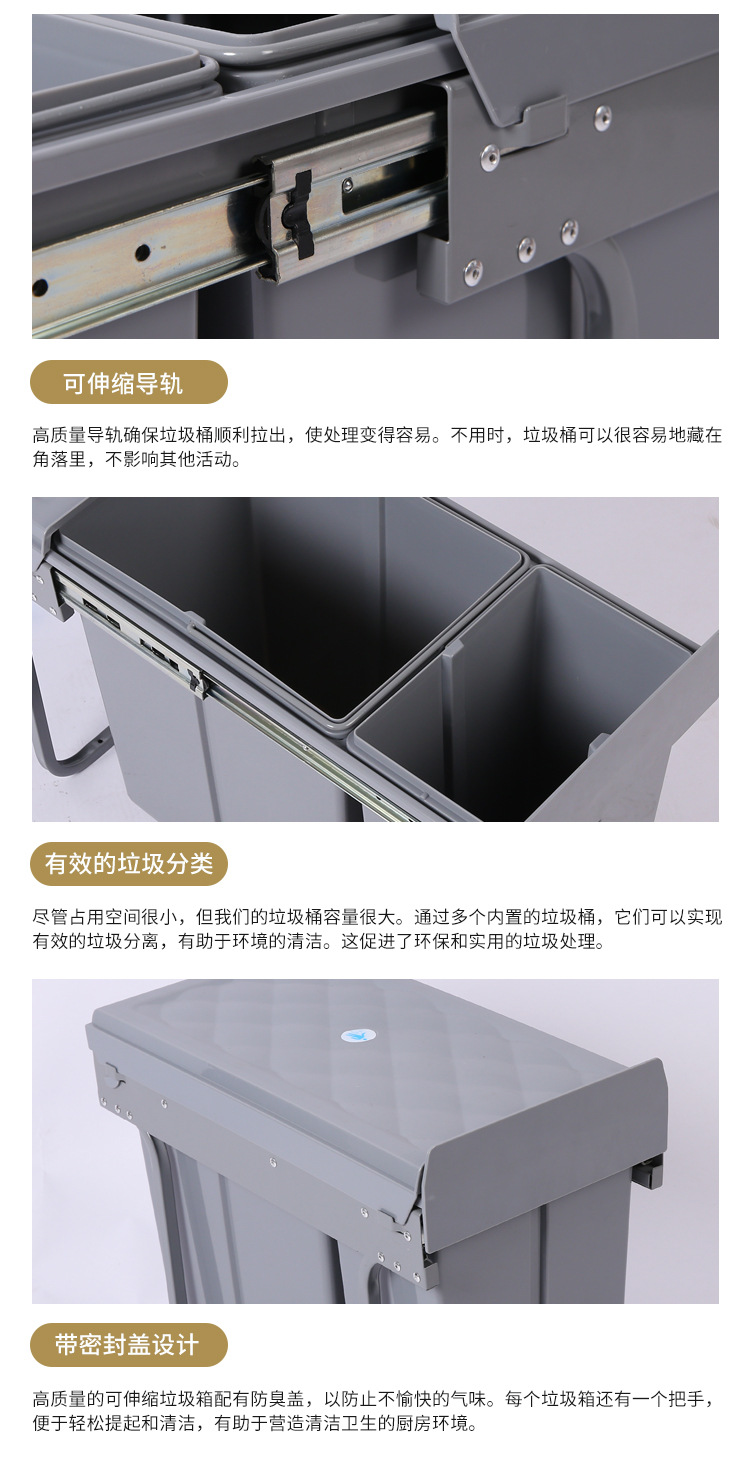 Gabinete empotrado bote de basura cocina clasificación oculta 10L 20L cubo de limpieza amortiguación extraíble con tapa