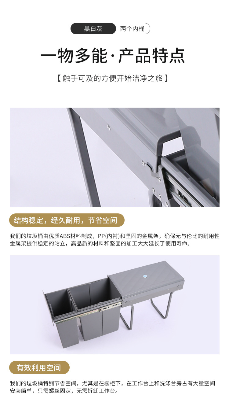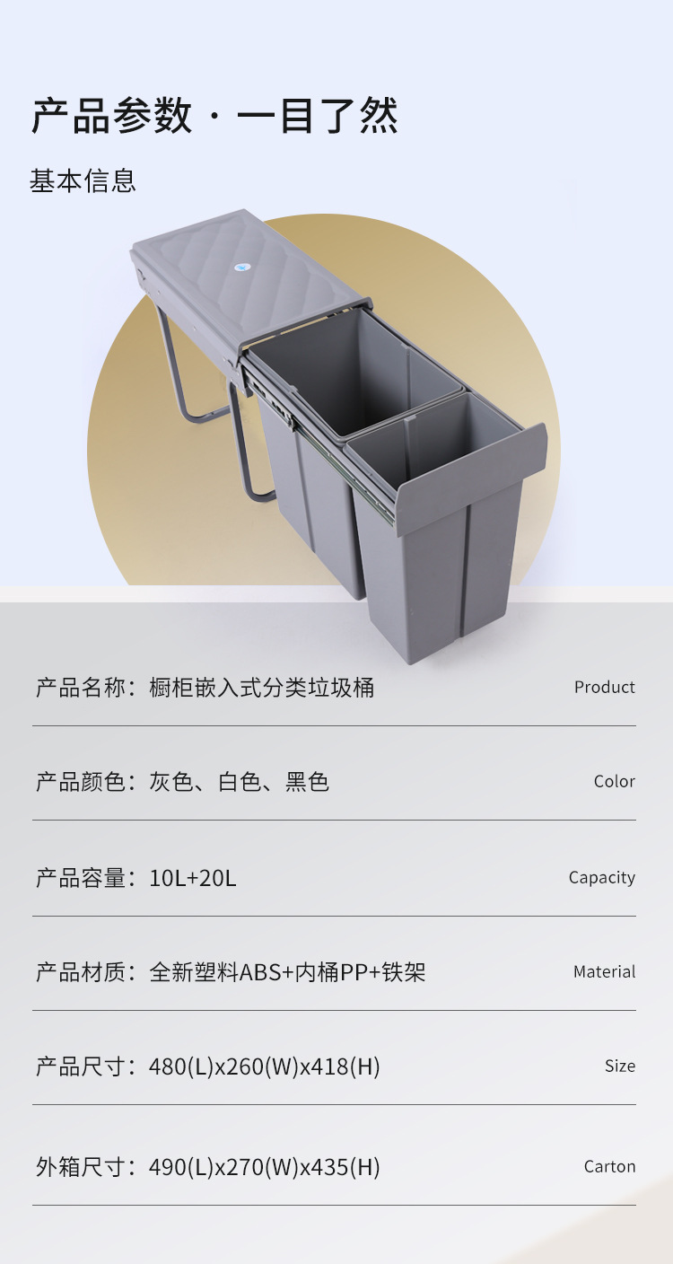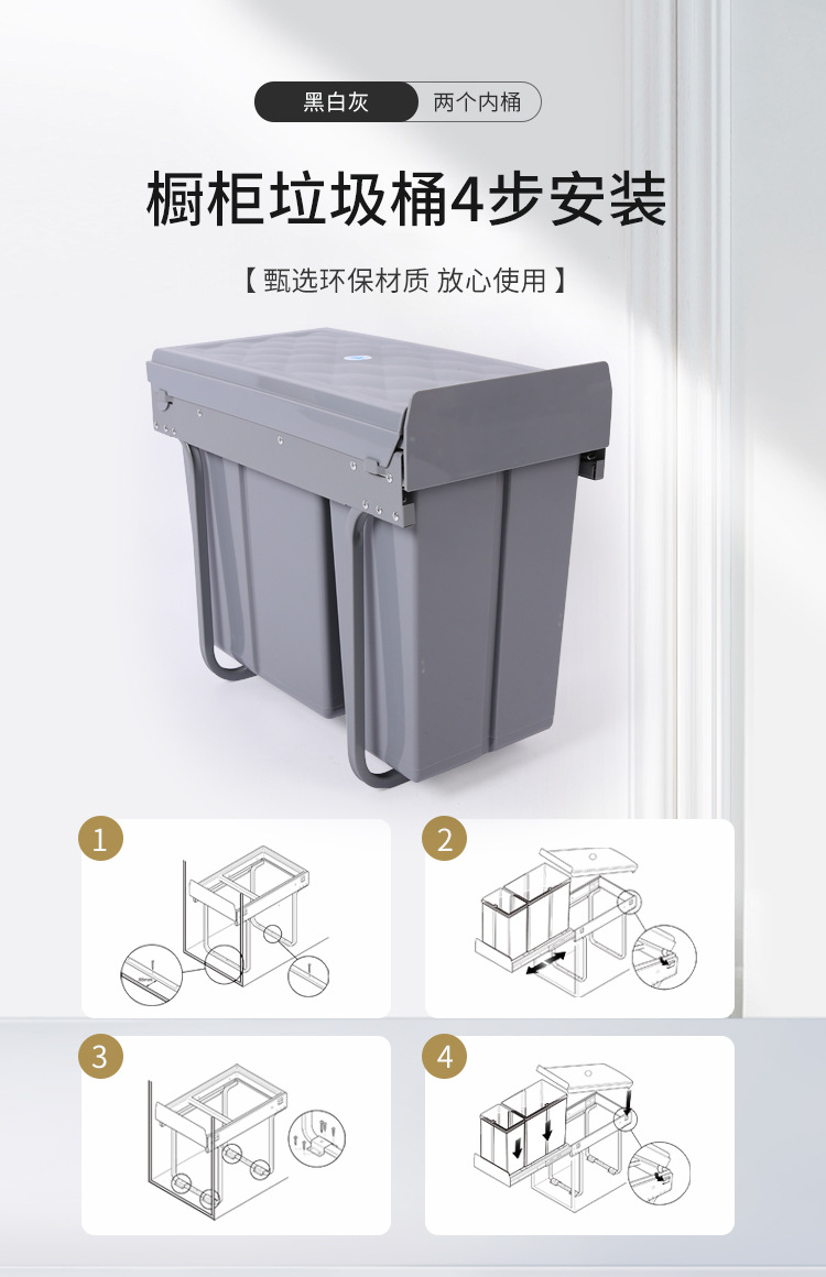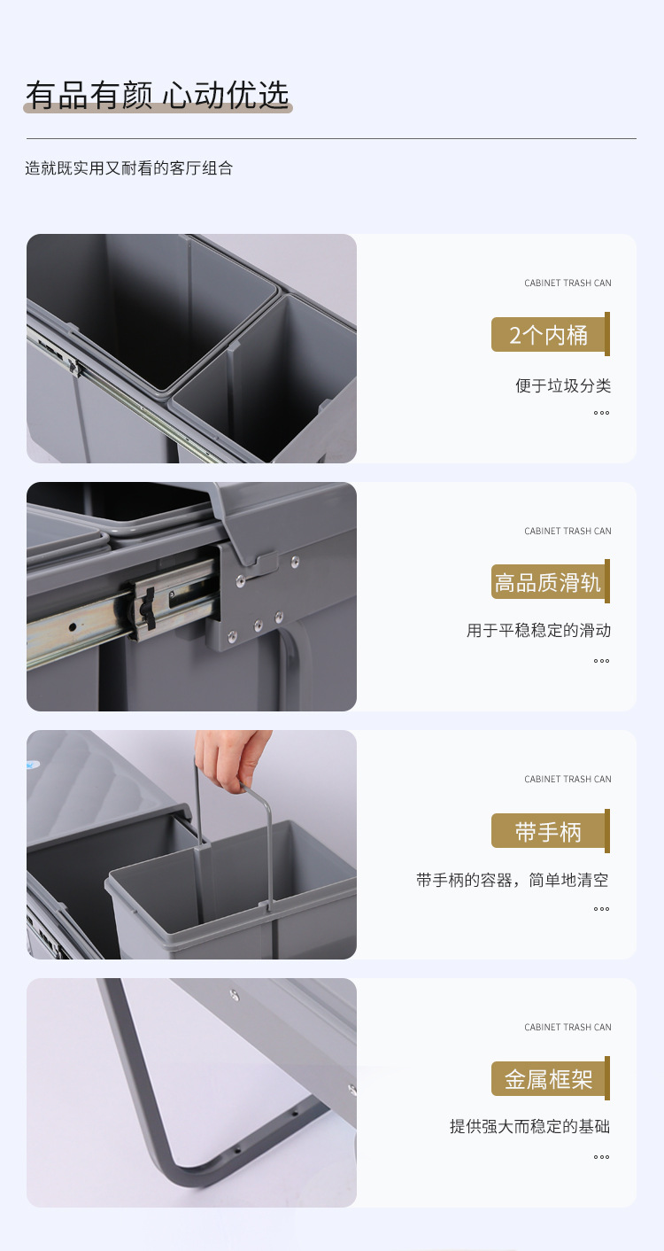 Gabinete empotrado bote de basura cocina clasificación oculta 10L 20L cubo de limpieza amortiguación extraíble con tapa