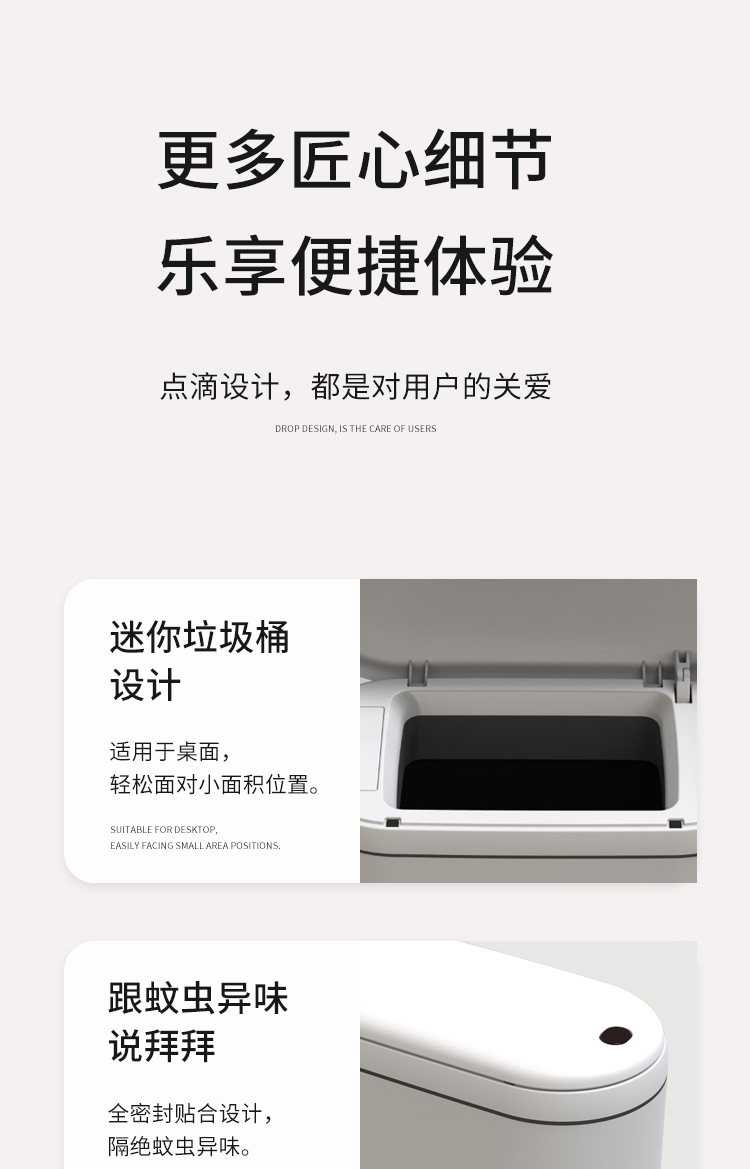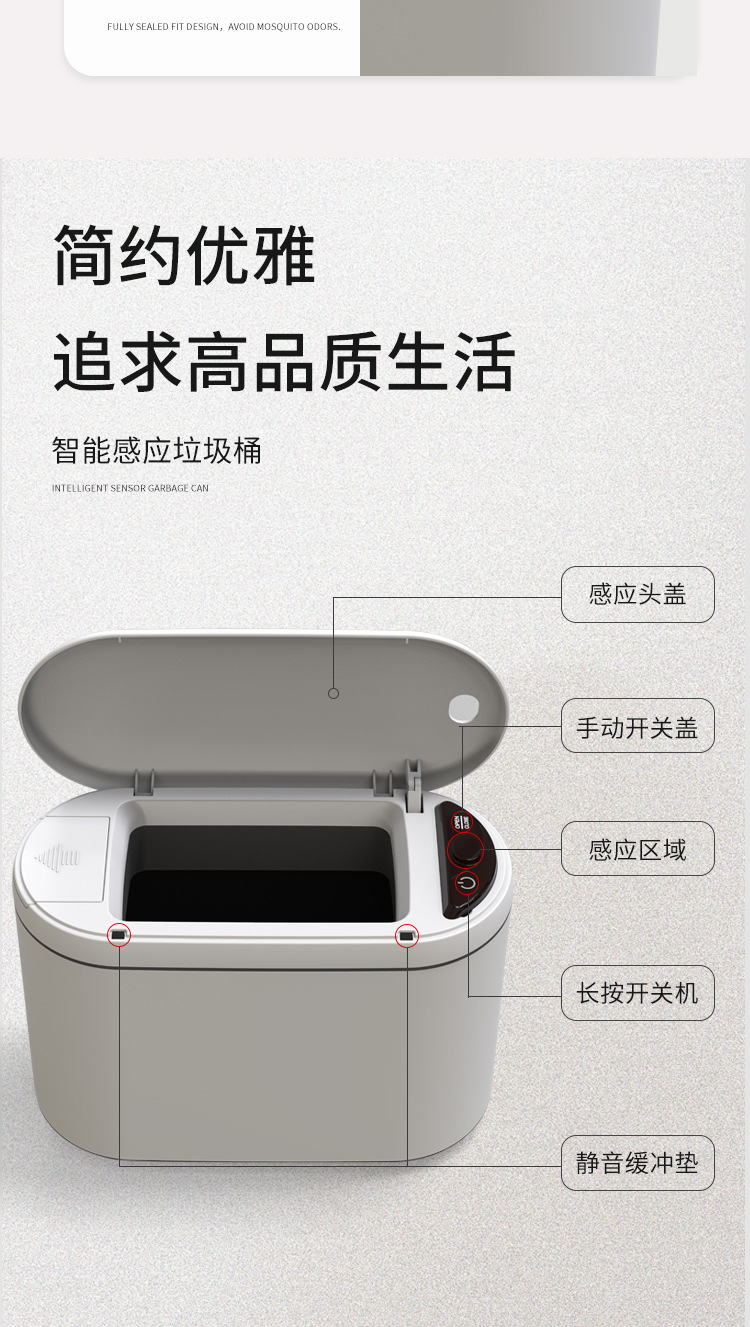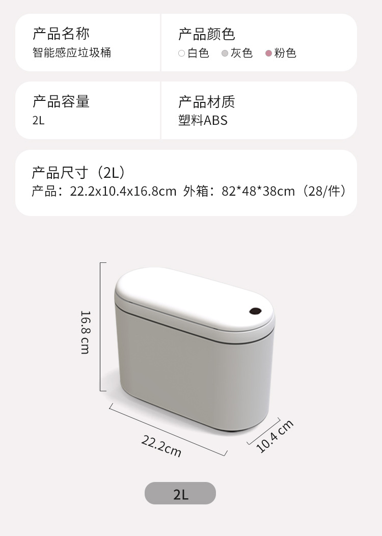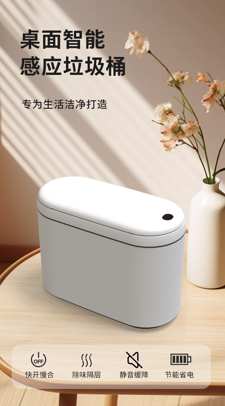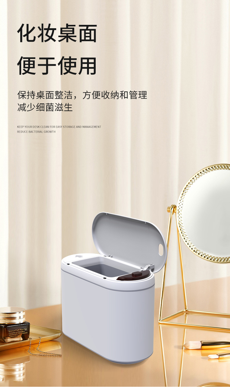 Bote de basura de escritorio inteligente 2L pequeño mini bote de basura de inducción tocador bote de basura de almacenamiento