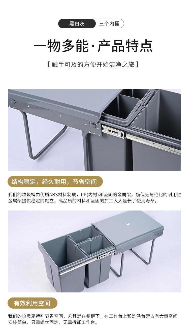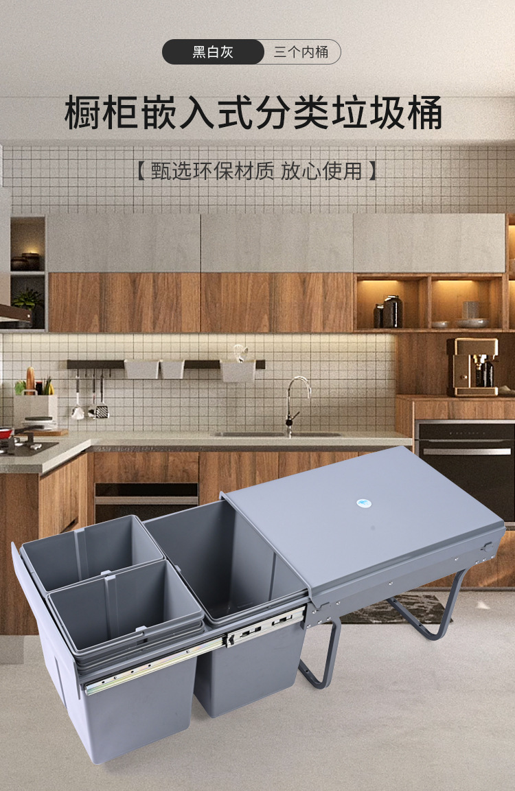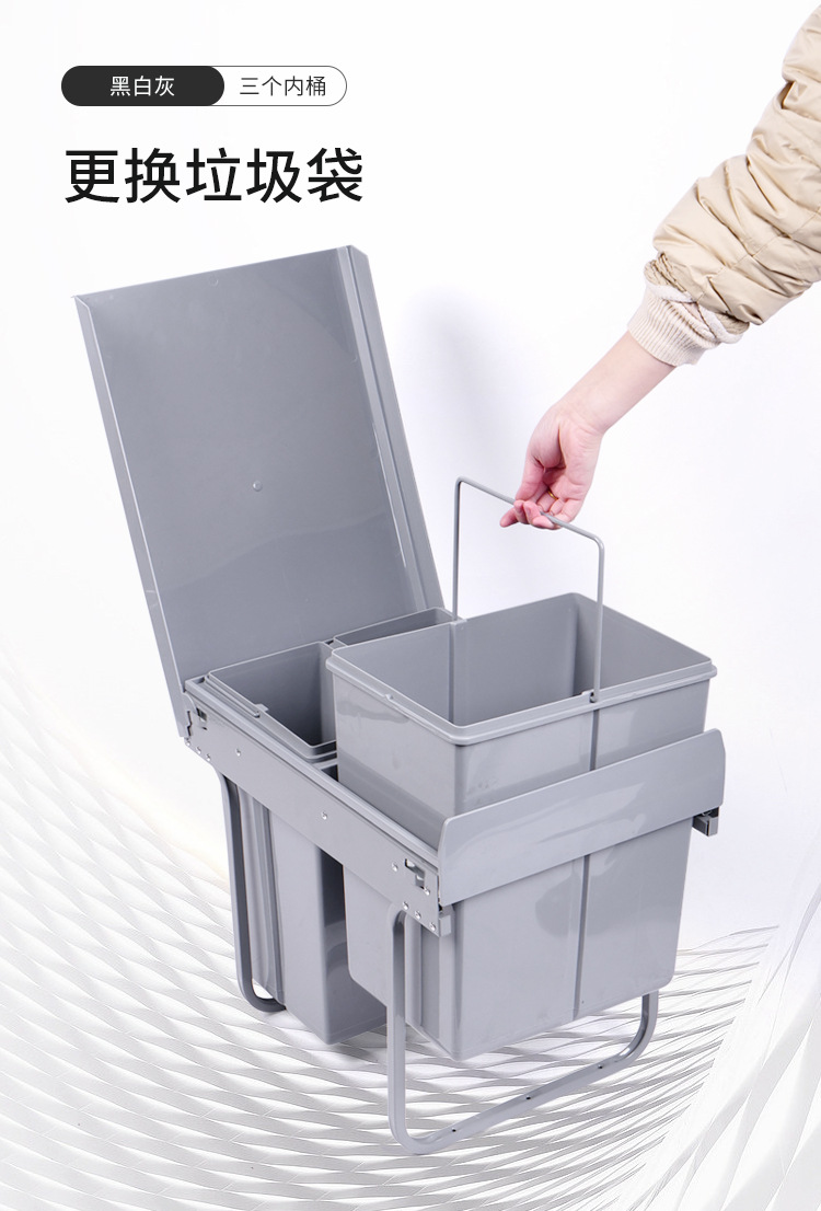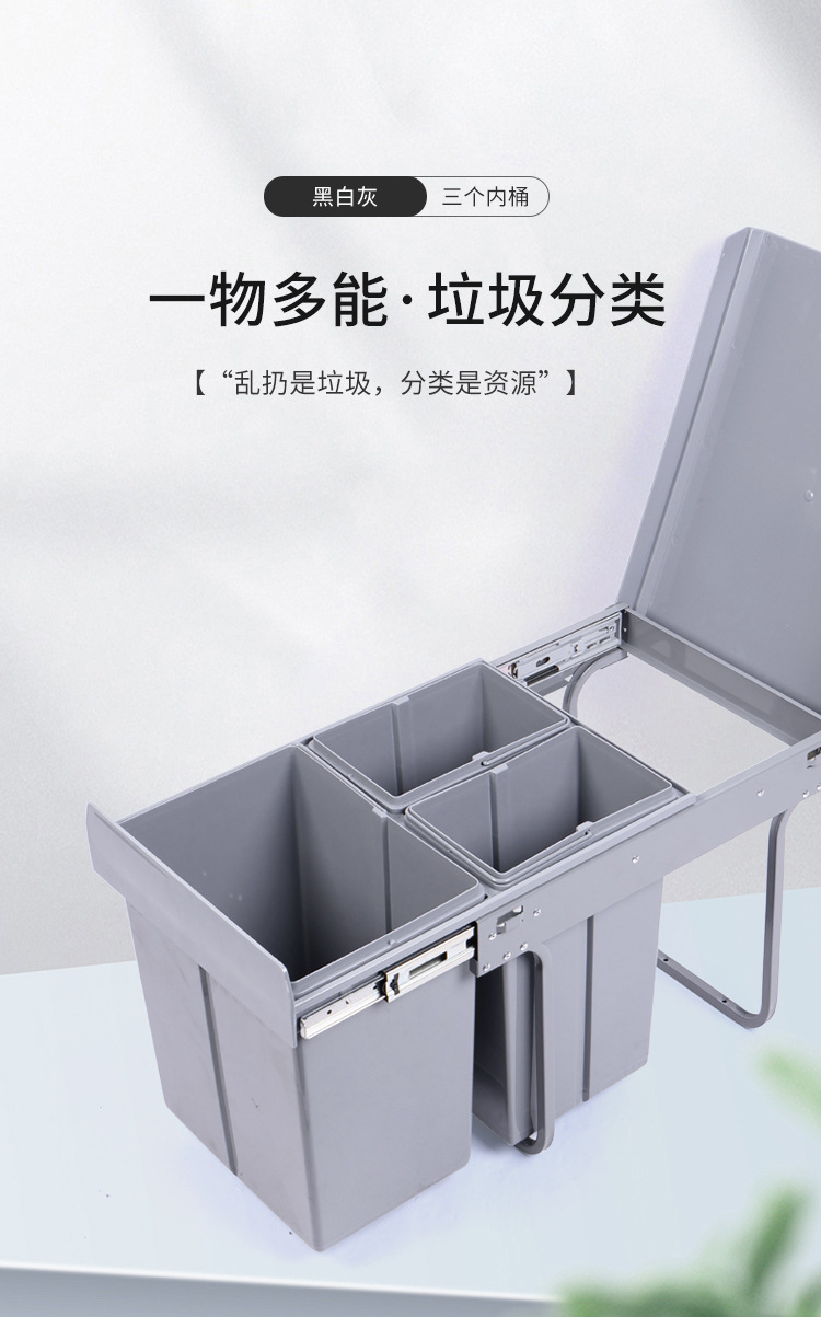 Almacenamiento invisible 400 gabinete de gabinete de extracción de clasificación 15L + 8L * 2 tres barriles de basura de plástico incrustados