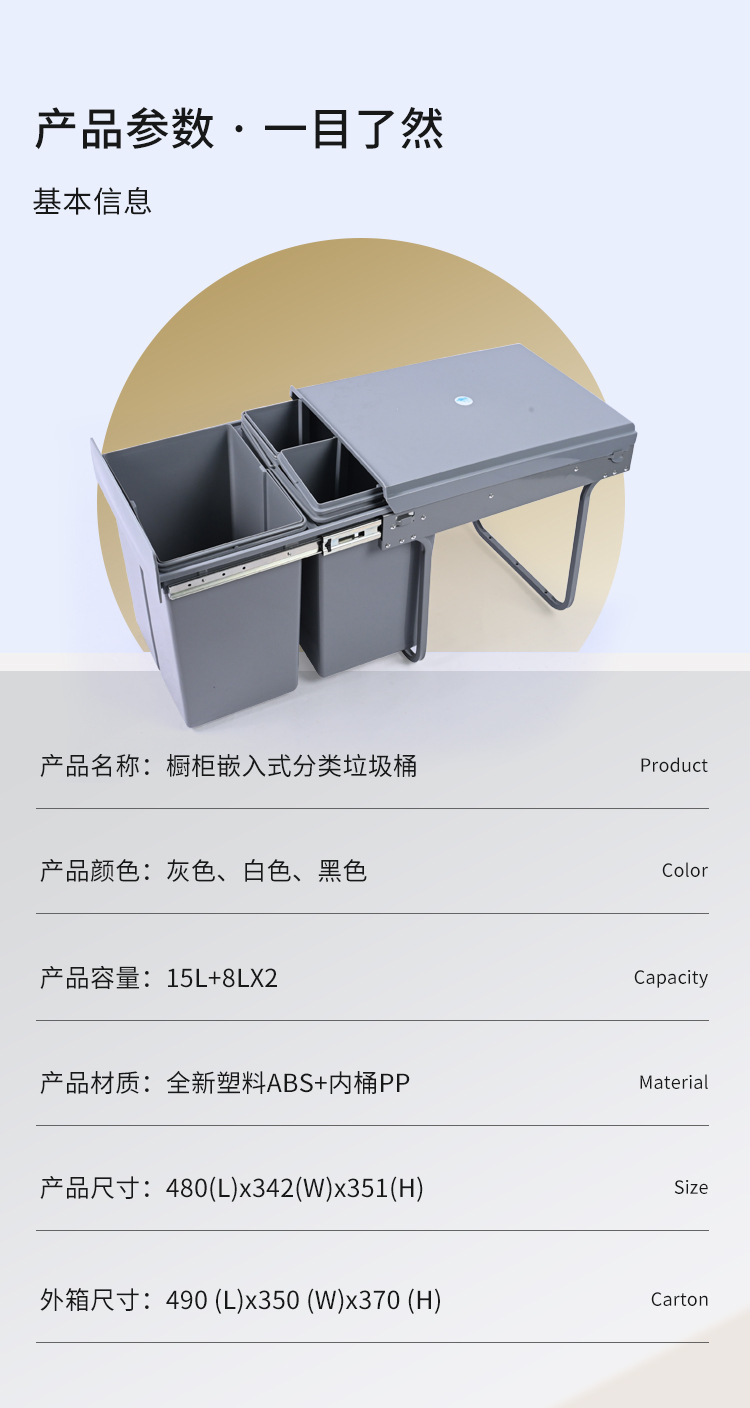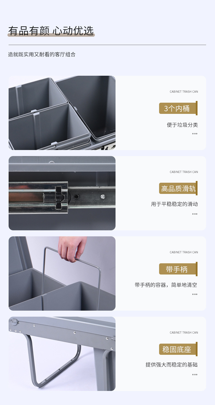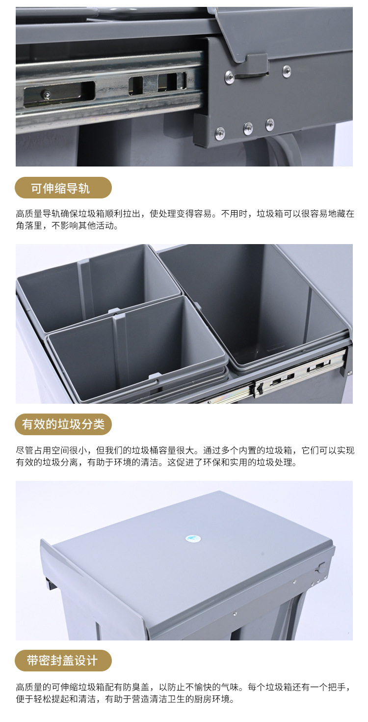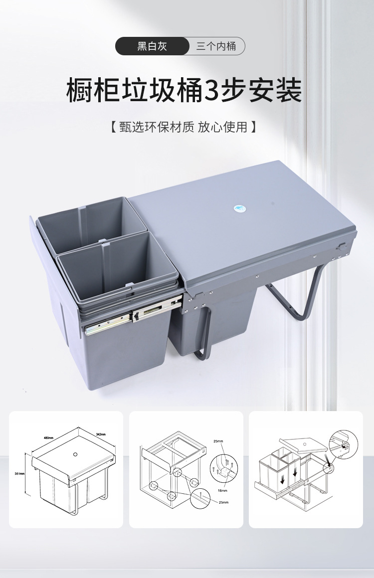 Almacenamiento invisible 400 gabinete de gabinete de extracción de clasificación 15L + 8L * 2 tres barriles de basura de plástico incrustados