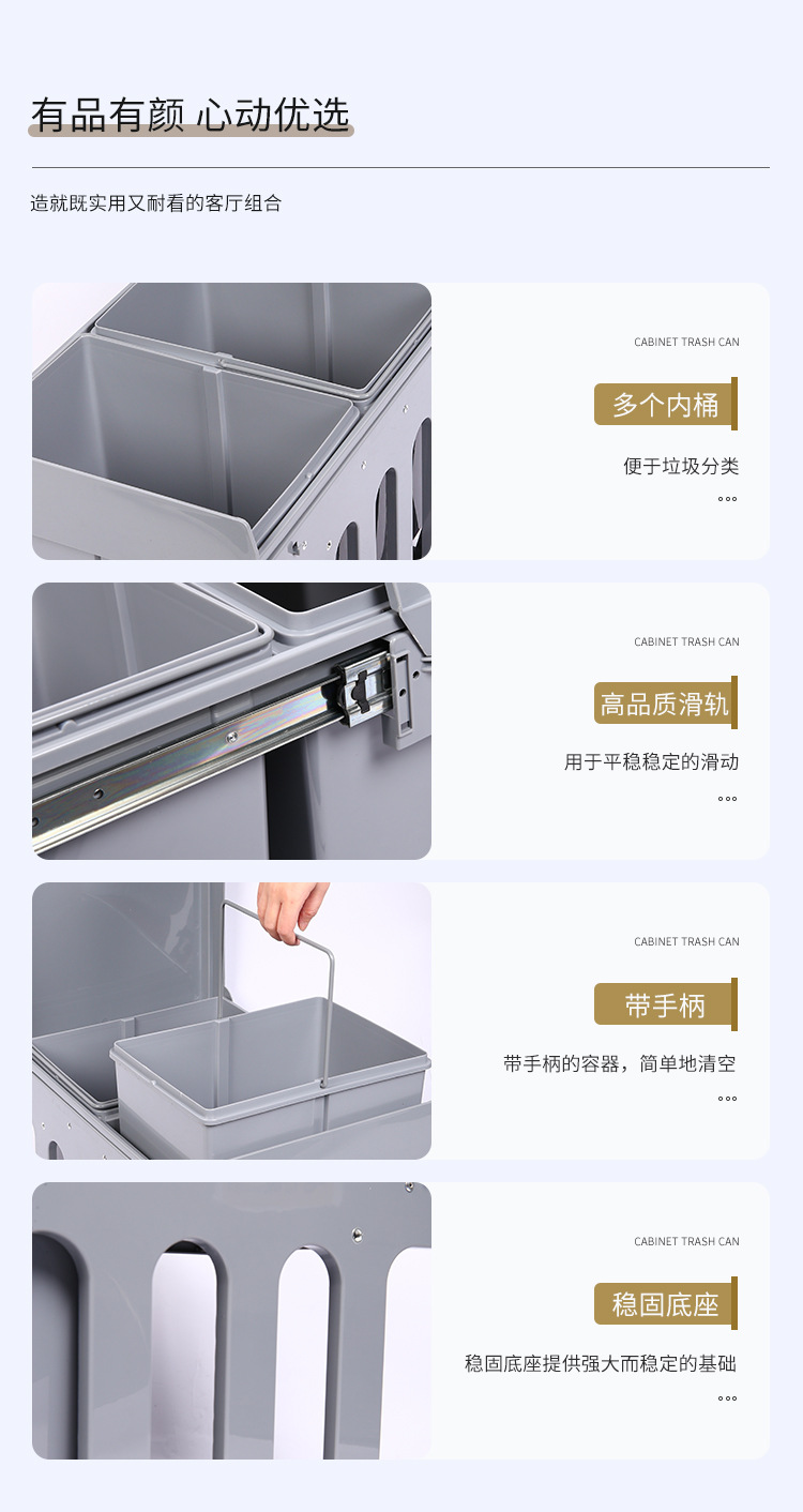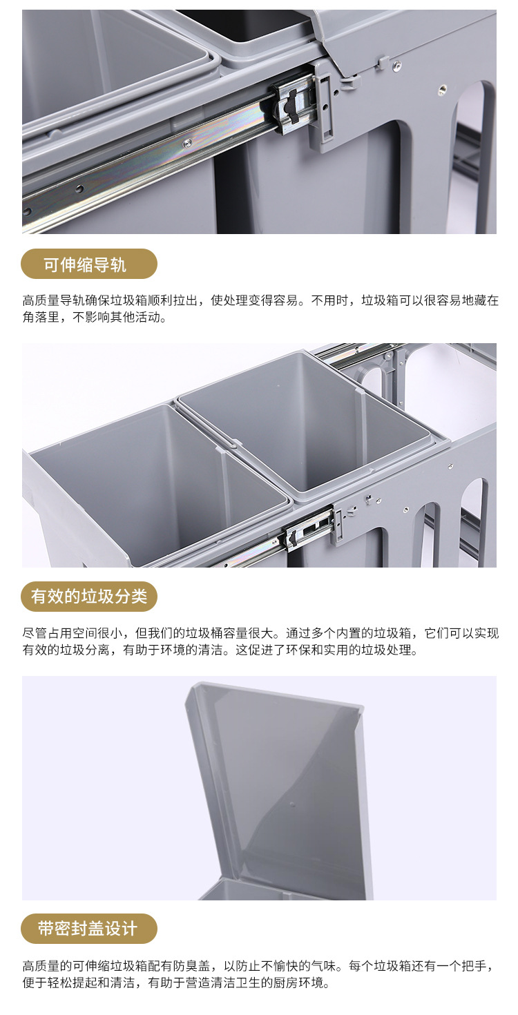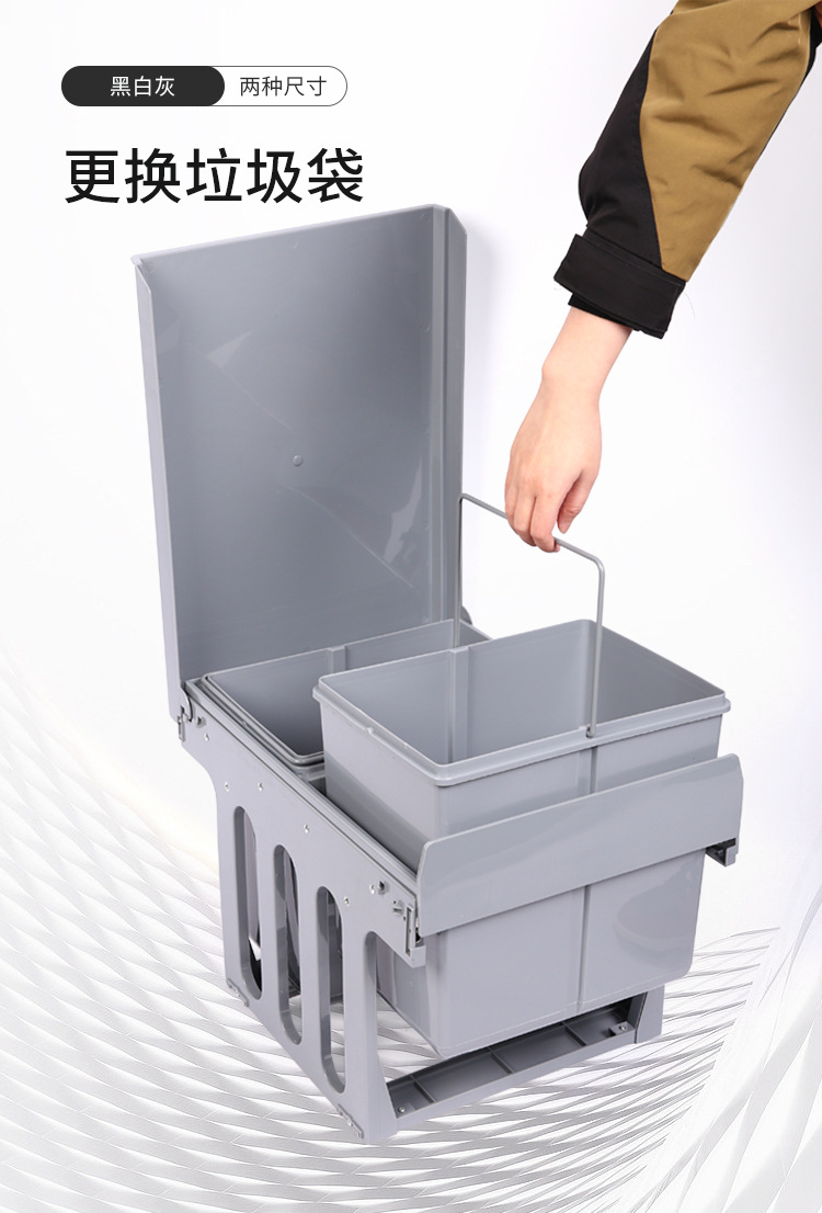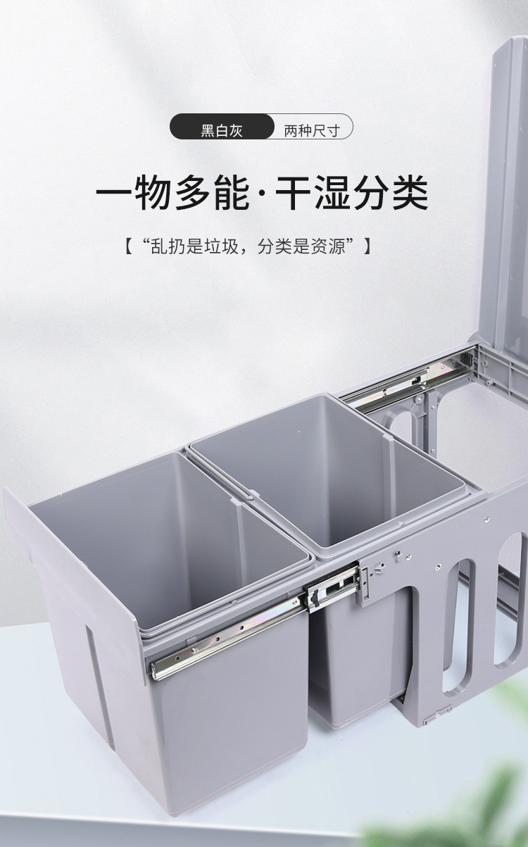 Cocina 400 gabinete de almacenamiento invisible gabinete de tipo extraíble clasificador de basura 15Lx2 incrustado en dos barriles tres barriles de plástico