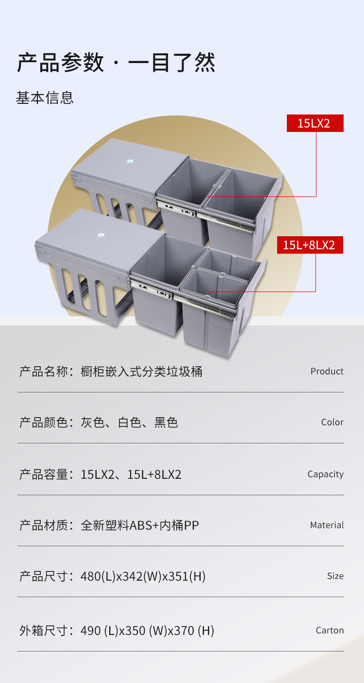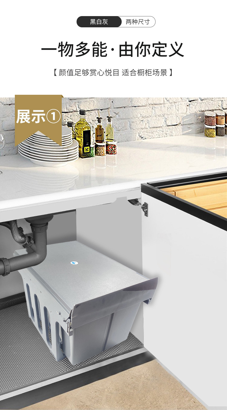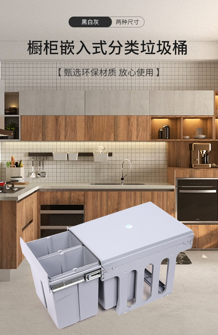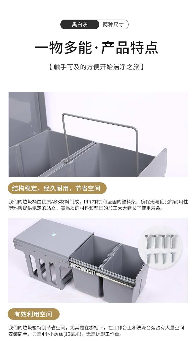 Cocina 400 gabinete de almacenamiento invisible gabinete de tipo extraíble clasificador de basura 15Lx2 incrustado en dos barriles tres barriles de plástico