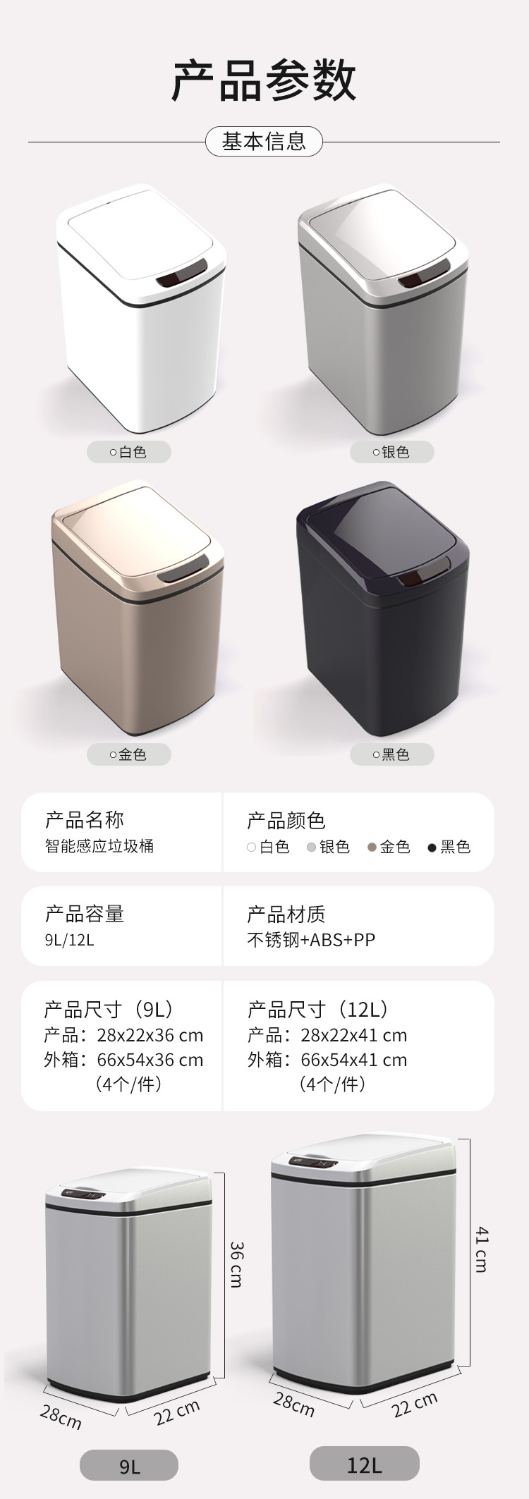 Cubo de basura con sensor inteligente de acero inoxidable 9L/12L, bote de basura automático por infrarrojos de pequeña capacidad para hogar