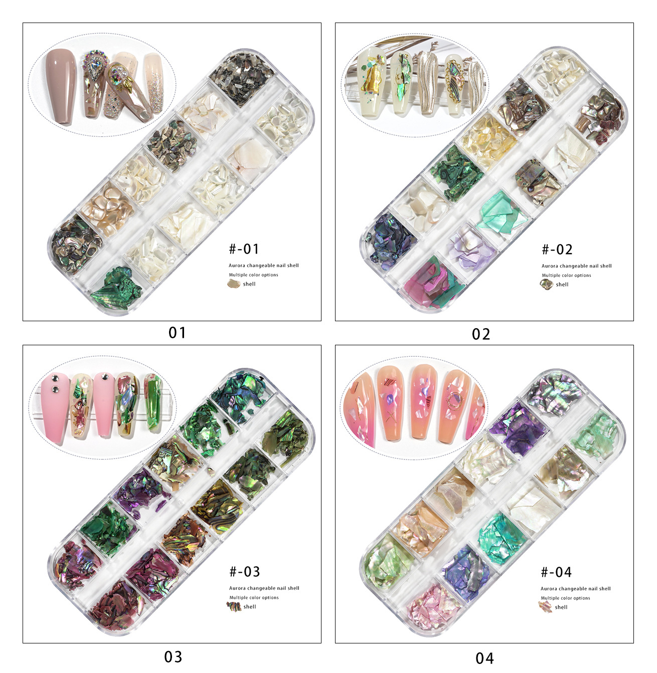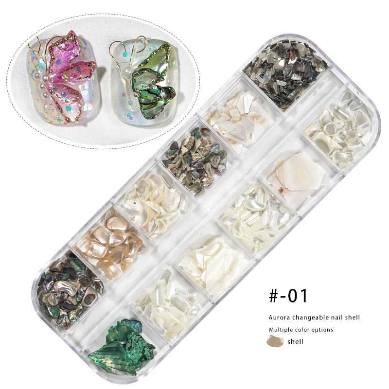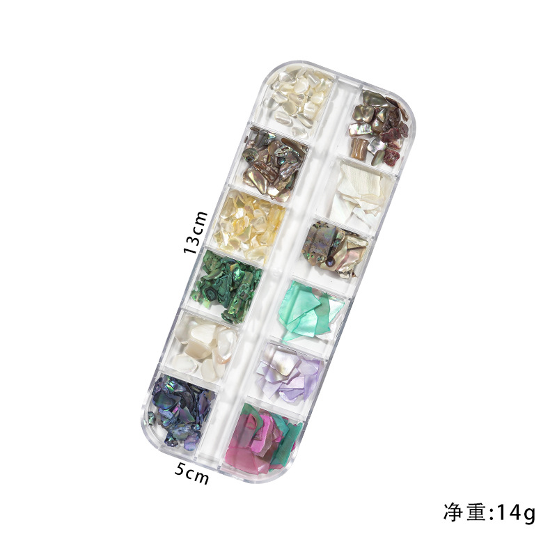 Nuevo fragmento de concha de uñas joyas 12-color mezclado pieza de concha de uñas color mágico Delgado fragmento irregular