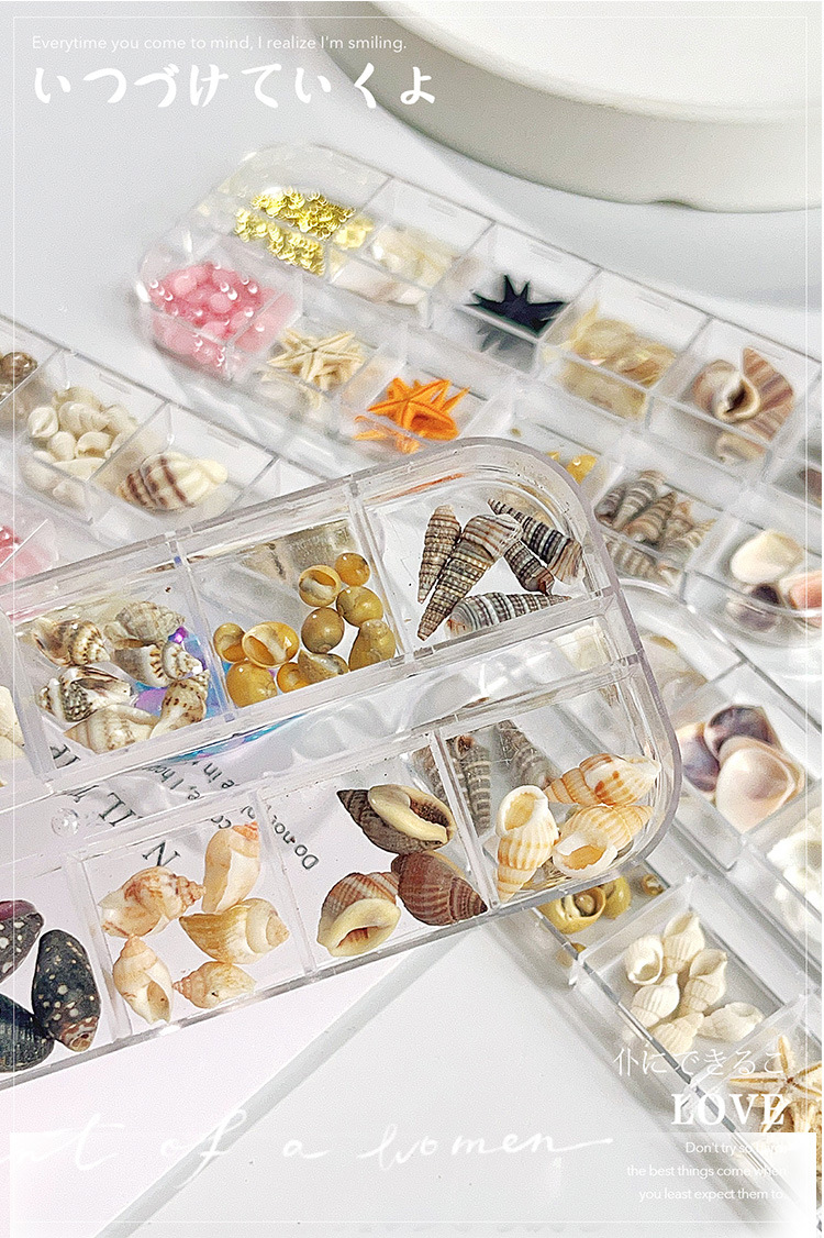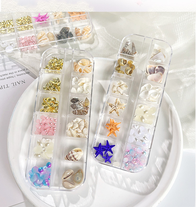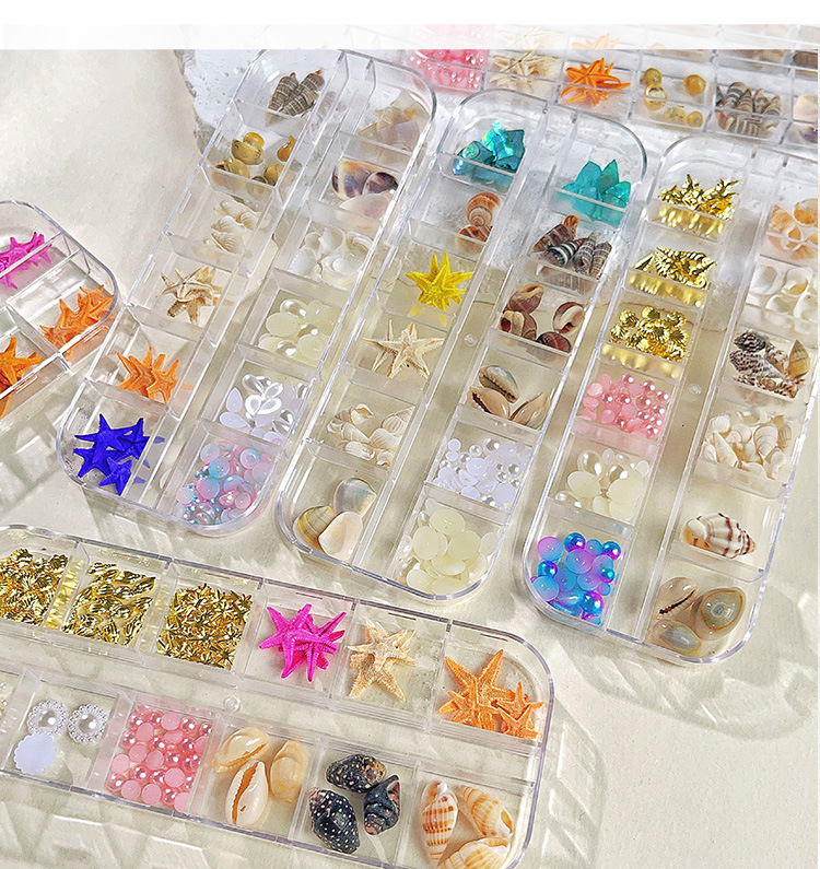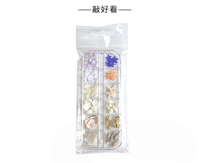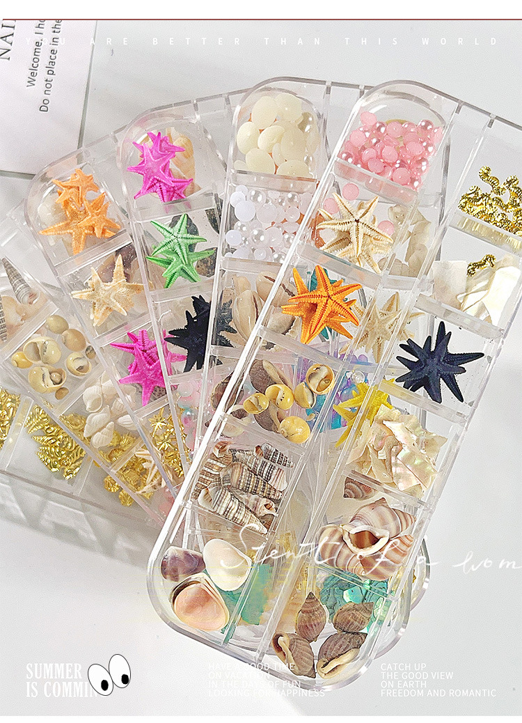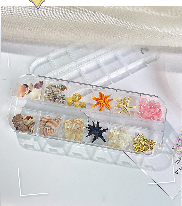 Venta caliente transfronteriza Tormenta marina joyería de uñas rebanadas de concha de estrella de mar natural rebanadas de abulón 12 rejilla mixta