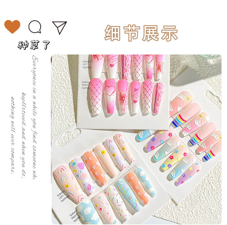 Nuevas uñas portátiles para adultos, uñas en relieve estéreo, parches de manicura, uñas postizas, uñas terminadas, uñas largas de ballet