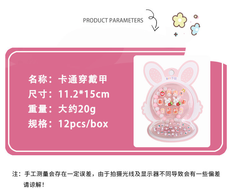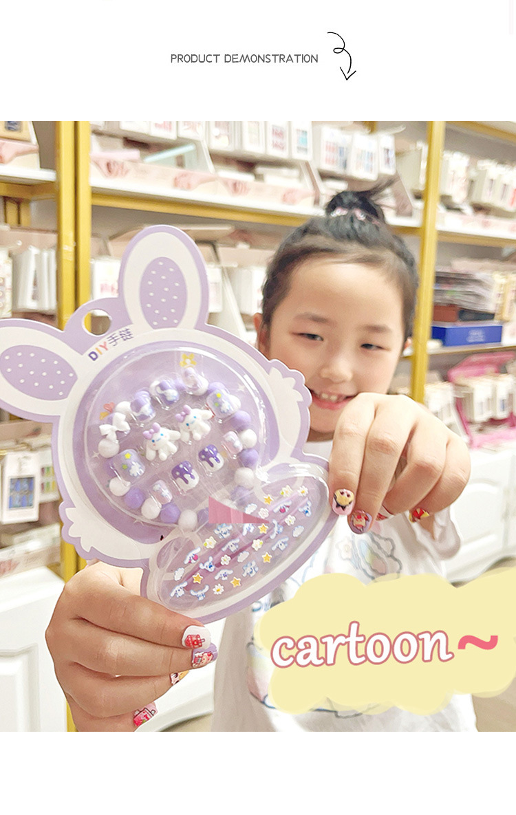 Caricatura encantadora conejo niño uña uña macarón pulsera pegatinas en relieve parche de niños para usar uña