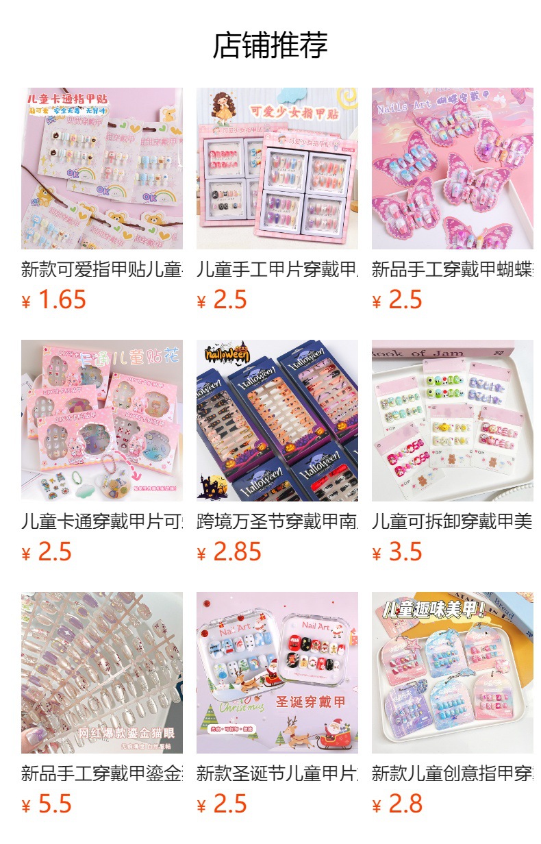 Niños lindos usando dibujos animados de uñas manicure piezas de uñas acabadas manicure piezas de uñas falsas dulces parches de uñas