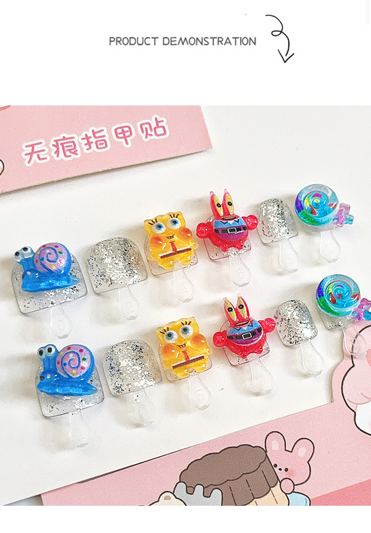 Nuevos productos hechos a mano para usar uñas para niños productos terminados lindos accesorios de banda de dibujos animados para usar uñas falsas