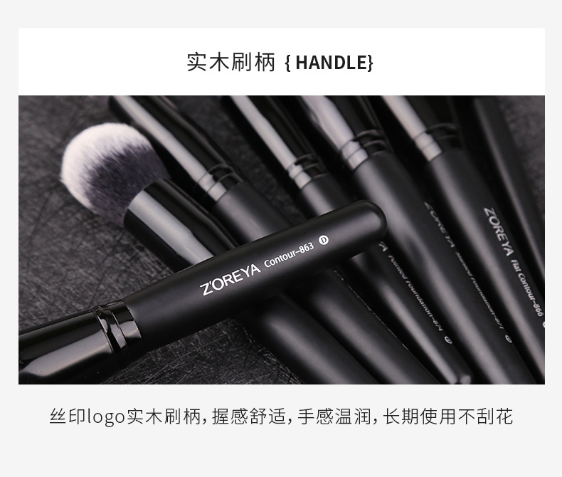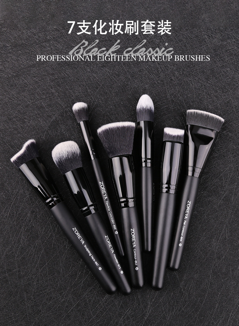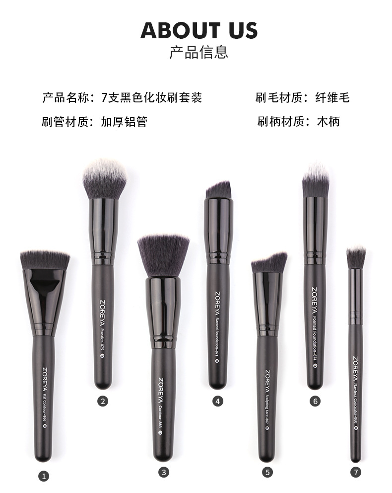 Zolya transfronteriza herramientas de maquillaje de belleza Fundación reparación blanqueamiento herramientas de belleza al por mayor mango de madera negro 7 piezas de maquillaje