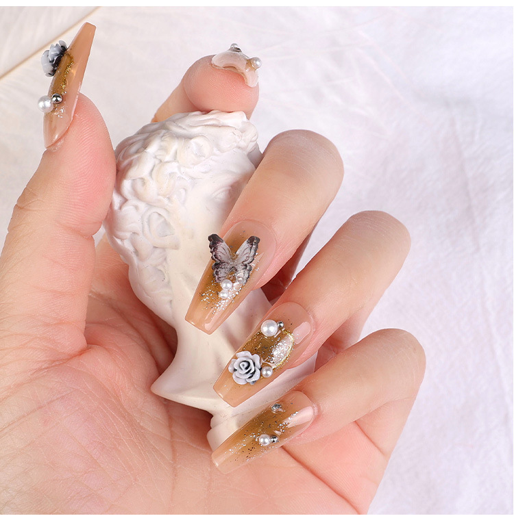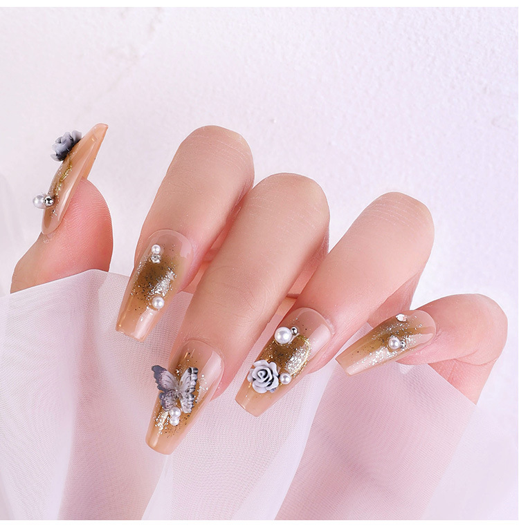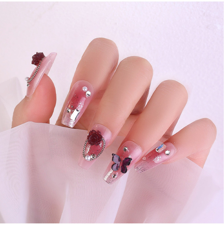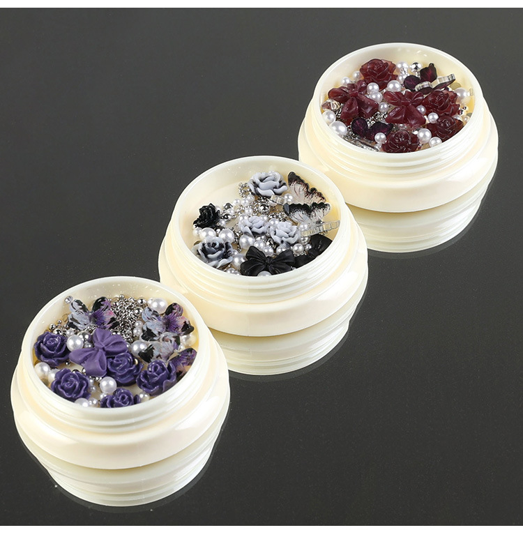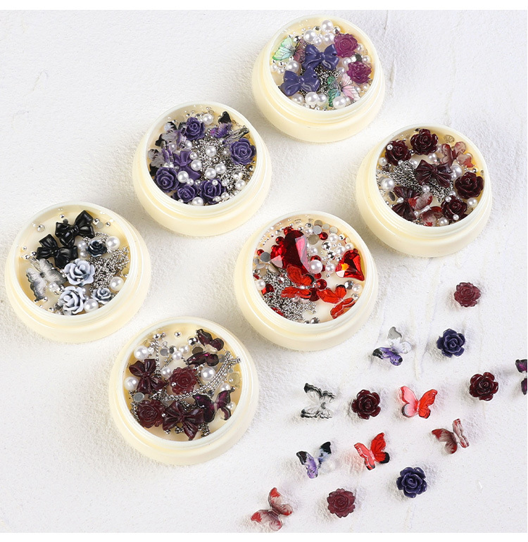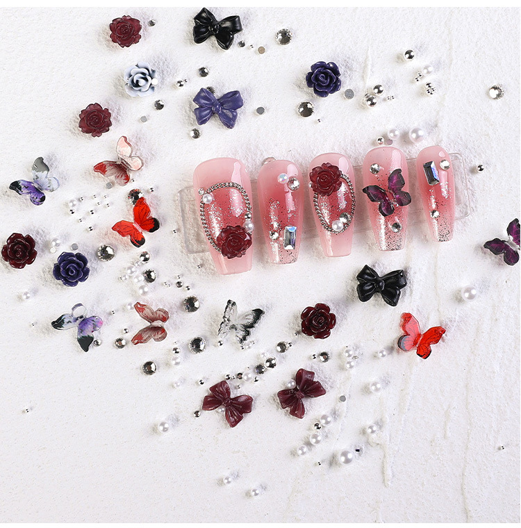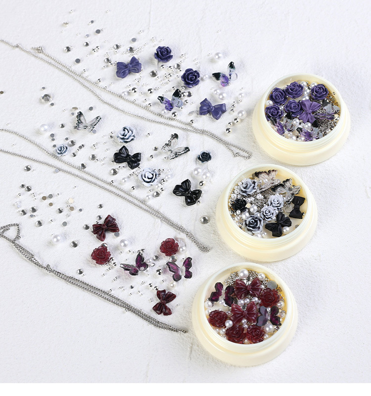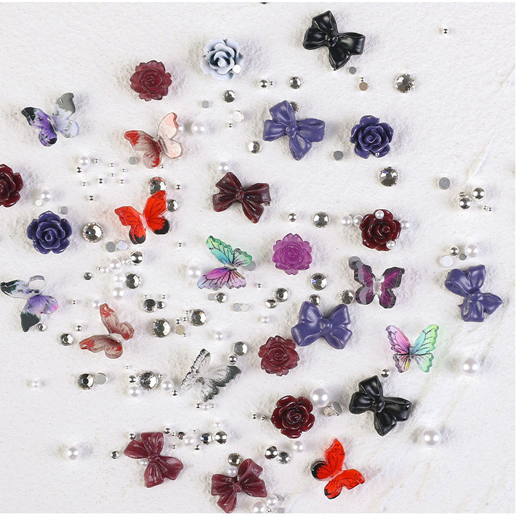 2023 nuevos accesorios de manicura camellia material paquete cadena de mariposa rosa arco mezcla combinación