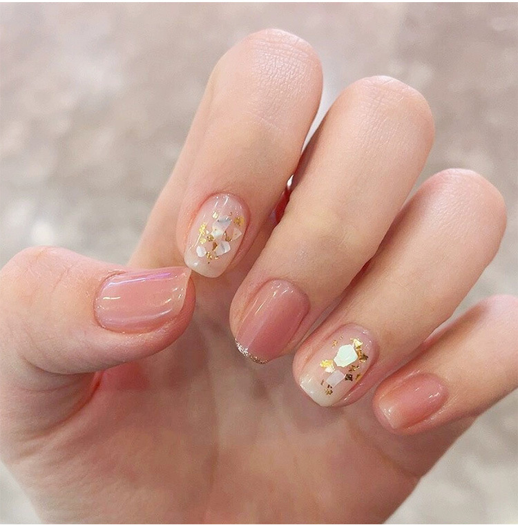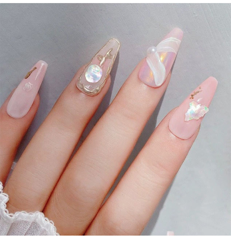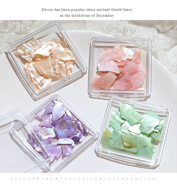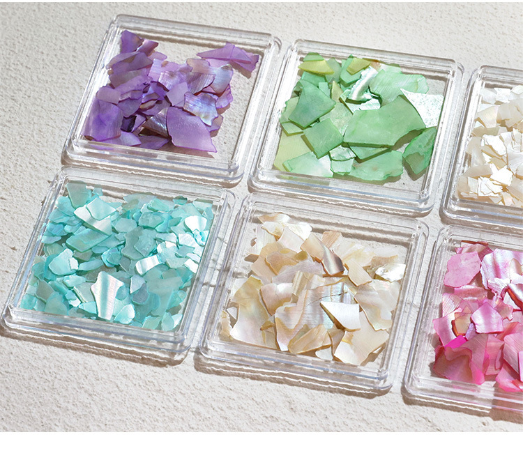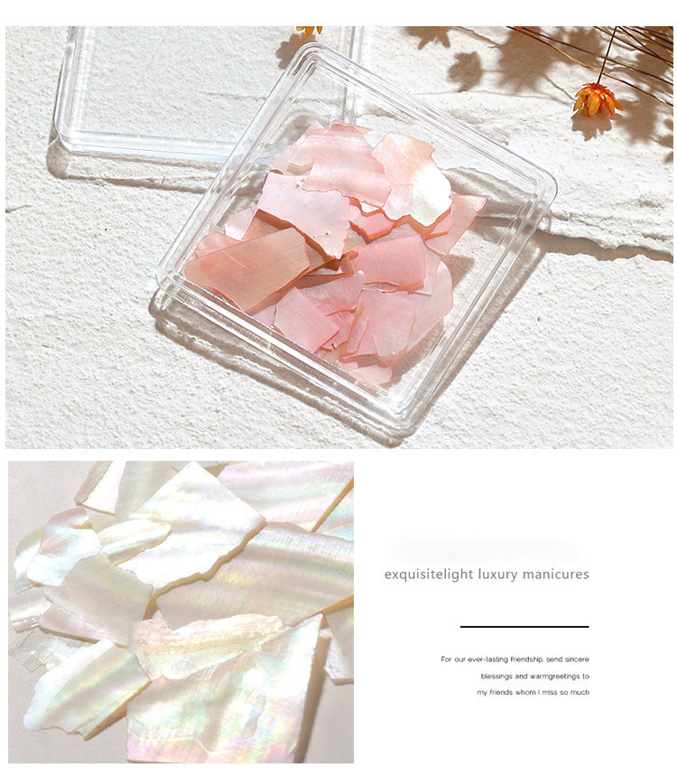 Manicuría irregular conchas de color fantasma rojo en línea con el mismo tipo de abalón natural ultra delgado fragmentos japoneses de decoración de uñas