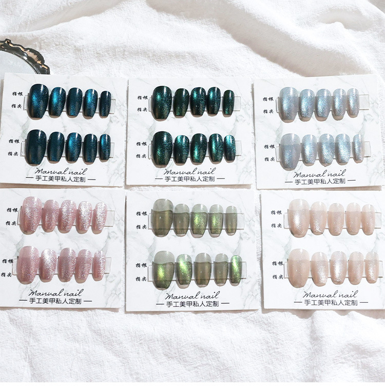 Colorido ojo de gato pieza de uñas persiguiendo luz hecho a mano desgaste uñas parche de uñas desmontable parche de uñas desgaste de uñas al por mayor