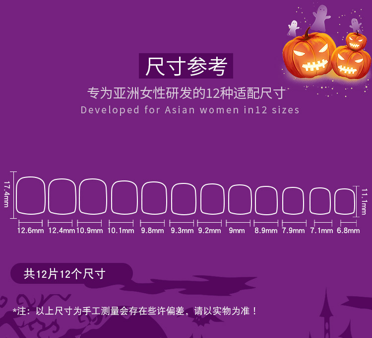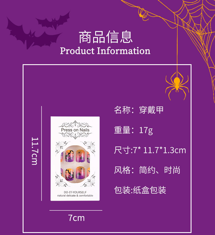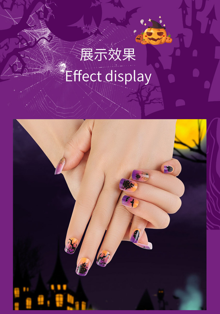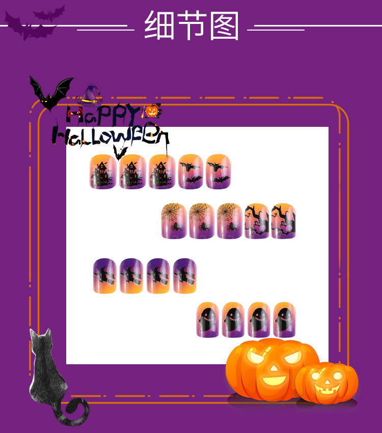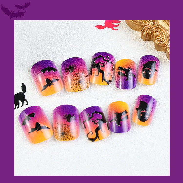 Uñas parche desgaste uñas UÑAS DE Halloween púrpura francés borde negro fantasma murciélago telaraña desgaste manicura de uñas