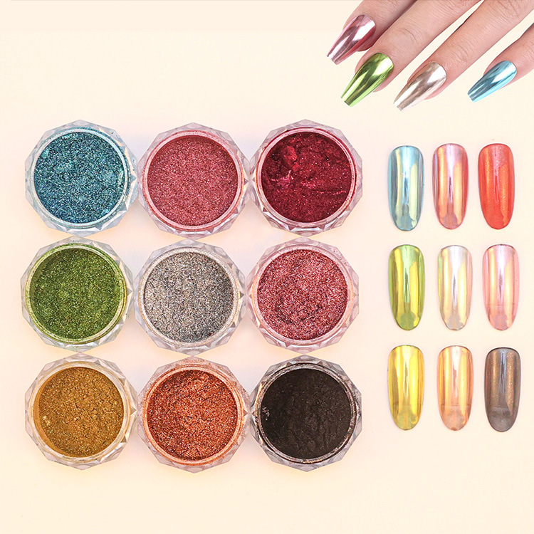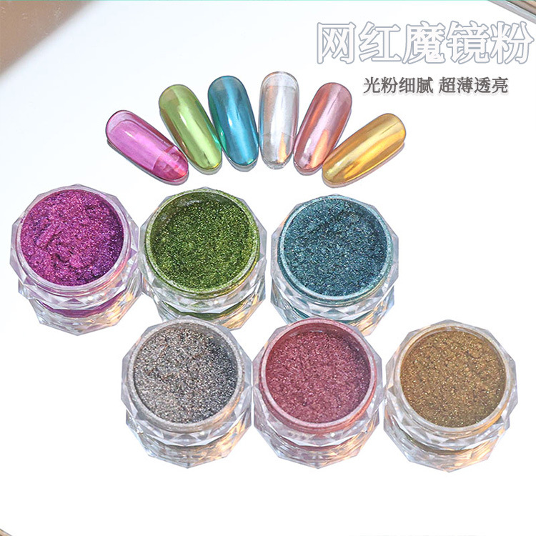 2023 manicuría en línea explosión sólido espejo mágico polvo oro y plata manicuría especial pegamento de esmalte de uñas gancho polvo espejo borde