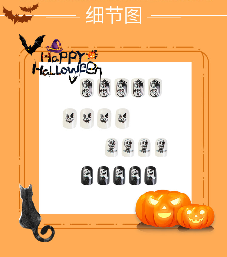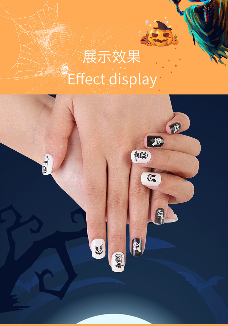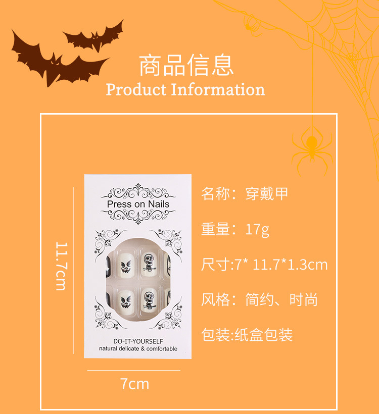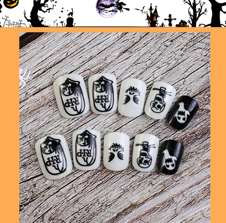 Use uñas al por mayor Halloween esmalte manicure fantasma blanco calavera de diamante ondulado manicure pieza de manicure productos terminados