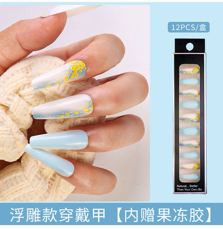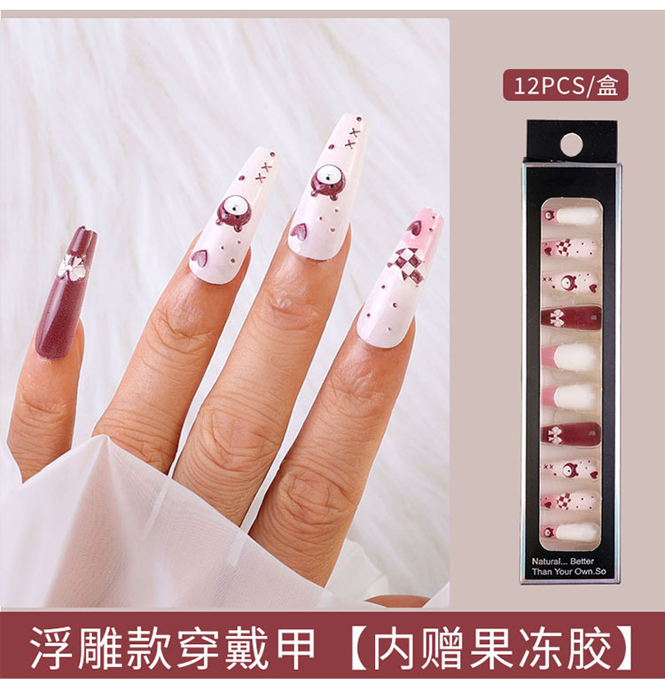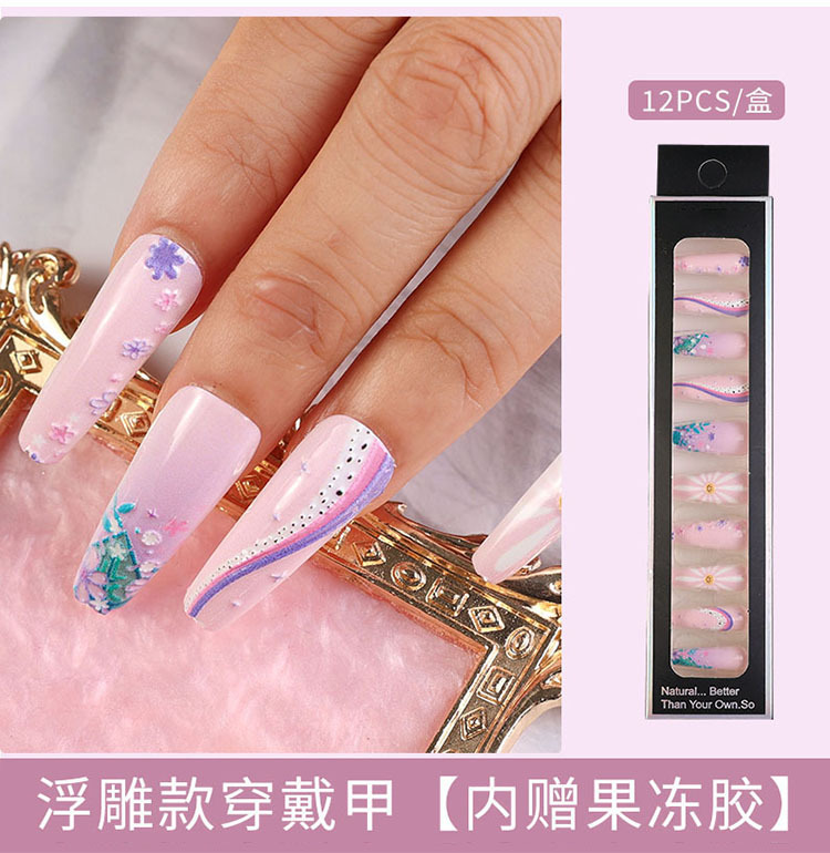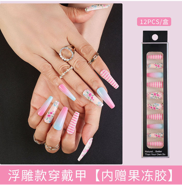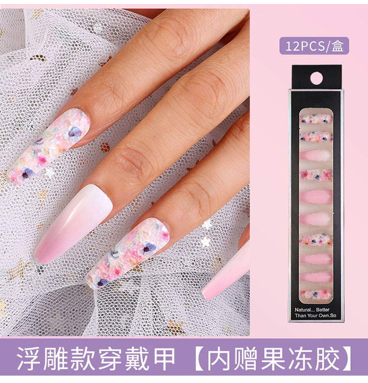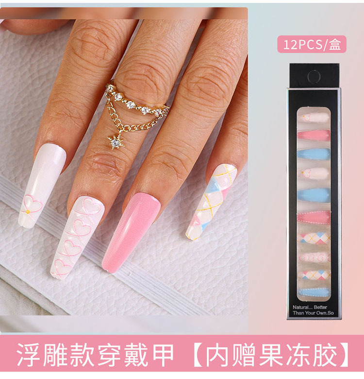 Uñas largas desmontables parches de uñas falsas comercio exterior productos terminados de manicure de novia en relieve parches de uñas