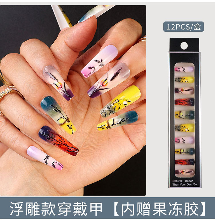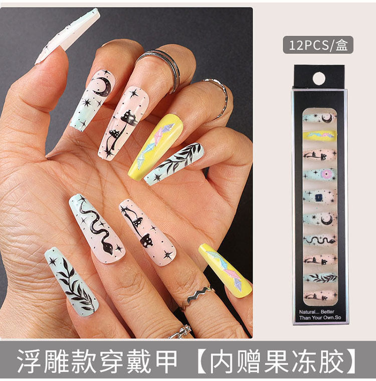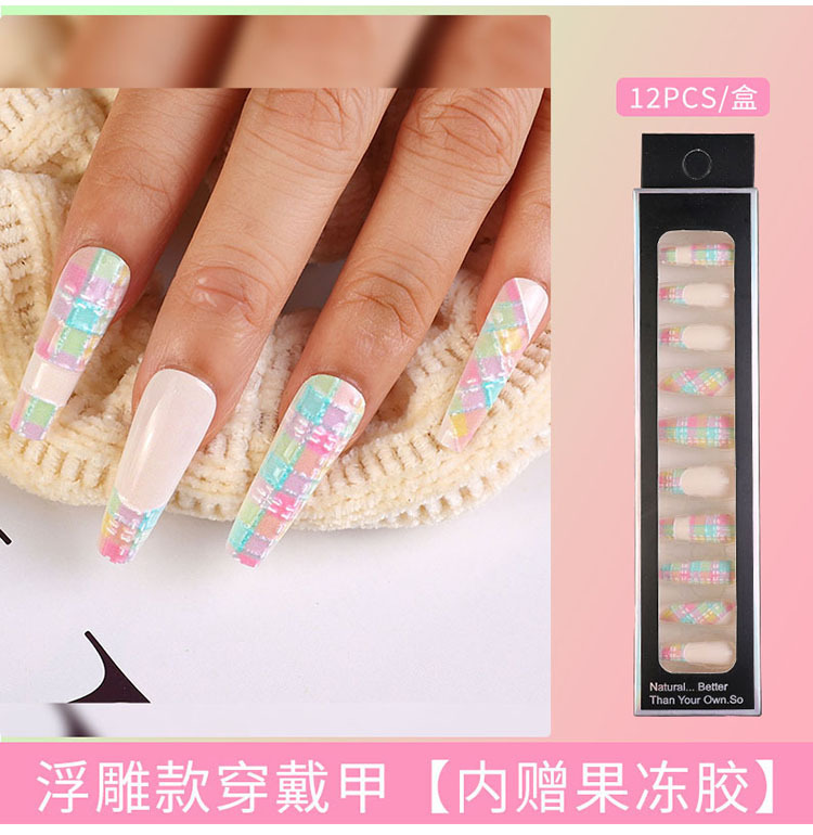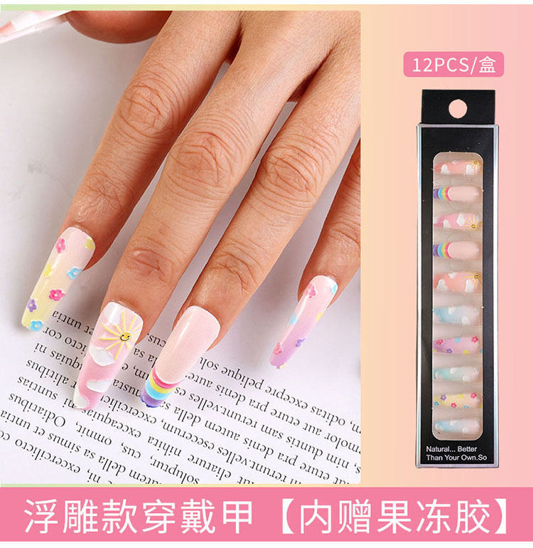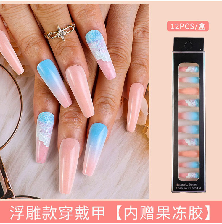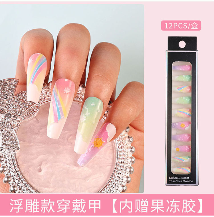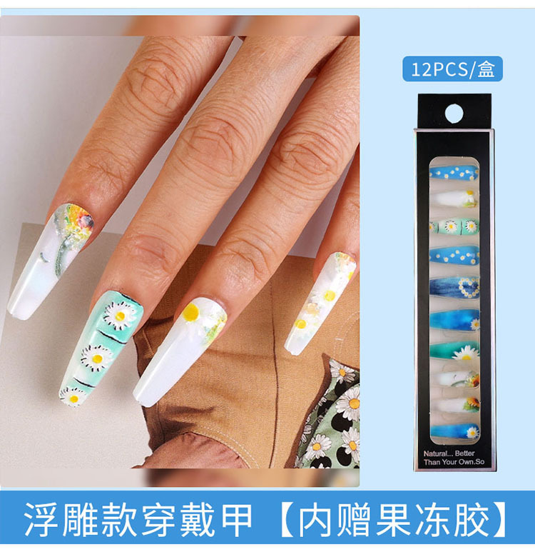Uñas largas desmontables parches de uñas falsas comercio exterior productos terminados de manicure de novia en relieve parches de uñas