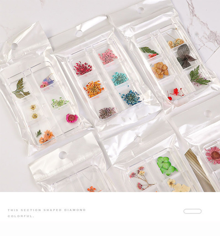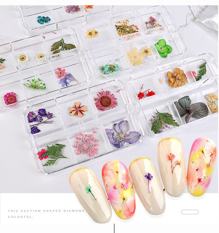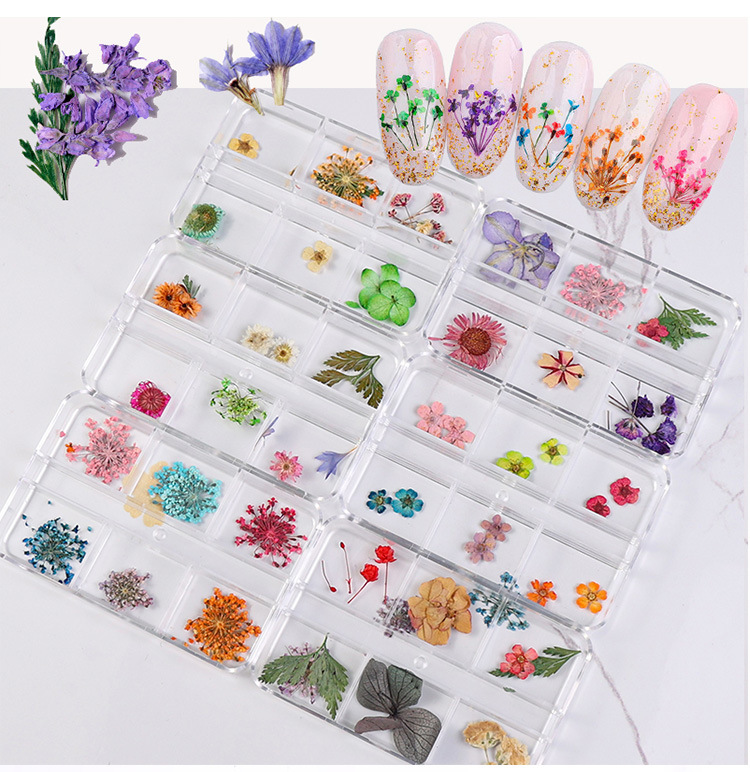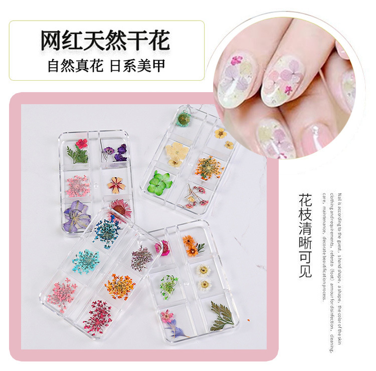 Uña flor seca japonesa pequeña fresca estrella de sol mixta flor real flor pequeña flor de manicura caja de flores secas manicura