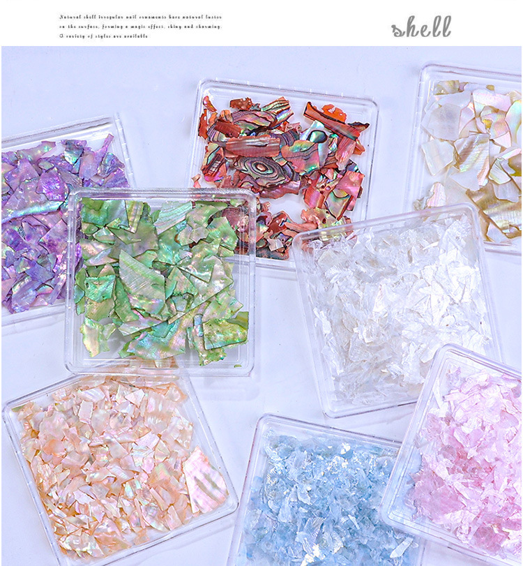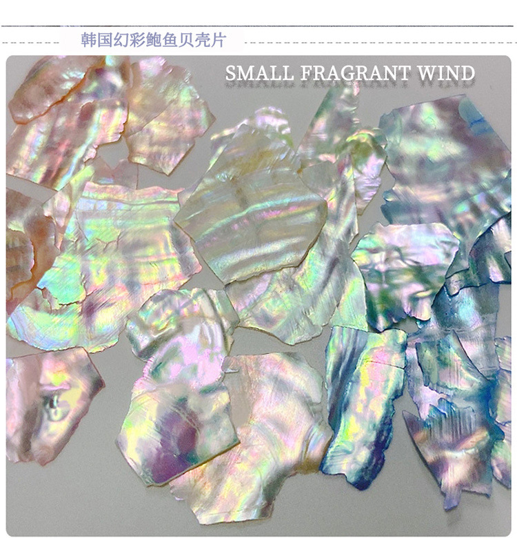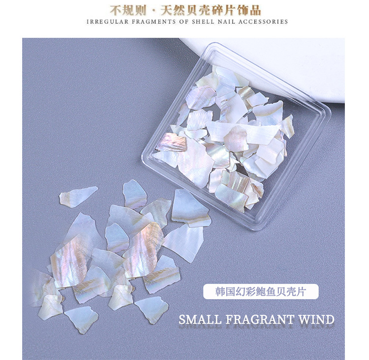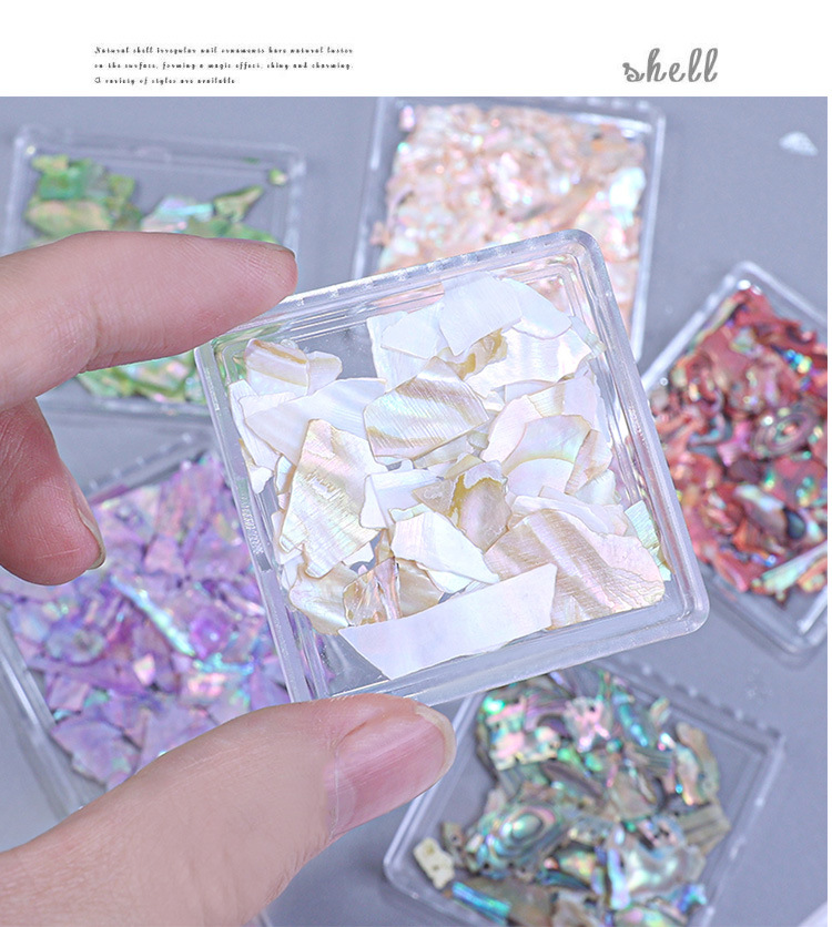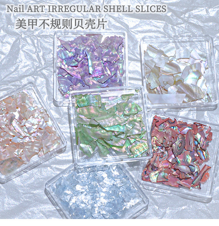 Decoraciones para uñas, piezas de concha de abulón iridiscente, decoraciones en caja, venta al por mayor, fragmentos de concha ultrafinos irregulares, decoración para uñas DIY