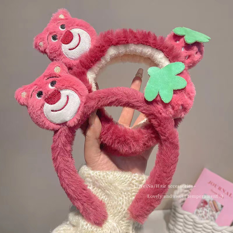 Dibujos Animados fresa oso diadema para las mujeres 2023 nuevo estilo cara lavado maquillaje especial diadema lindo felpa pelo banda diadema