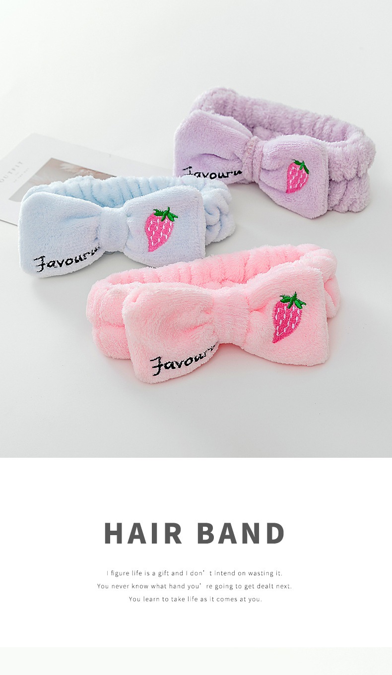 [Pequeña venta al por mayor] lavado de cara máscara de maquillaje de todo fósforo Linda fresa bordado arco banda de pelo