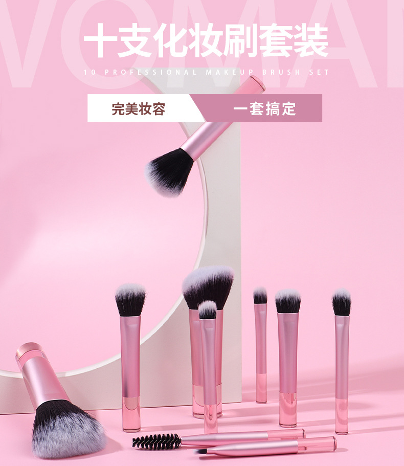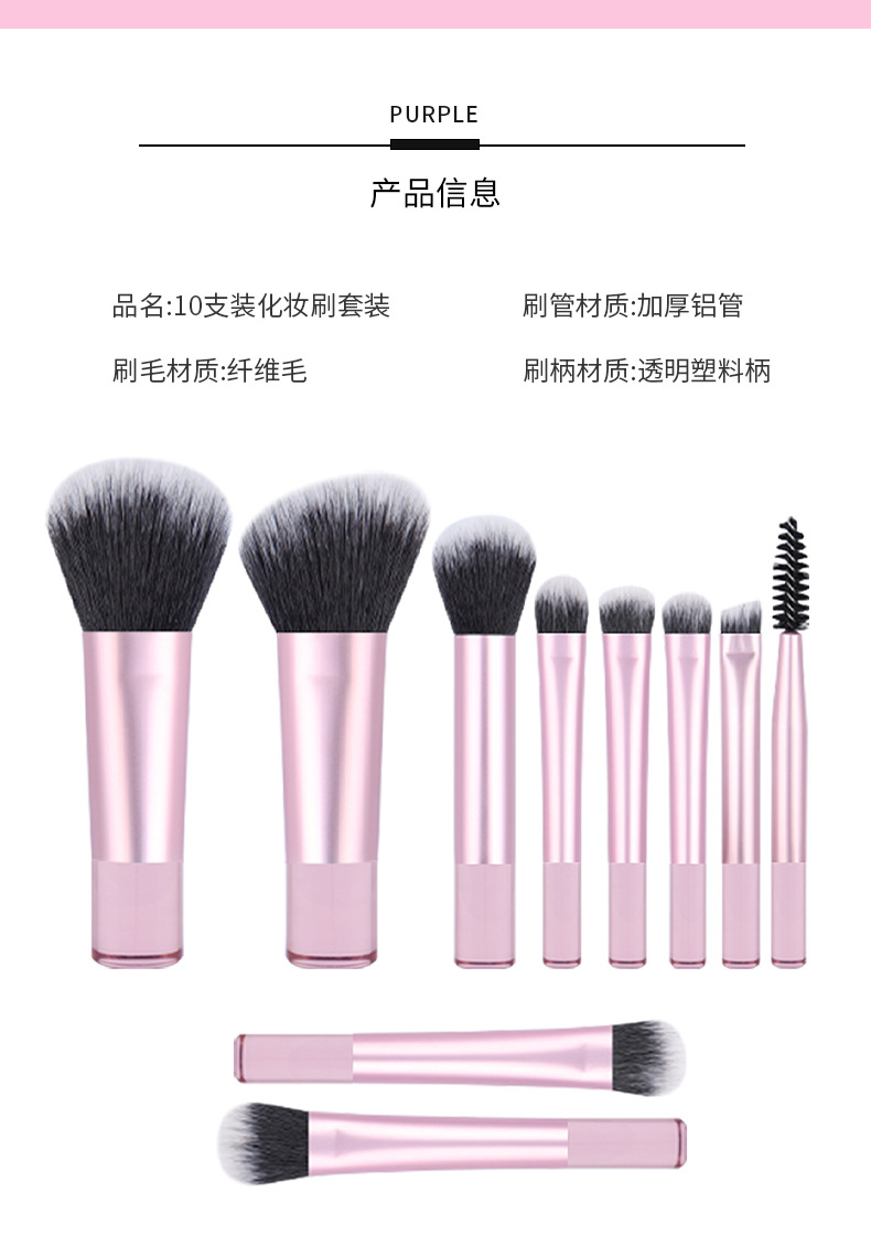 Transfronterizo 10 mini cepillo de maquillaje conjunto de mango transparente de barra corta cepillo de pintura portátil a granel cepillo de mejora personalizado cepillo de blush