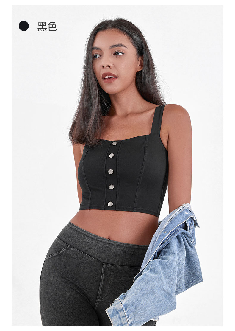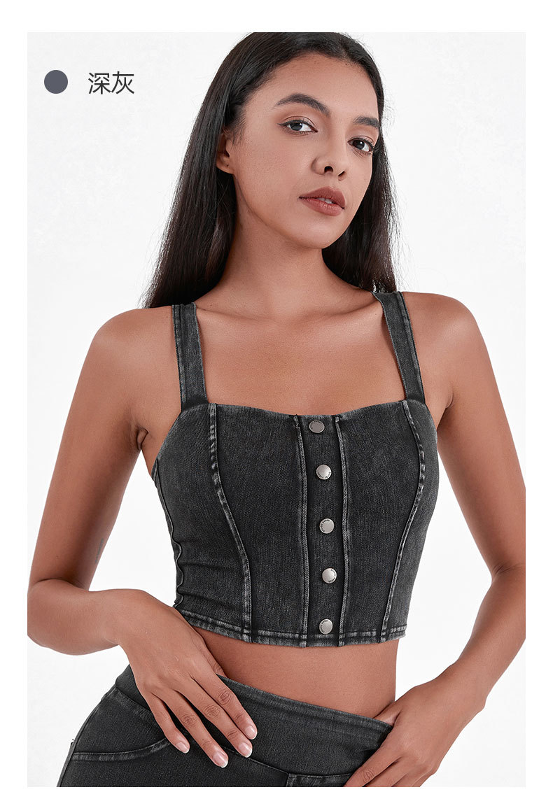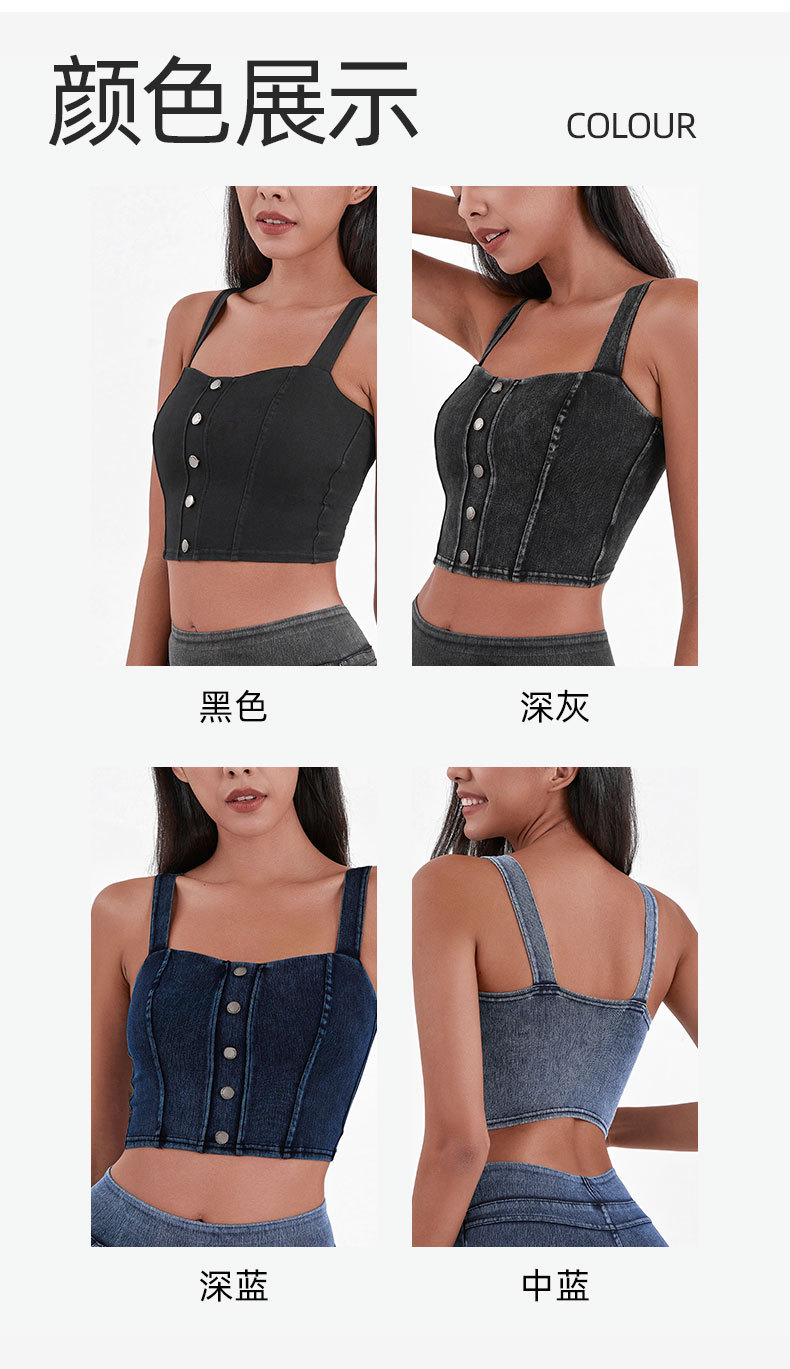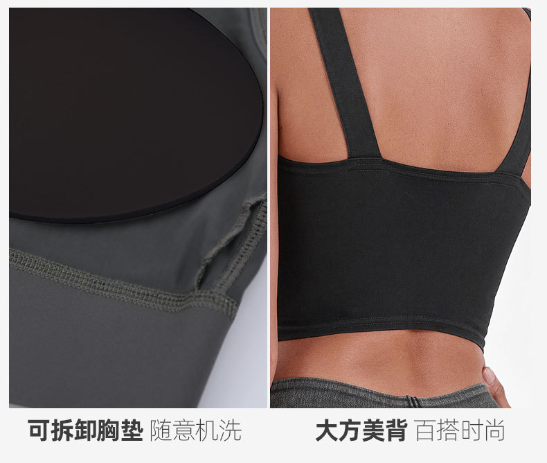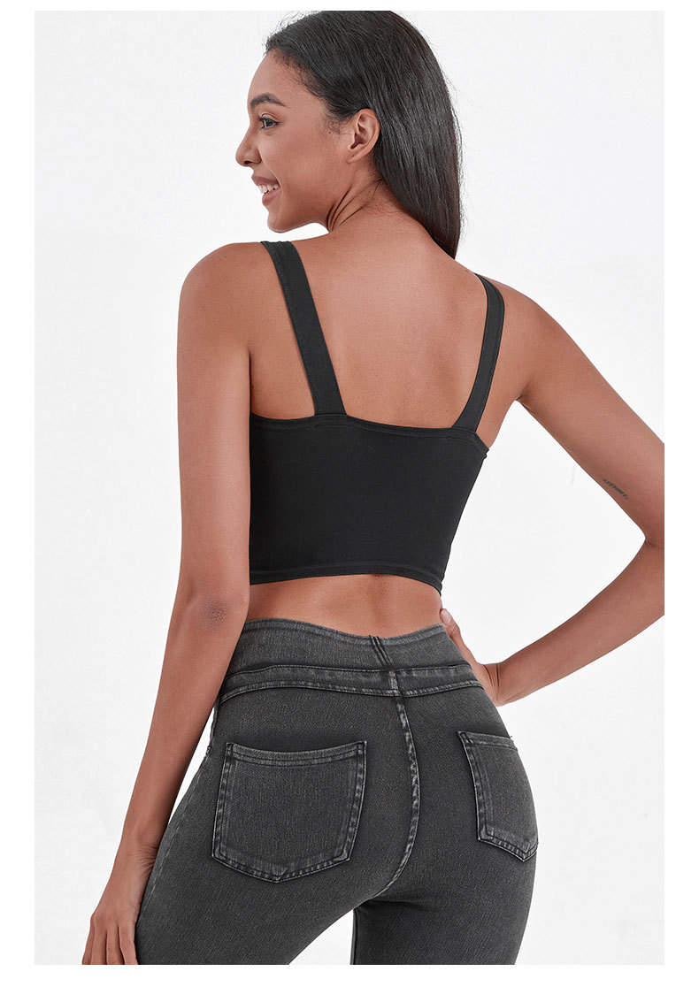 Chaleco de Yoga de la aptitud del dril de algodón artificial de las mujeres de alta elasticidad en forma de U con almohadilla en el pecho que adelgaza hebilla de metal Sling deportes casual top