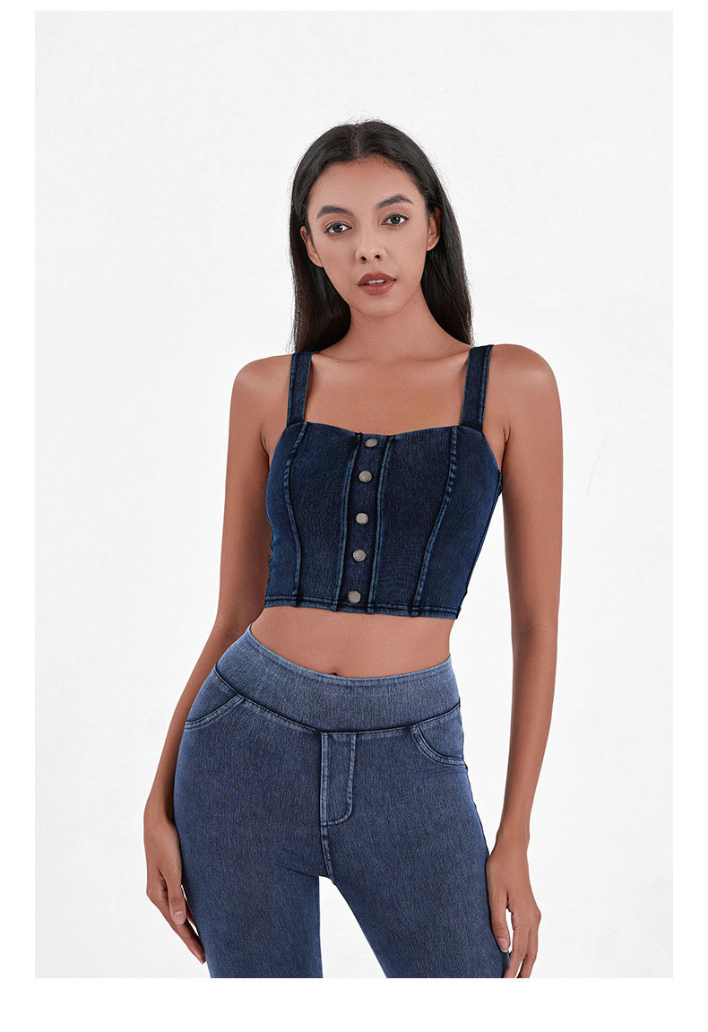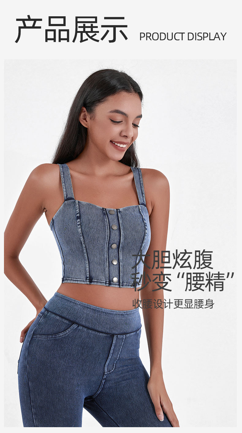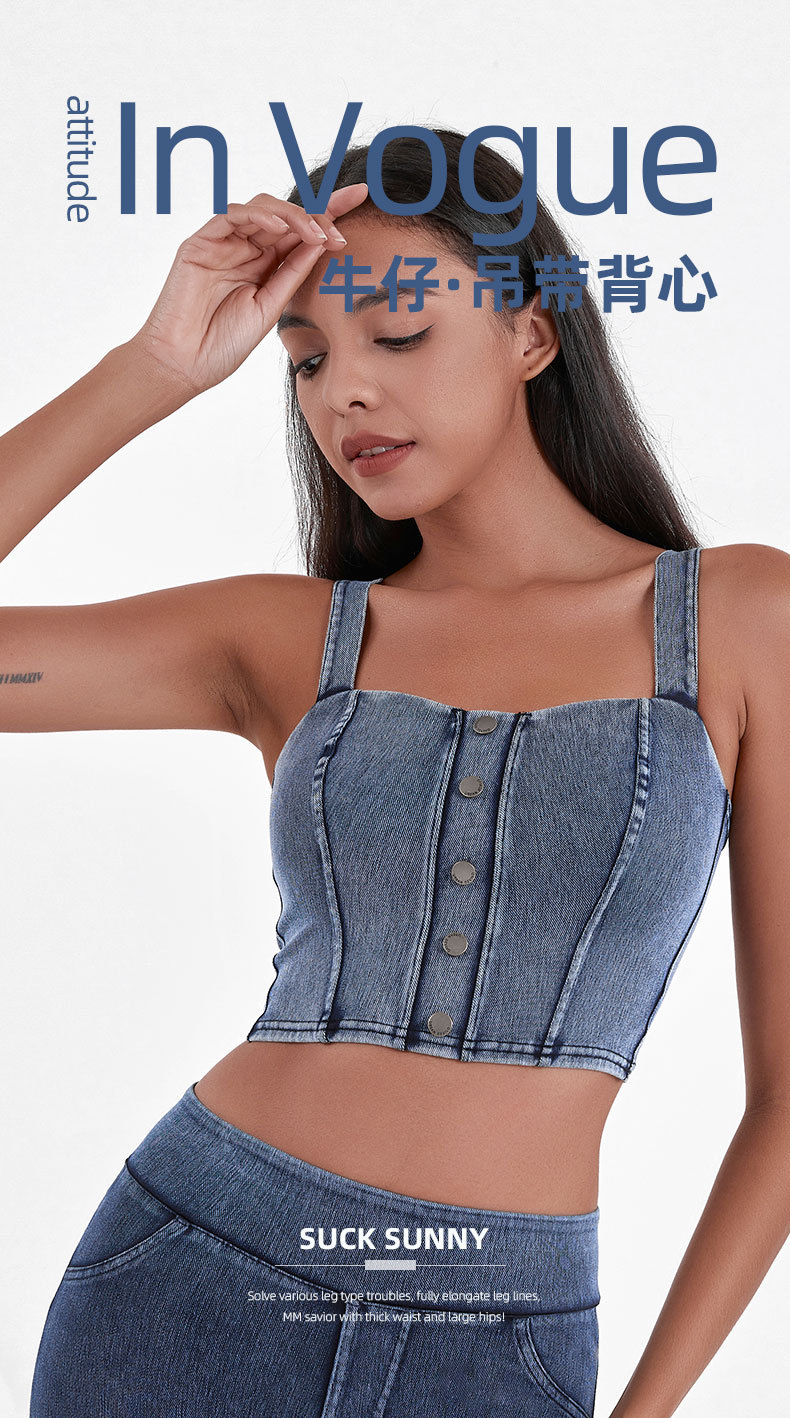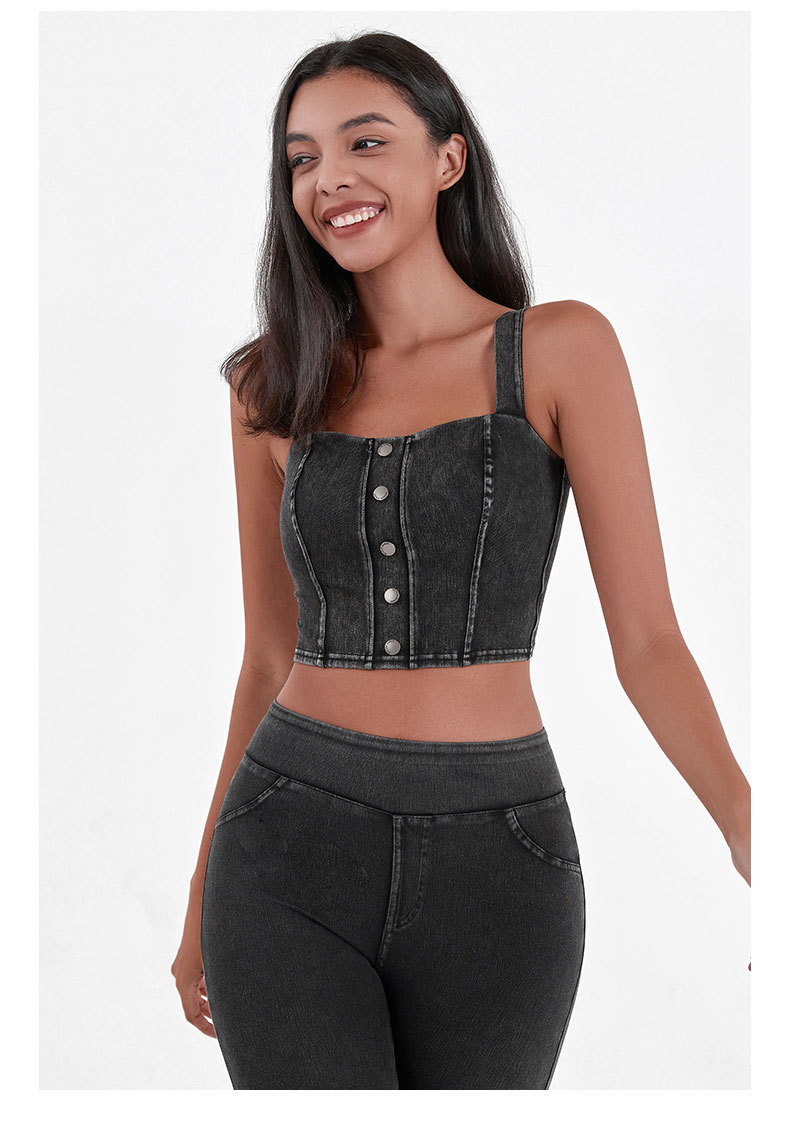 Chaleco de Yoga de la aptitud del dril de algodón artificial de las mujeres de alta elasticidad en forma de U con almohadilla en el pecho que adelgaza hebilla de metal Sling deportes casual top