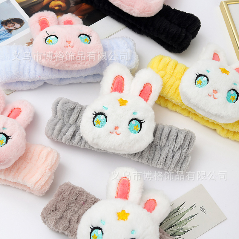 2023 nuevo estilo banda de pelo dibujos animados lindo conejito pelo banda chica corazón cara lavado maquillaje máscara adecuado