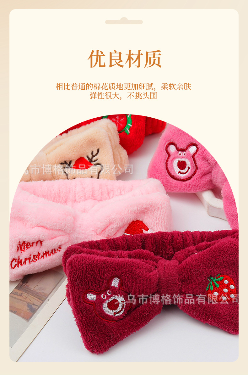 Nuevos accesorios para el cabello de fresa lindo oso de peluche banda para el cabello arco banda para el cabello al por mayor en stock hogar máscara de ojos fábrica