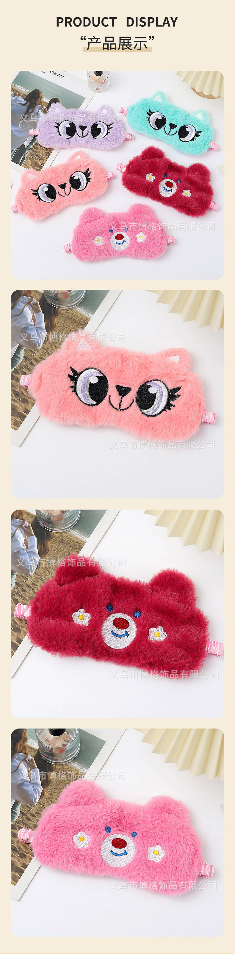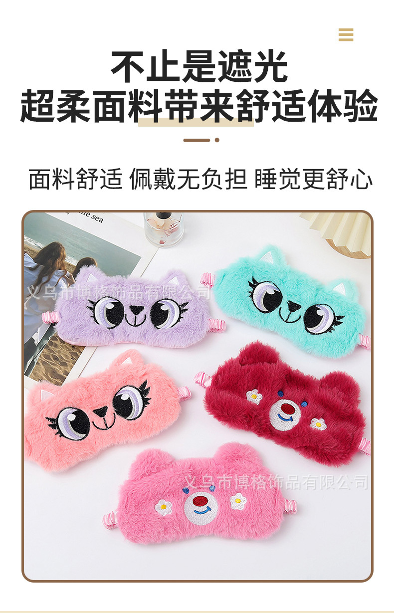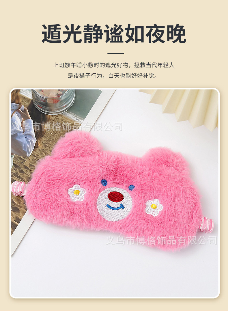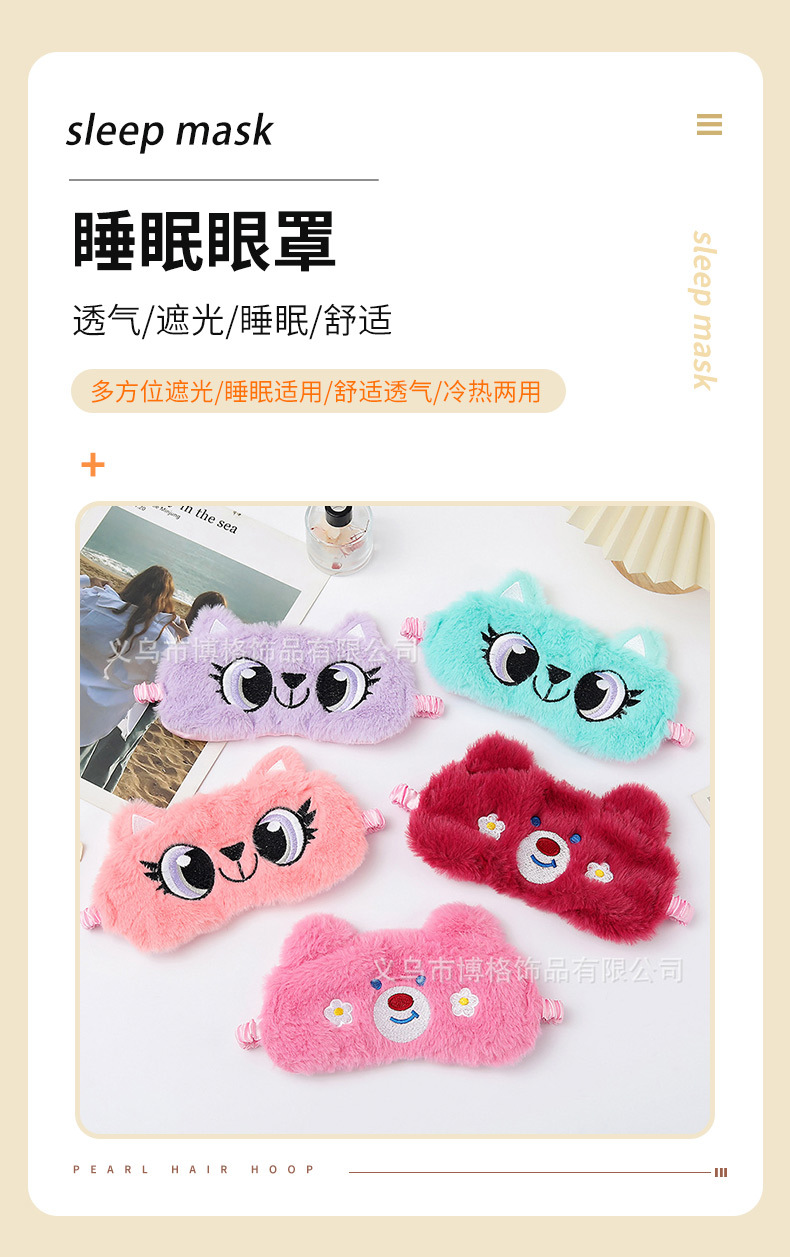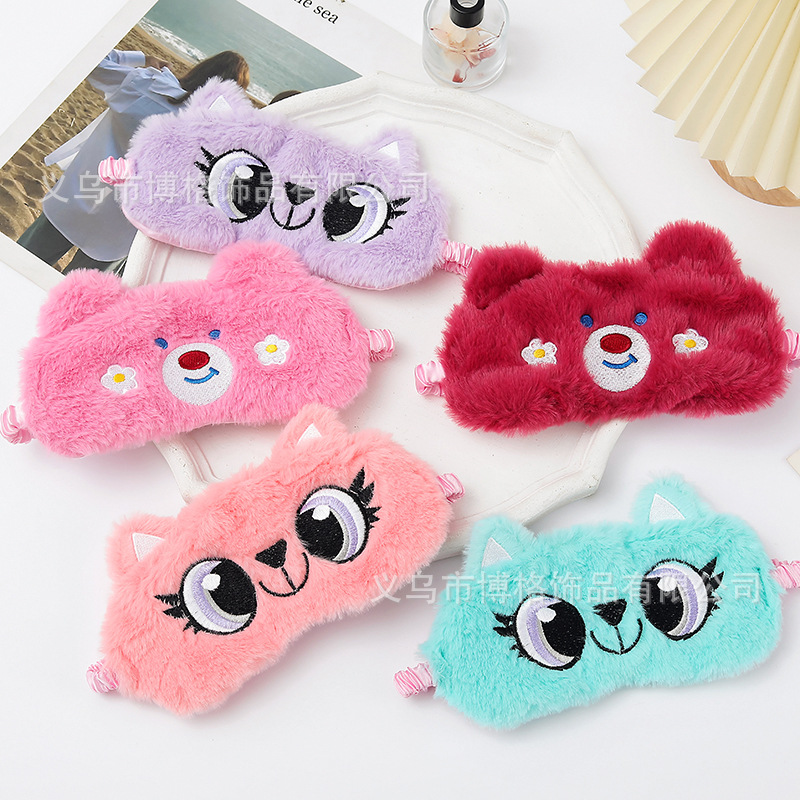 2023 nueva Máscara de ojo de peluche lindo cómodo almuerzo dormir máscara de ojo patrón de dibujos animados niños casa máscara de ojo