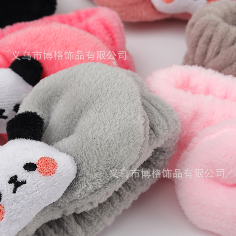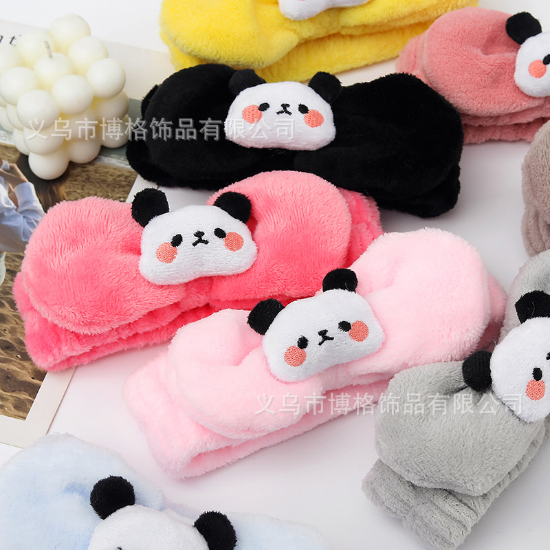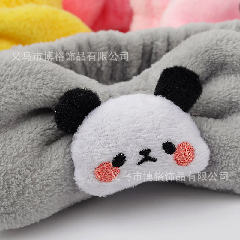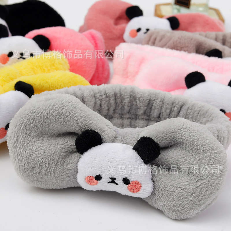 Dibujos animados tridimensional lindo felpa muñeca Panda arco cara lavado banda de pelo ancho borde diadema maquillaje femenino accesorios para el cabello
